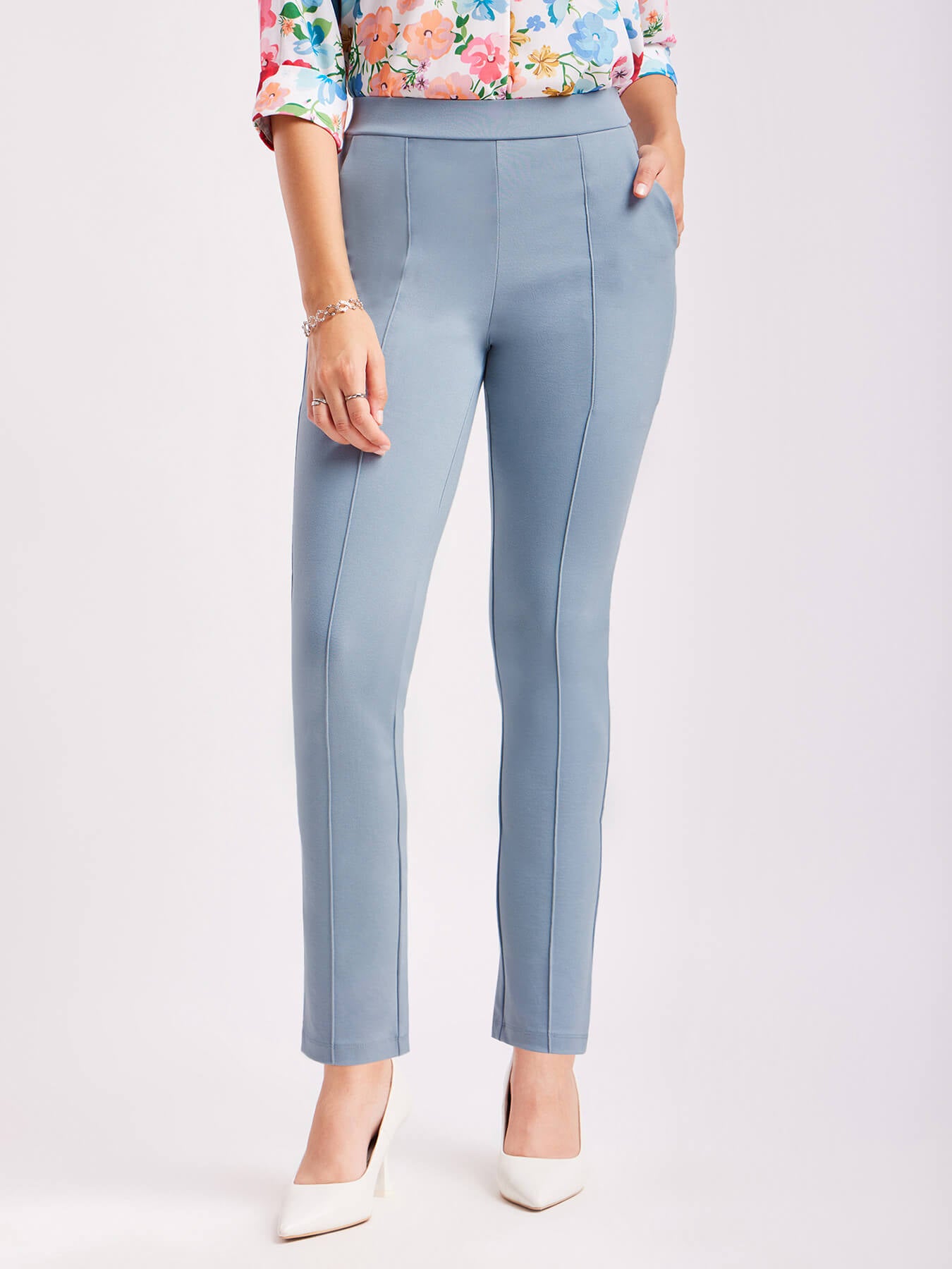 These trademark, grey, panelled, knitted, cropped pants are mid-rise, have slant pockets and tape detail with an inspirational quote "Still, I Rise" to motivate you. A Nylon Rayon knit blend, these are breathable, stretchable, comfortable, anti-wrinkle and anti-pill. The hem of the pants is intended to fall according to the image on a height of 5'3" to 5'5". Colour may vary slightly according to screen settings and resolution.
