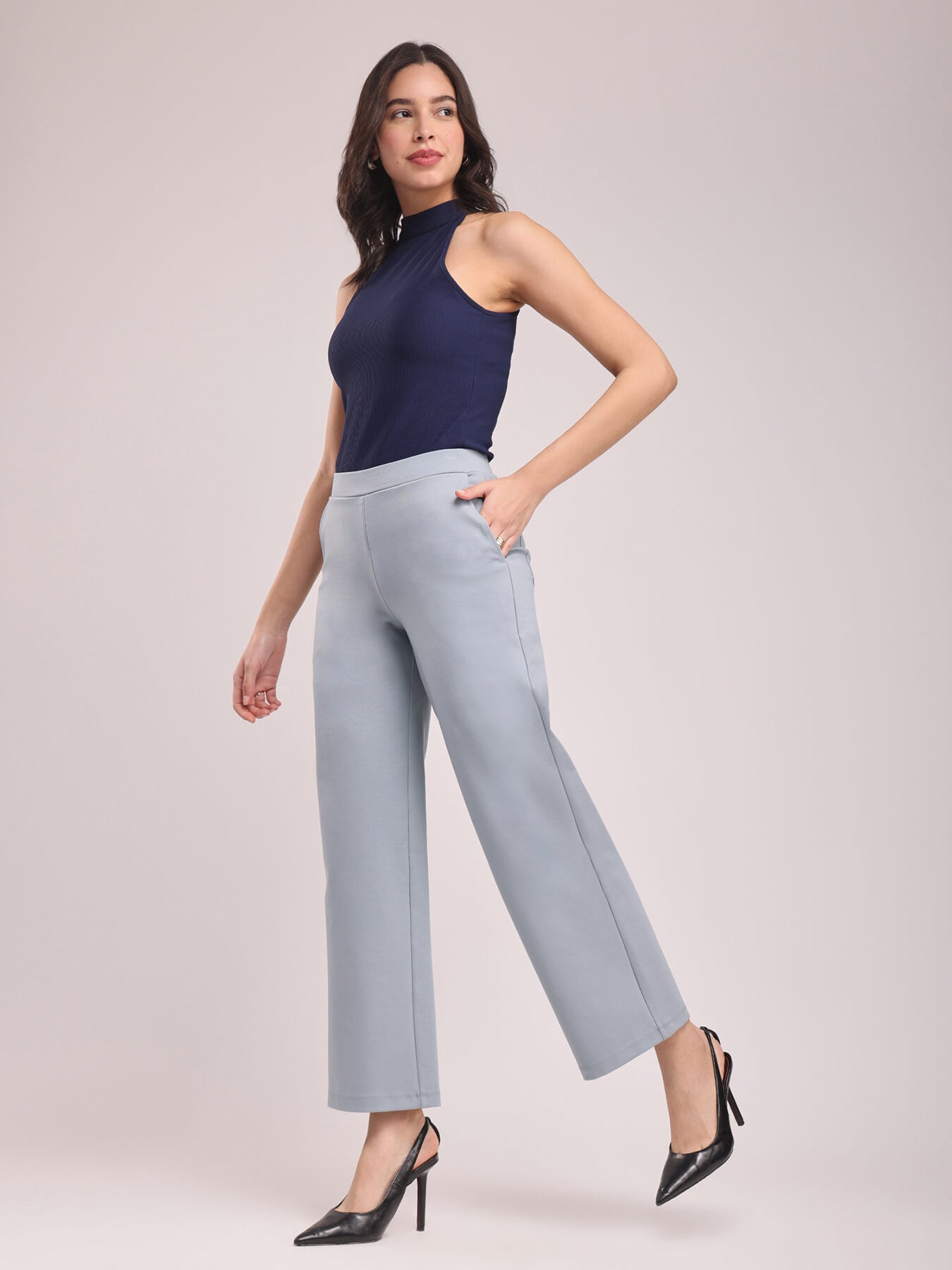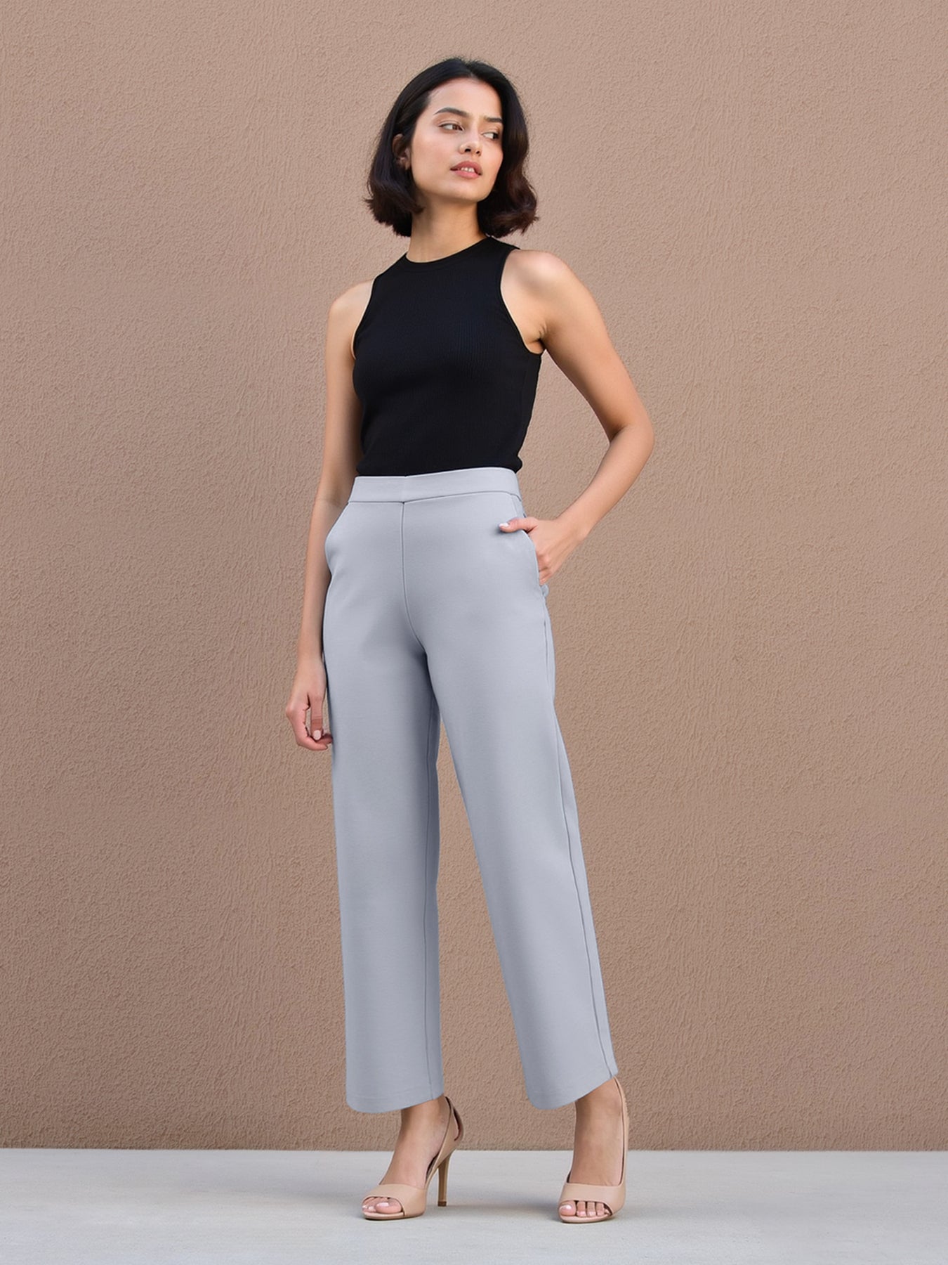 These grey wide leg, mid rise pants are made for the woman on the go. These pants have elasticated waistband, 2 back pockets, 2 front pockets. As Nylon Rayon knit blend pull up pants, these are breathable, super stretchable, super soft, comfortable, anti-wrinkle and anti-pill. The hem of the pants is intended to fall according to the image on a height of 5'3" to 5'5". Colour may vary slightly according to screen settings and resolution.