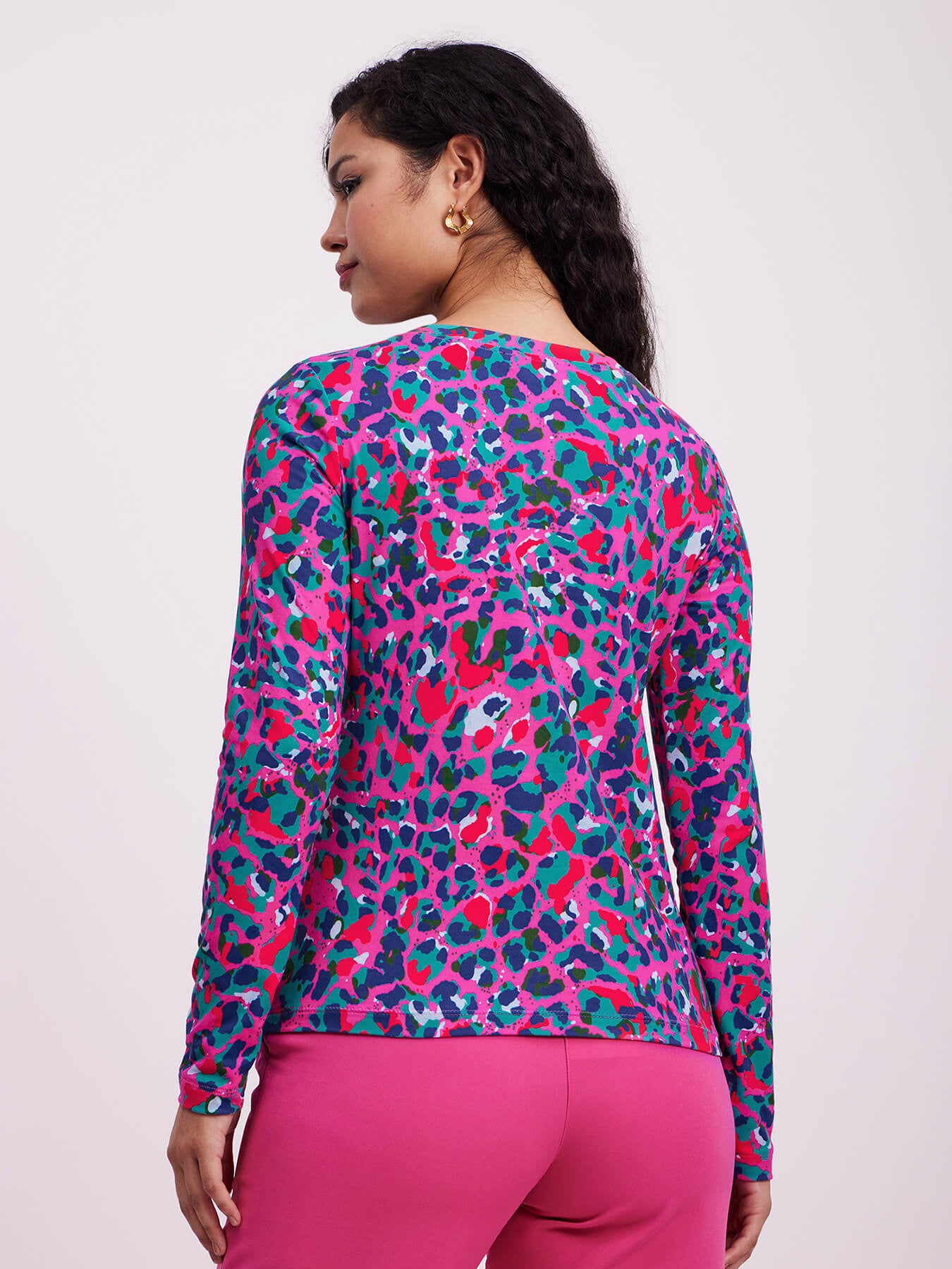 This multicolour cutout top has a round neck, long sleeves and animal print detail. Made from Polyester Knit, it is soft and comfortable to wear.