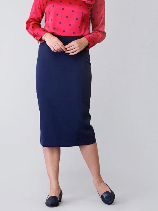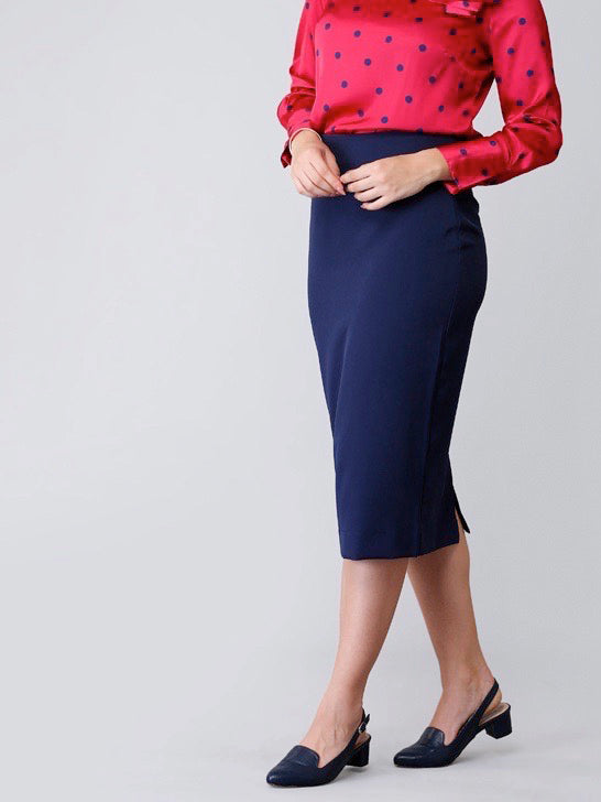 Back Slit Midi Skirt - Navy