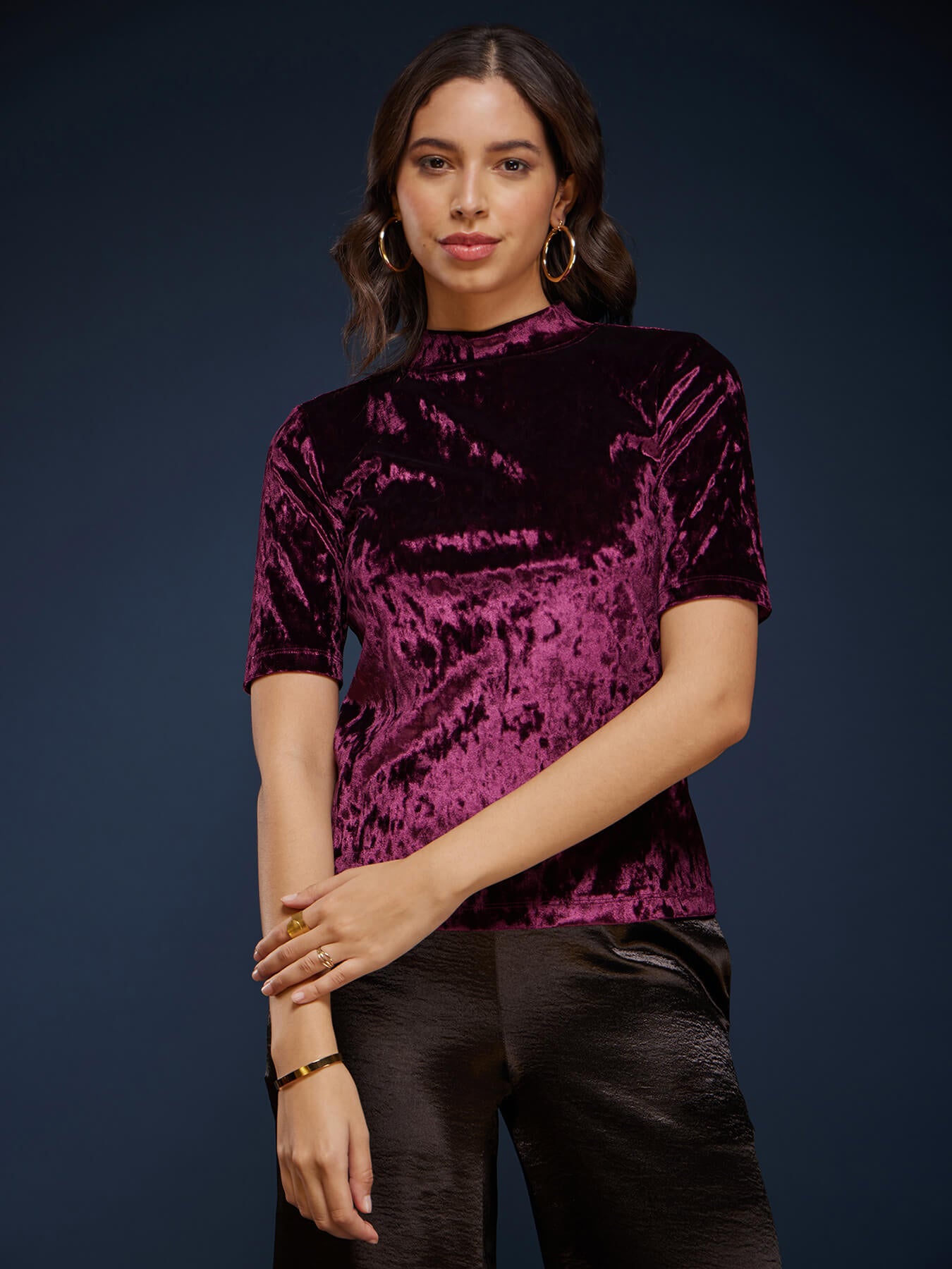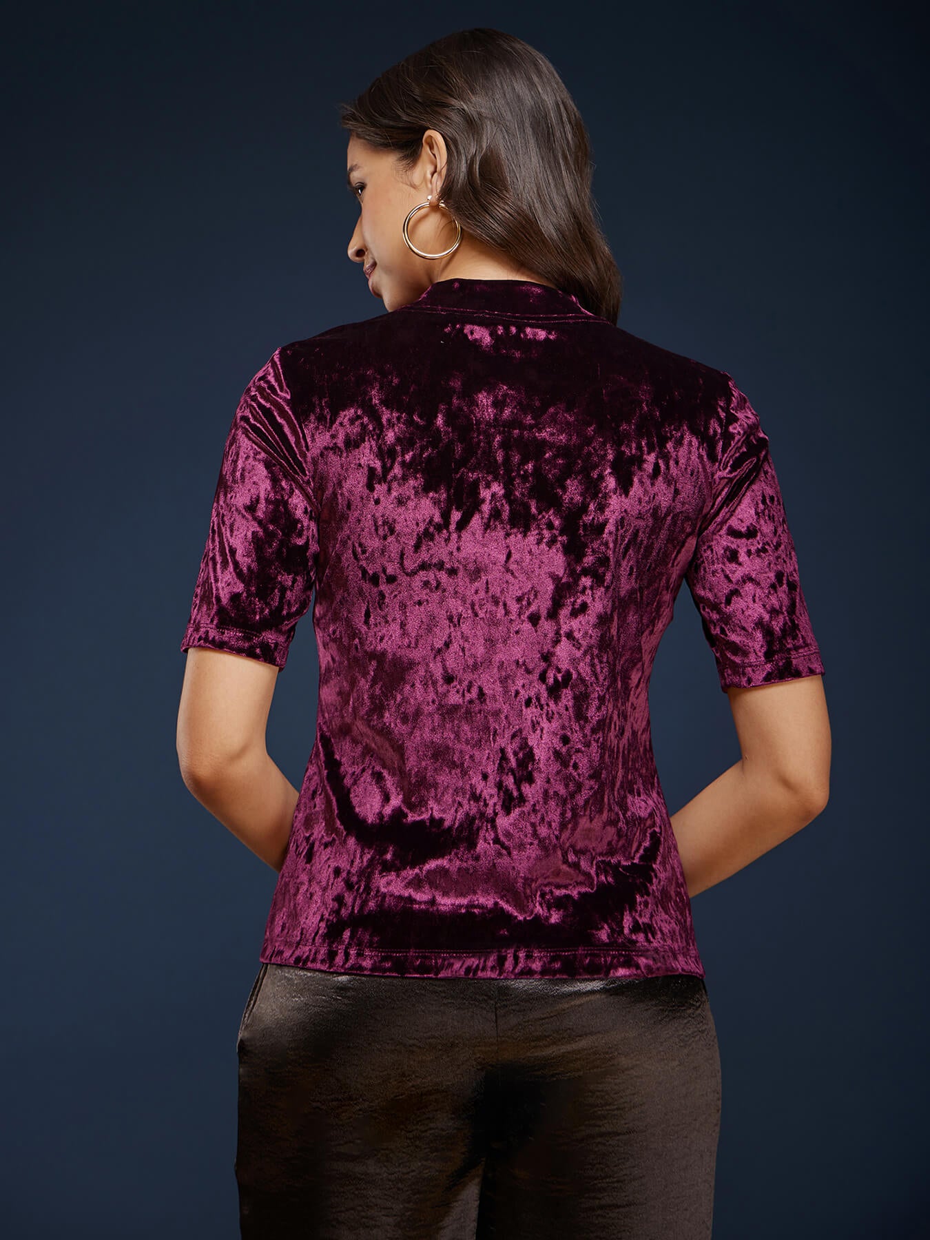 Band Neck Velvet Tee - Wine