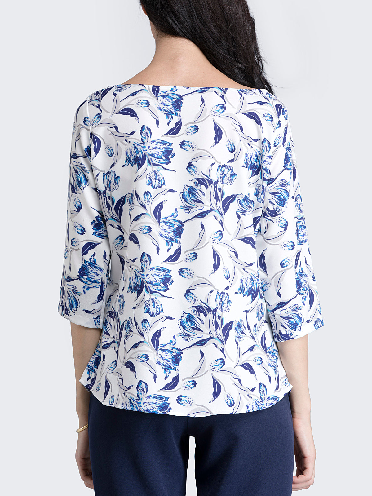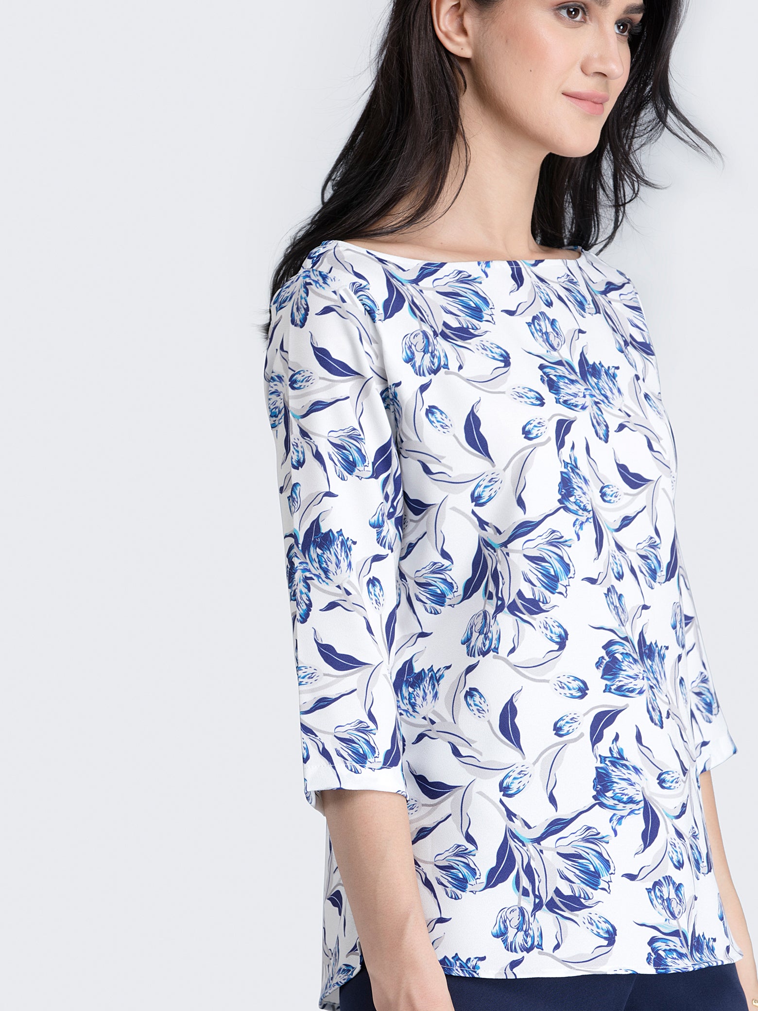 Boat Neck Floral Top - Blue