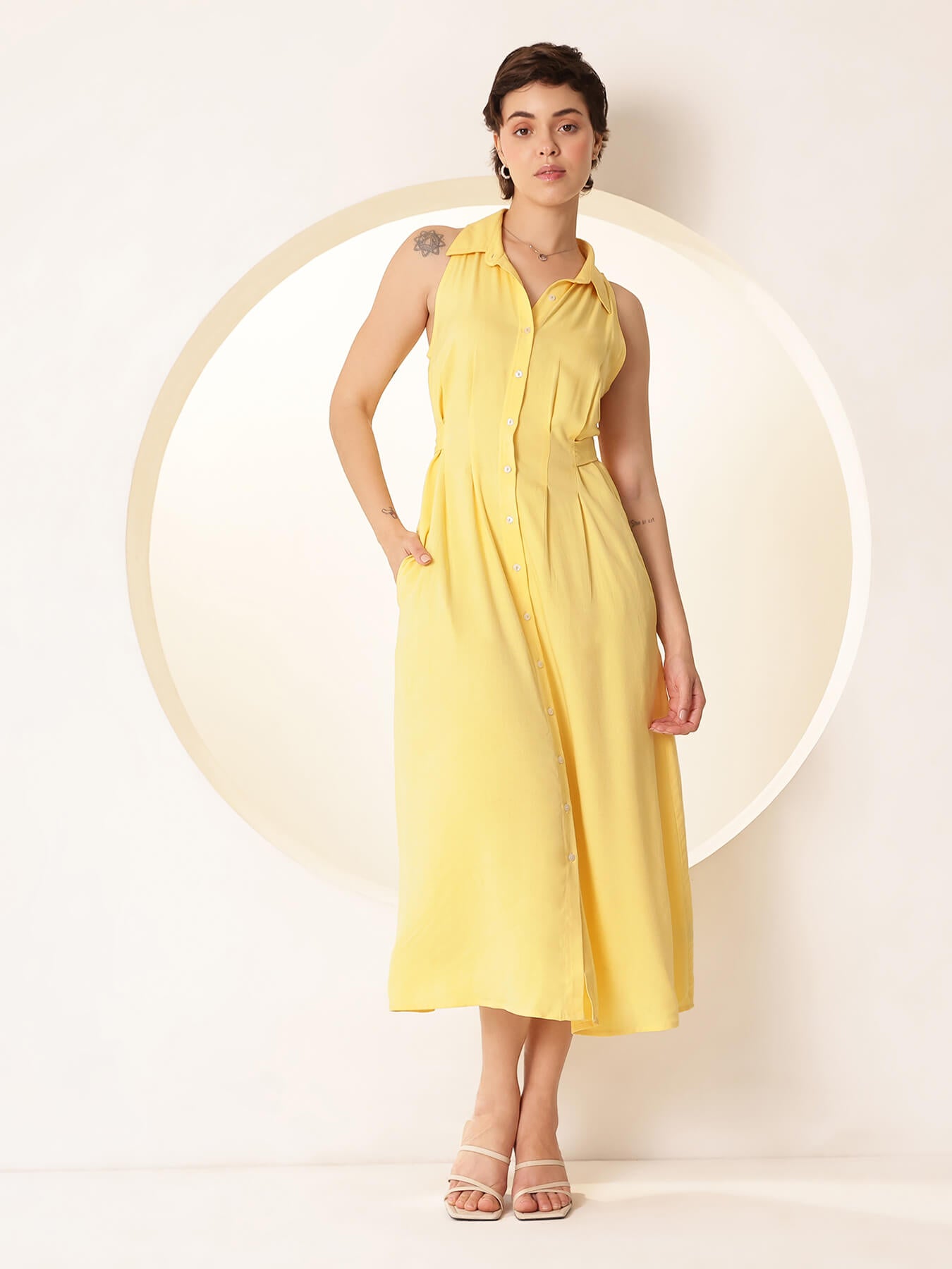 Button Down Dress - Yellow