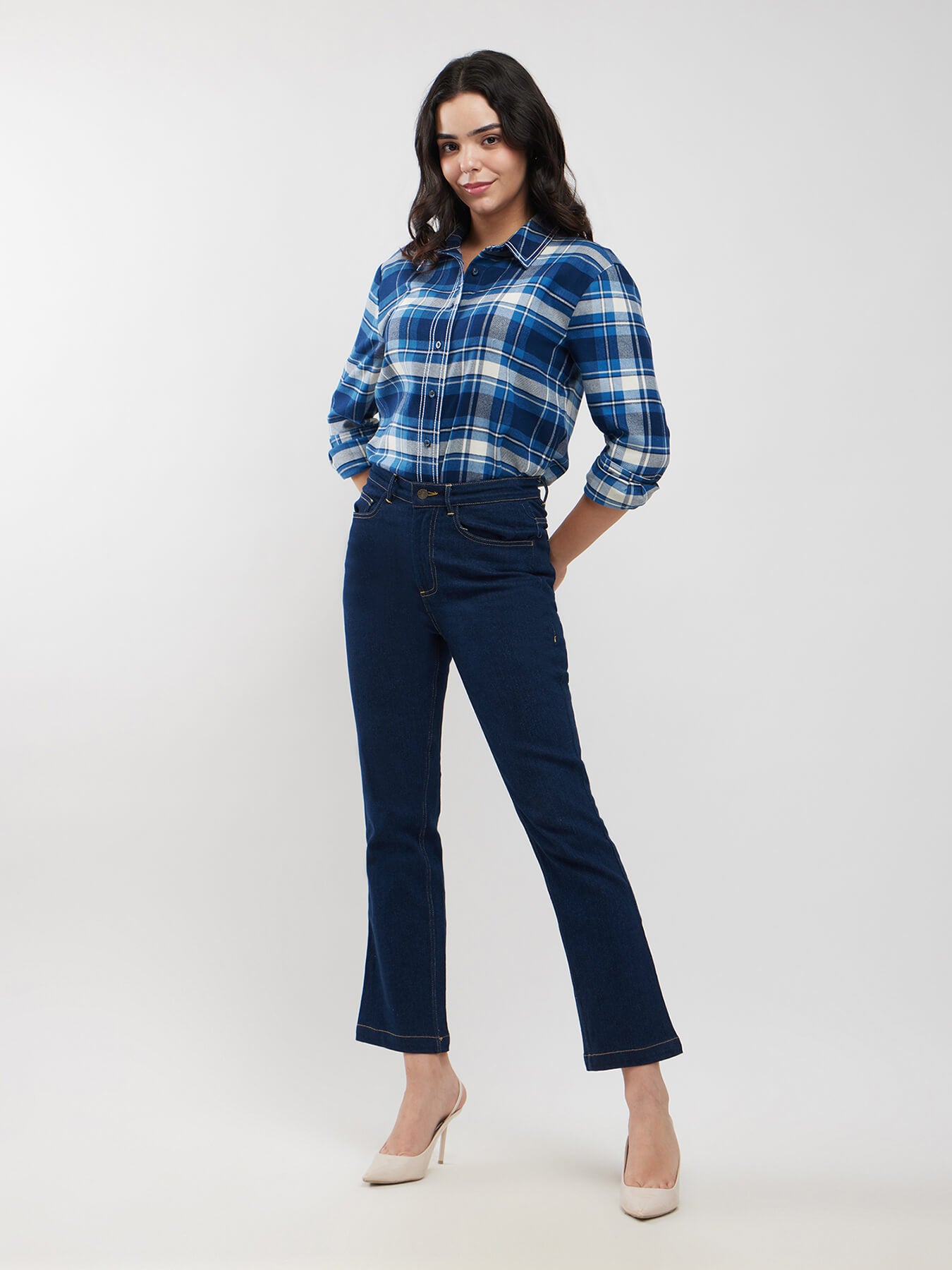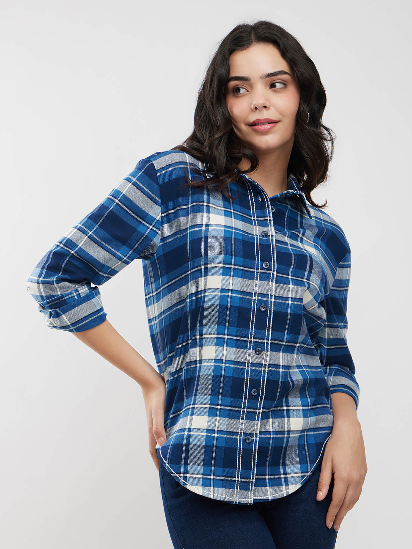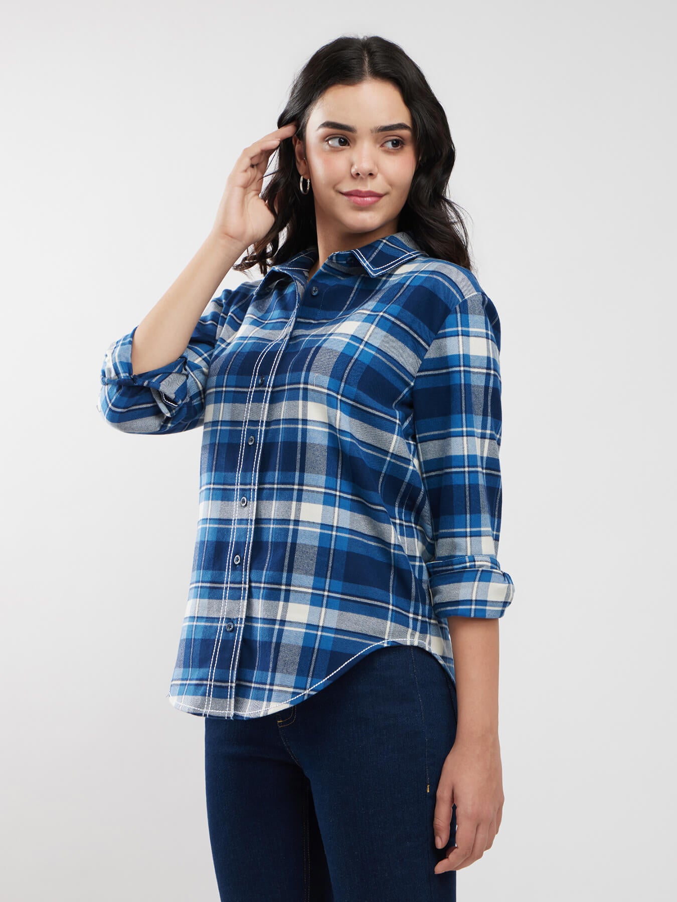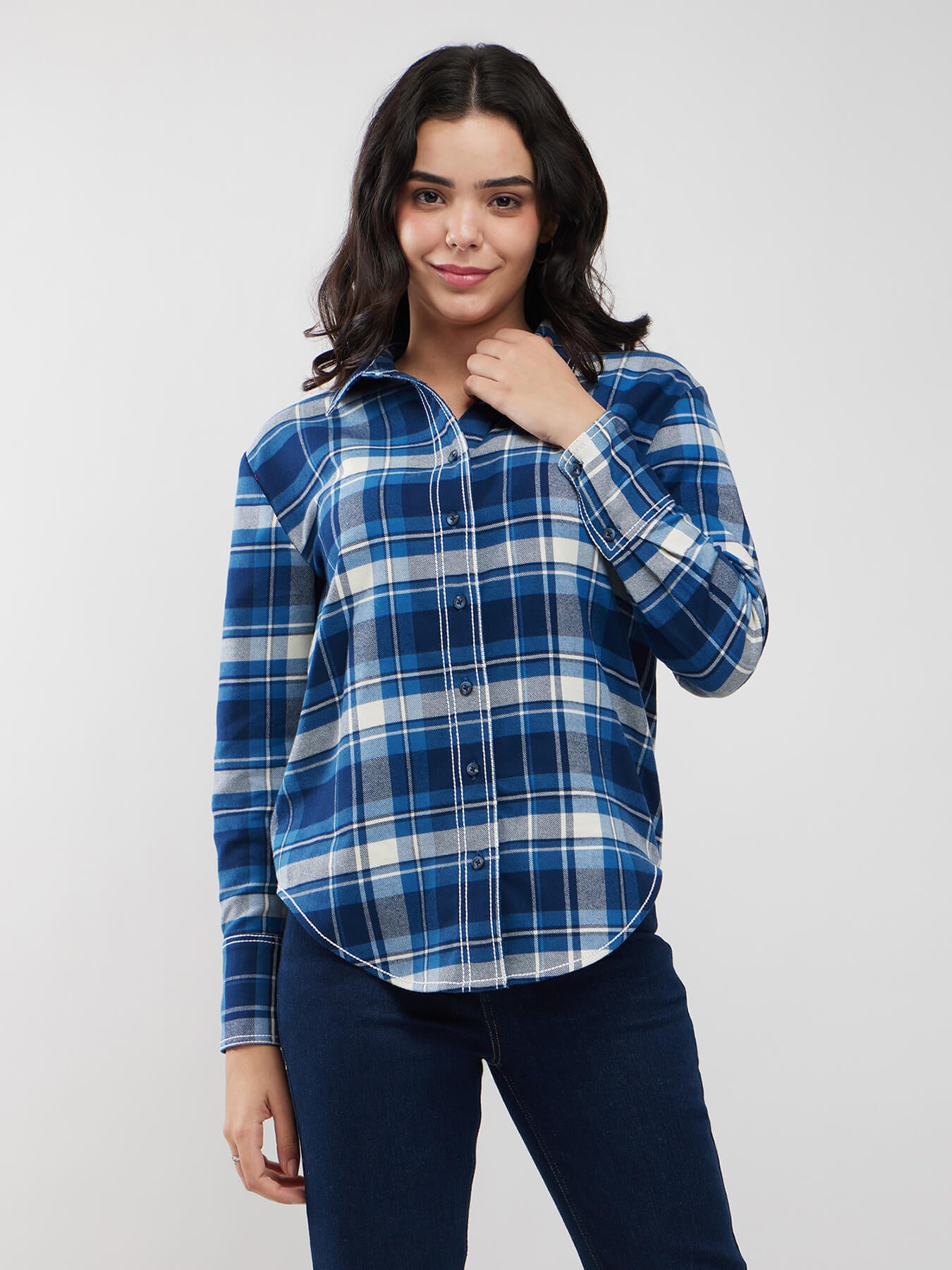 Checkered Button Down Shirt - Blue And White