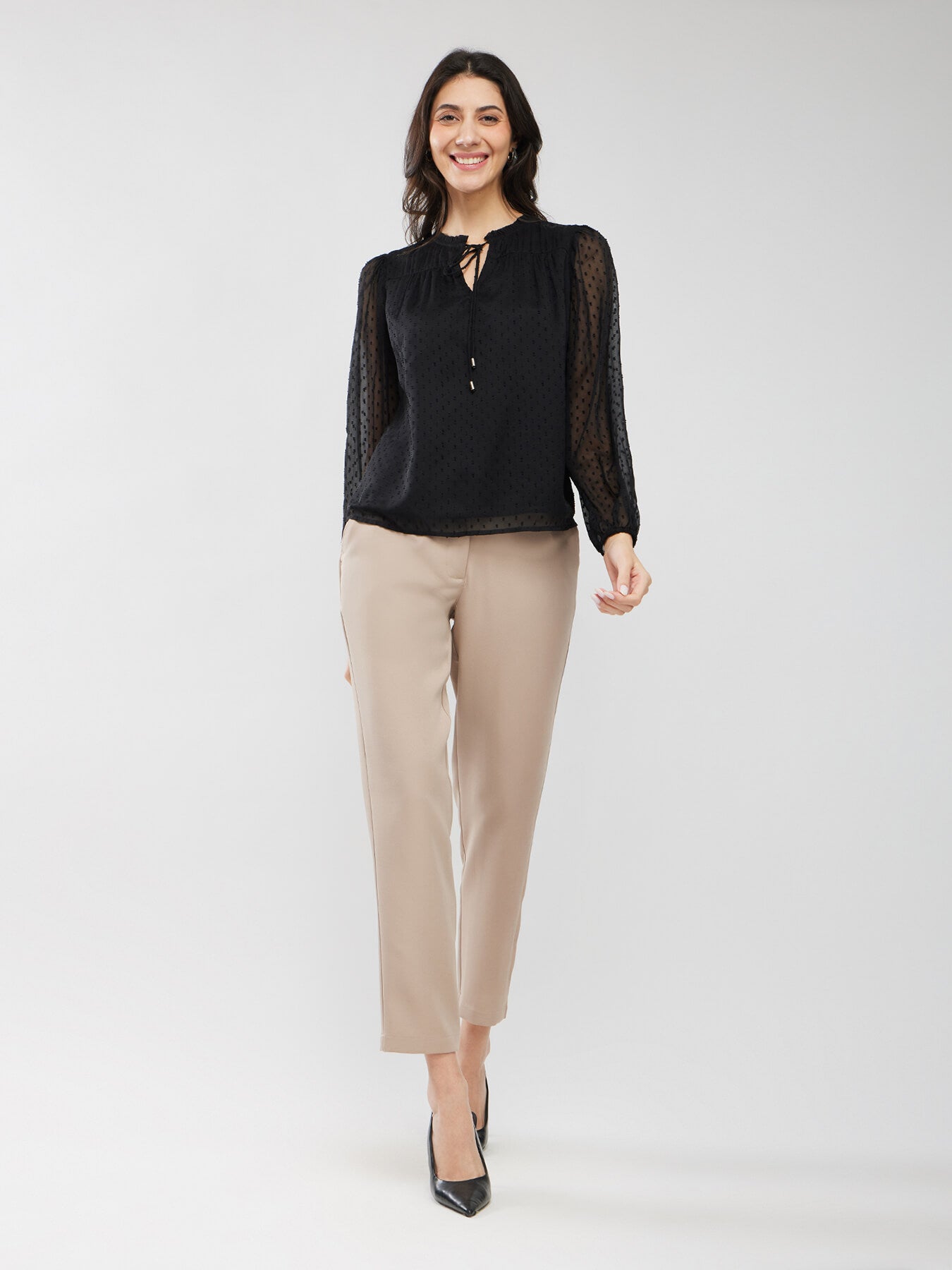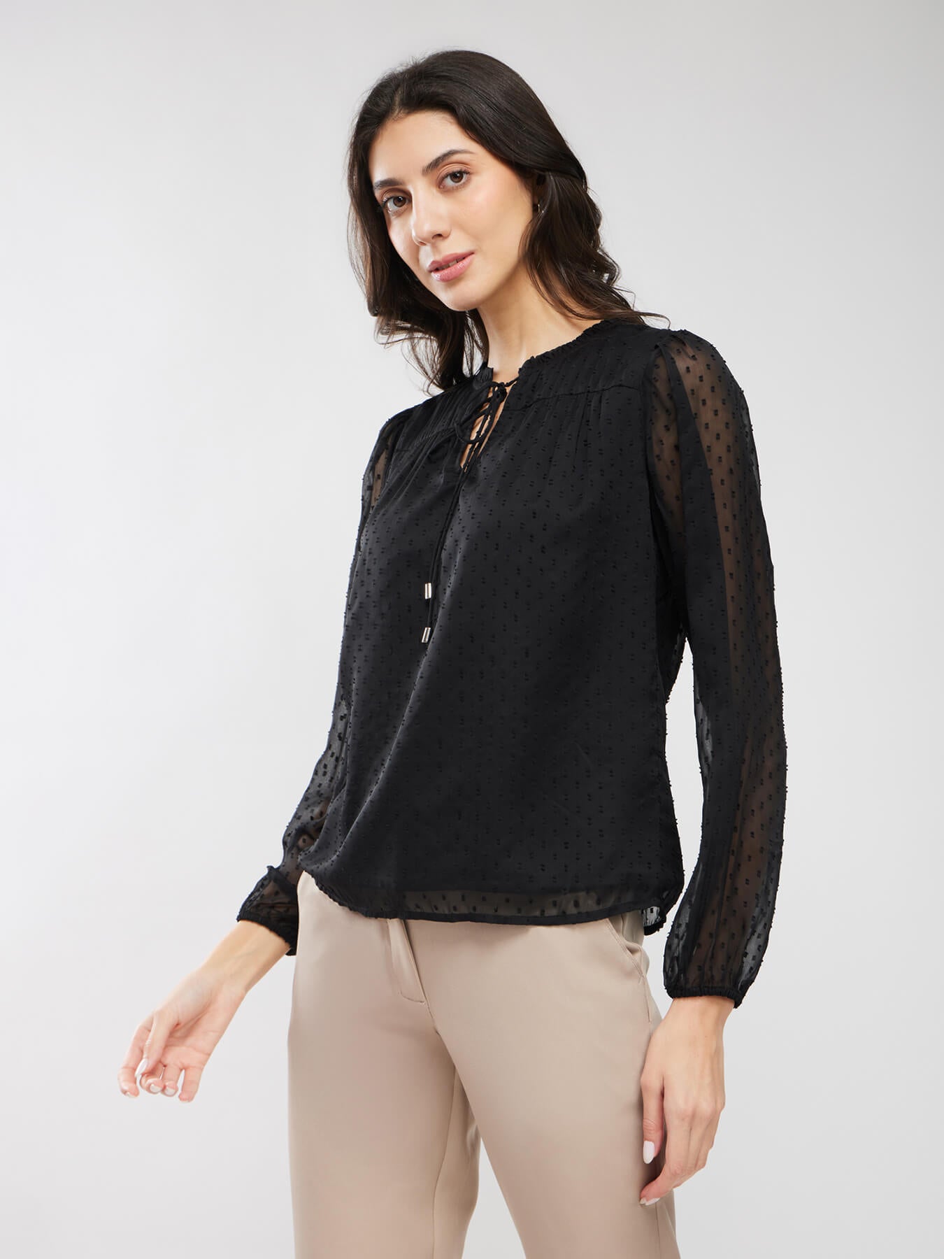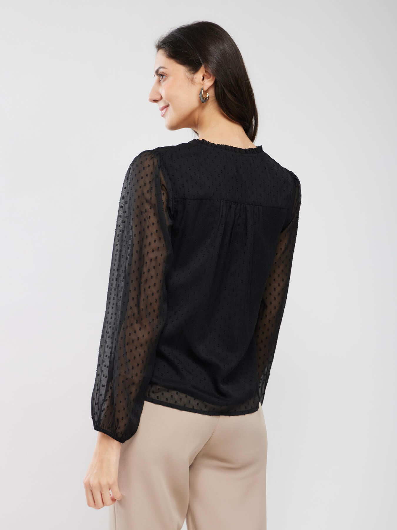 Chiffon Ruffle Neck Top - Black