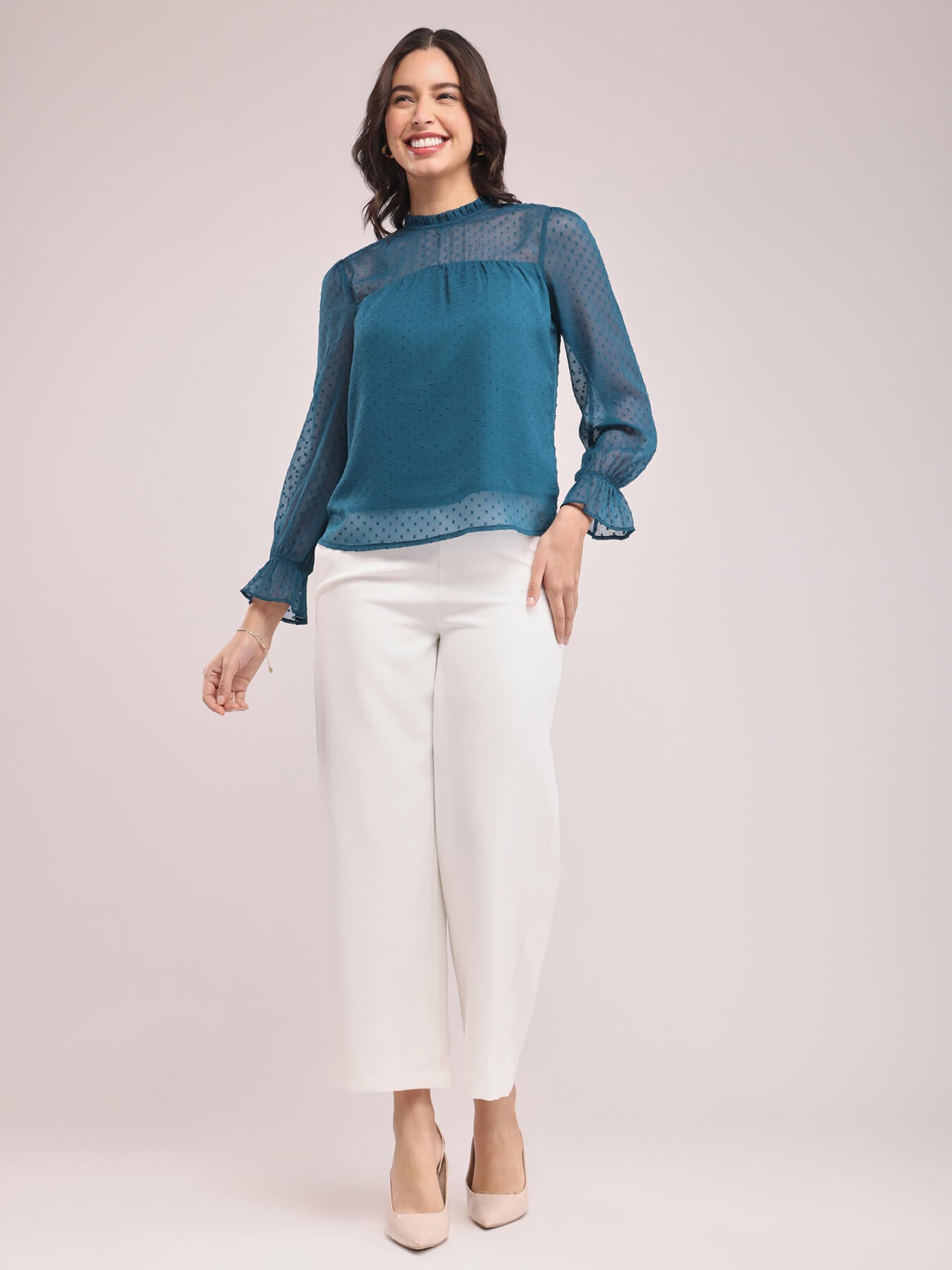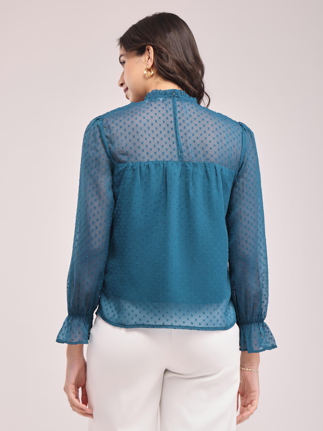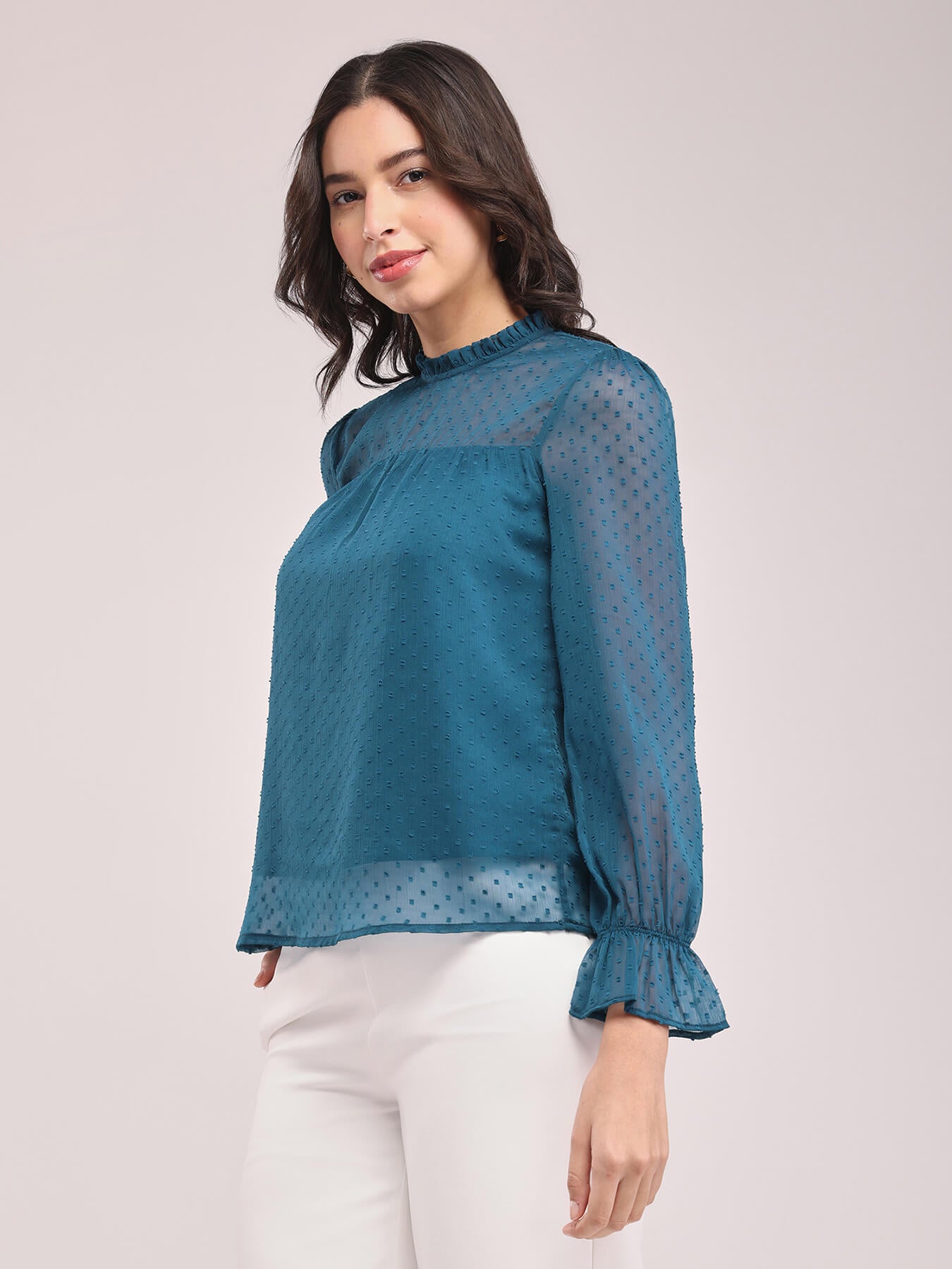Chiffon Ruffle Neck Top - Teal