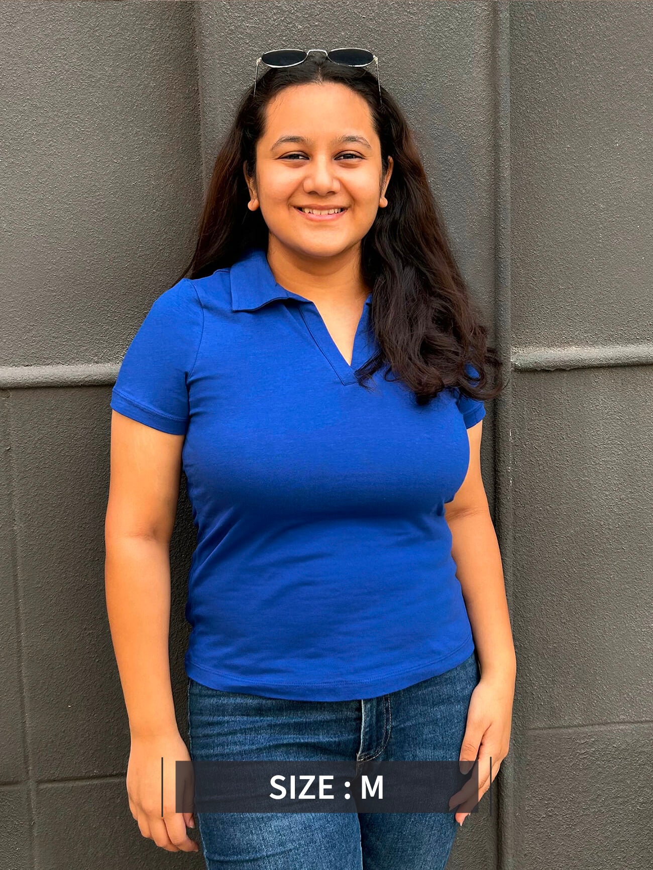4 Way Stretch Collared LivIn T-shirt - Royal Blue