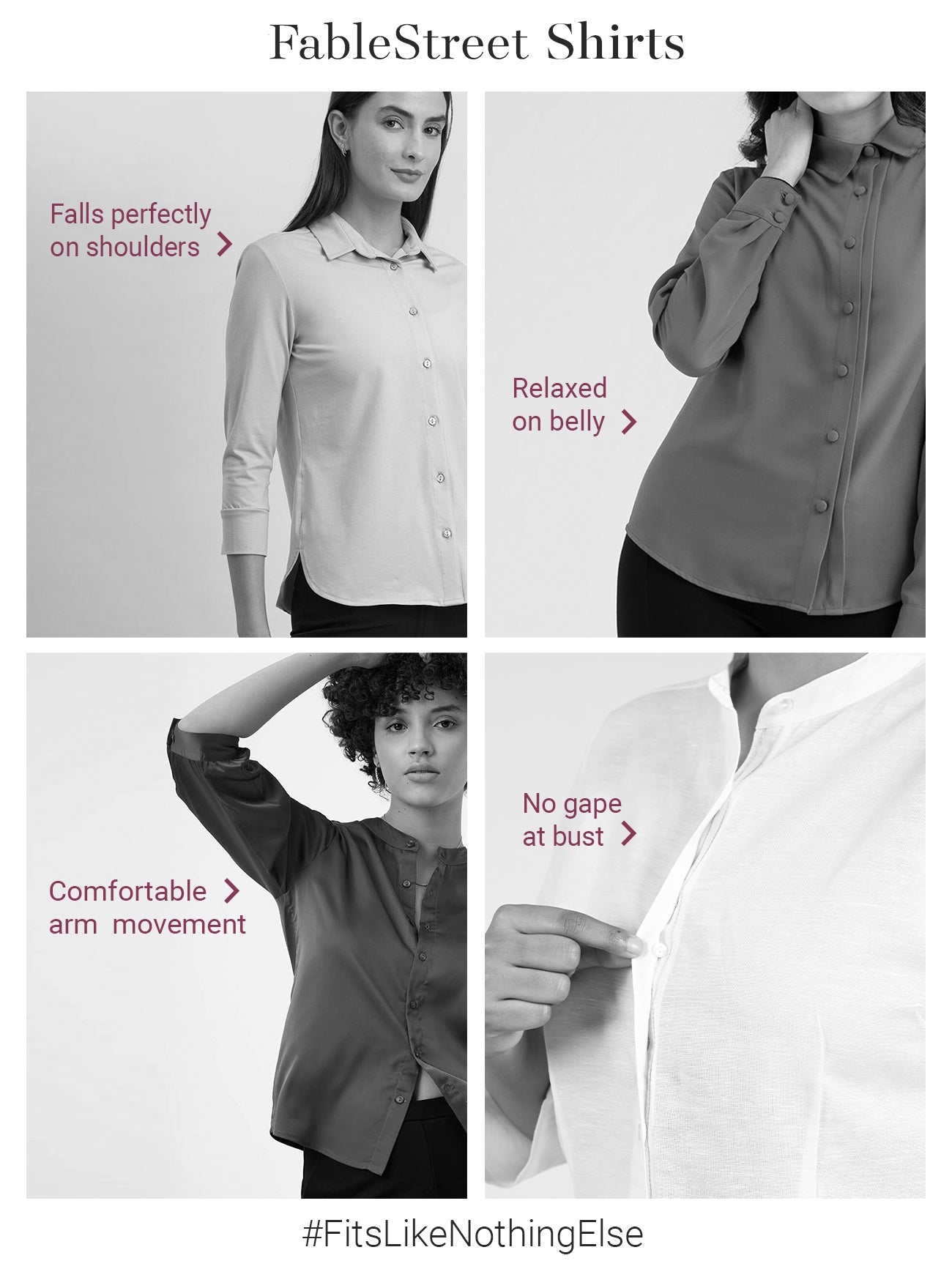 The hem of the shirt is intended to fall according to the image on a height of 5'3" to 5'5". Colour may vary slightly according to screen settings and resolution.