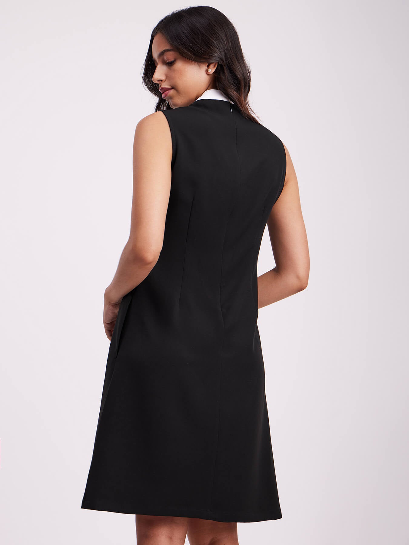 Colour Block A Line Dress - Black