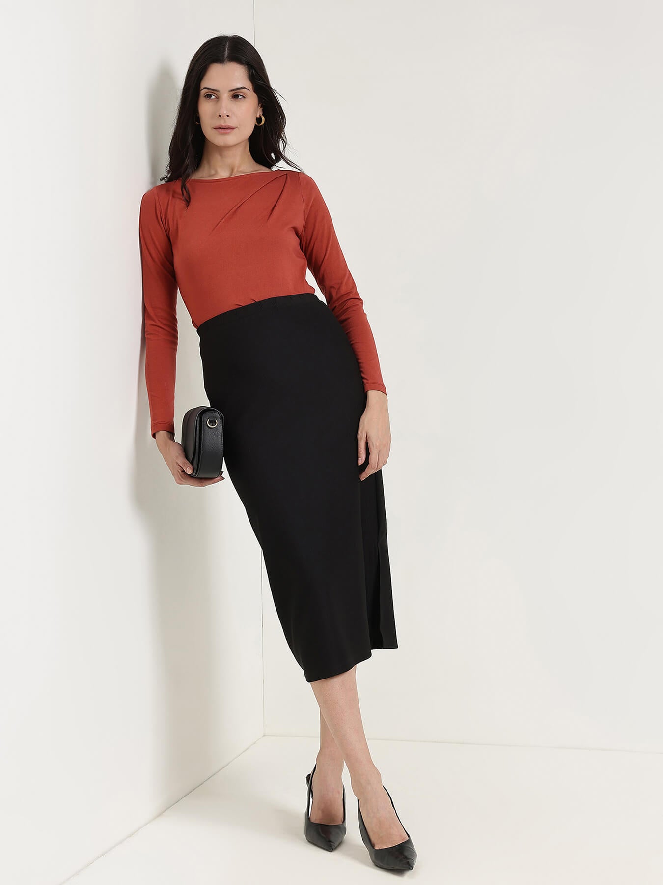 Cotton Boat Neck Cami Top - Rust