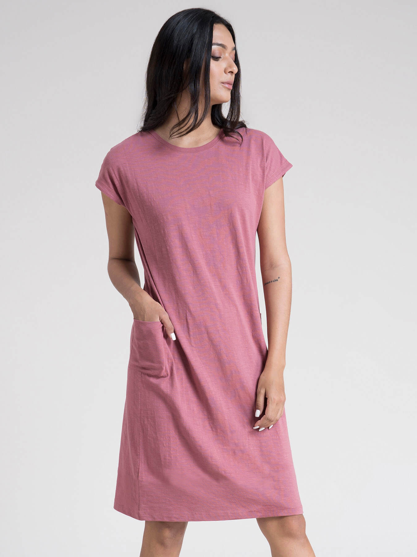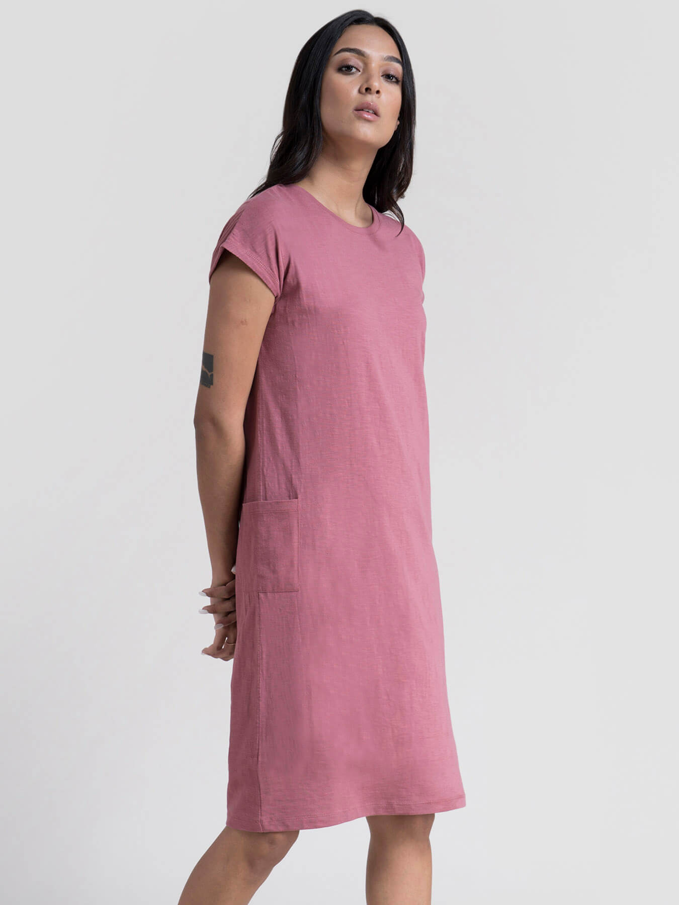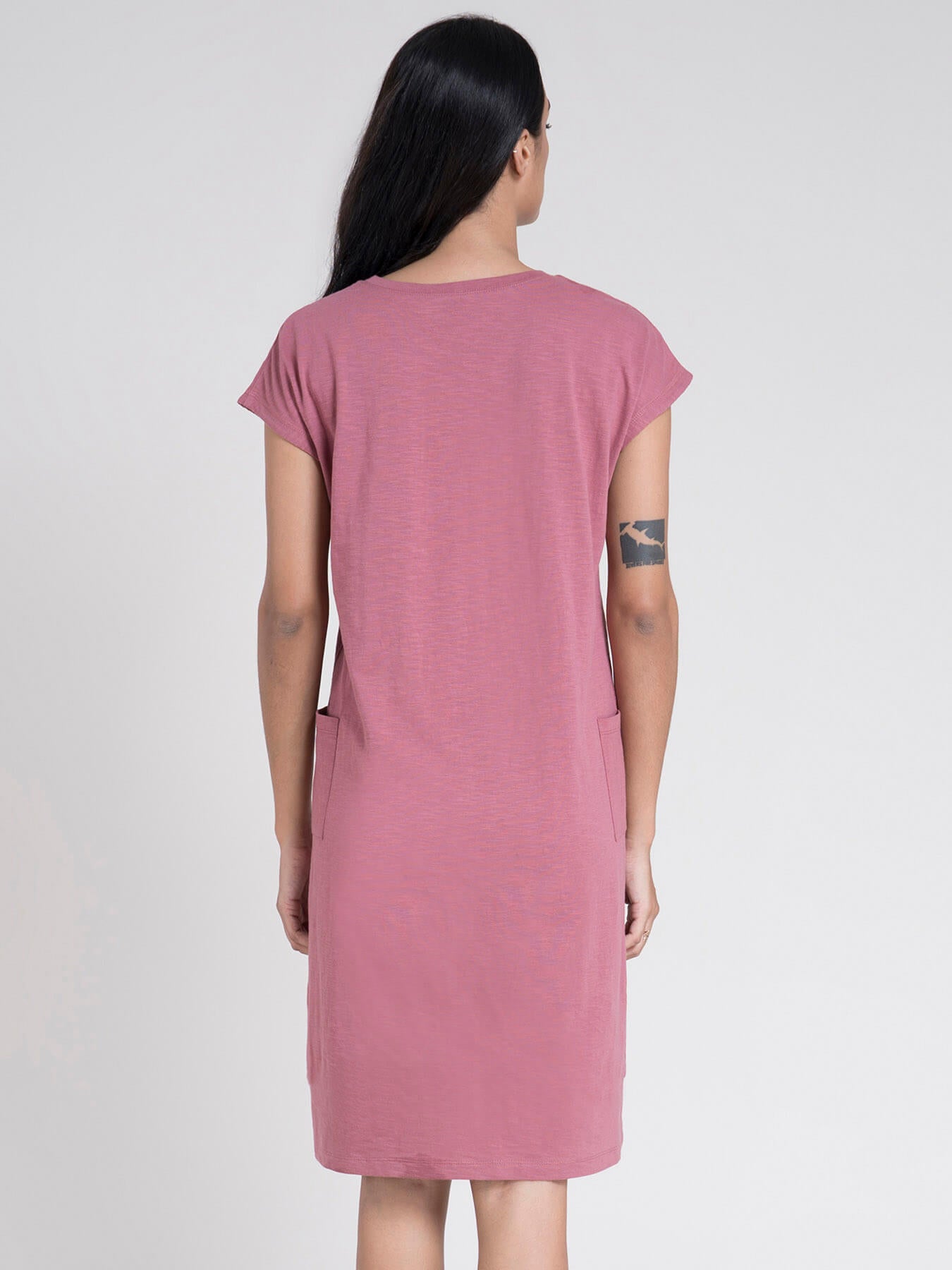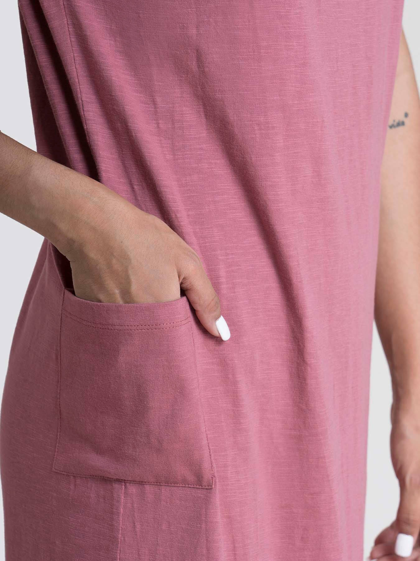 Cotton Drop Shoulder Knitted Dress - Pink