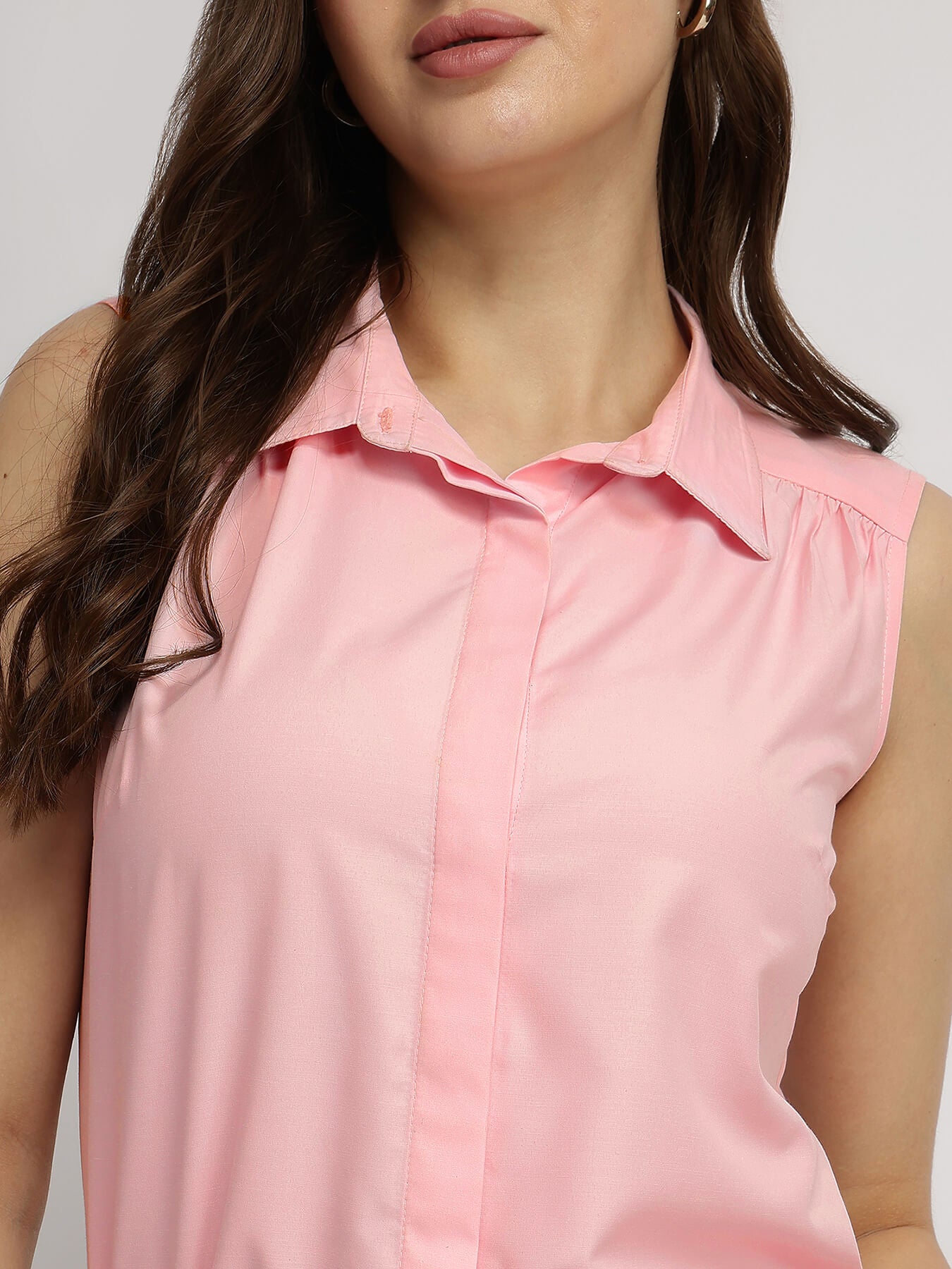 Cotton Gather Detail Shirt - Pink