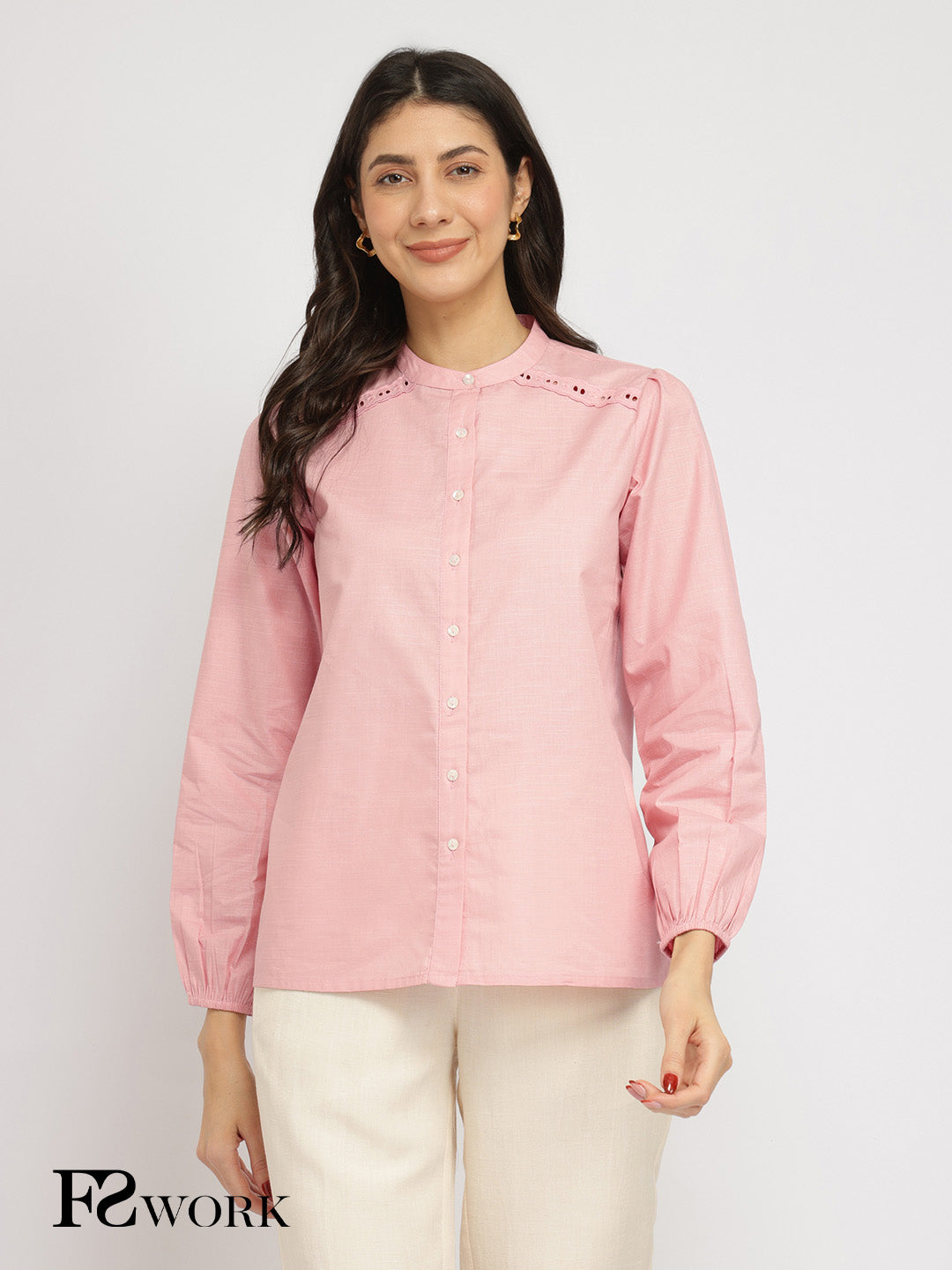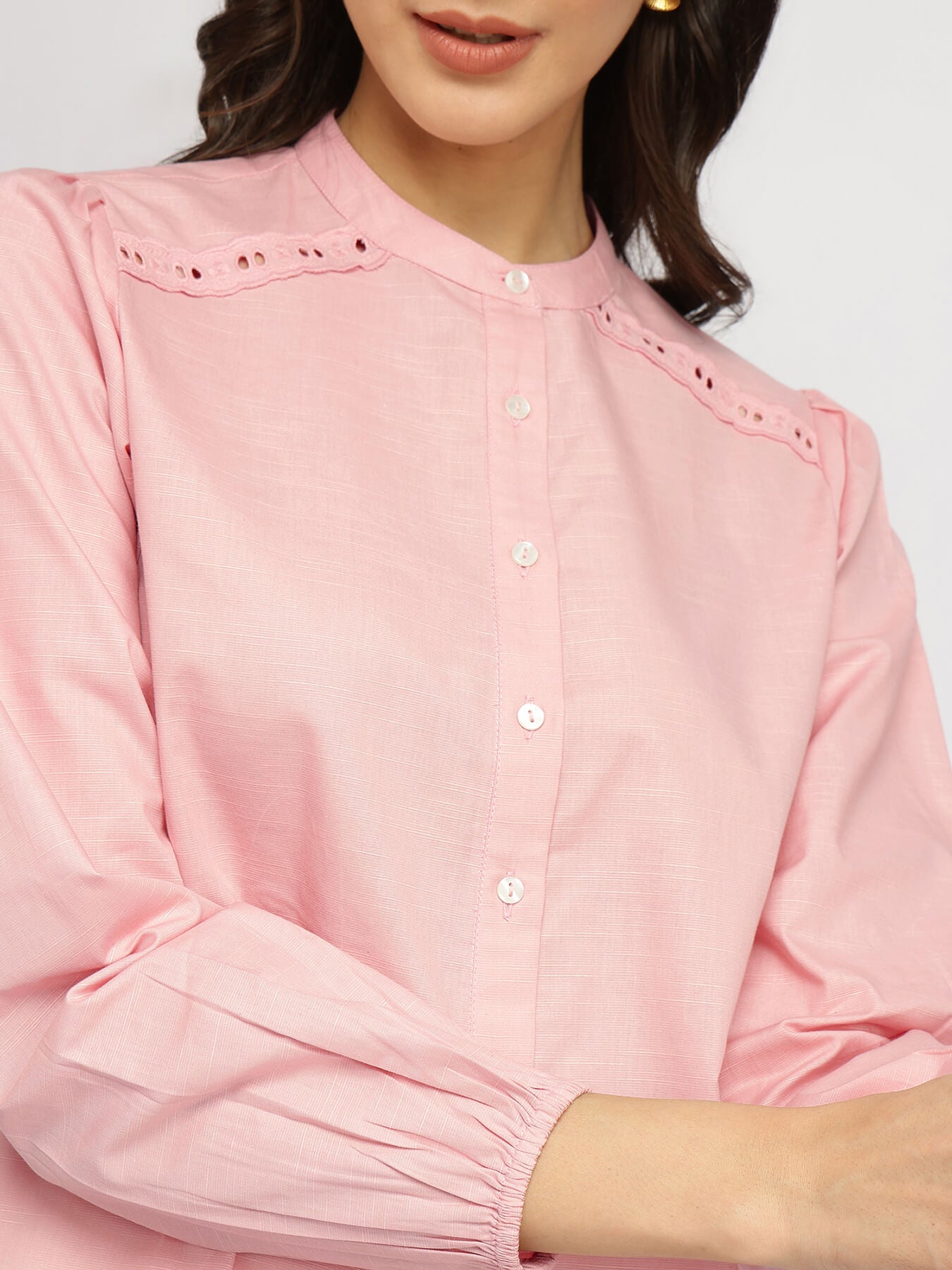Cotton Mandarin Collar Top - Pink