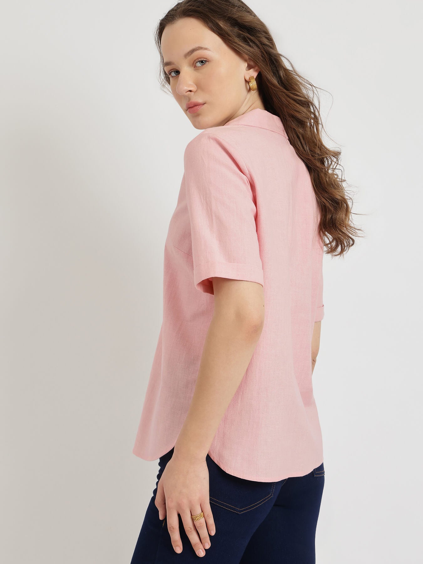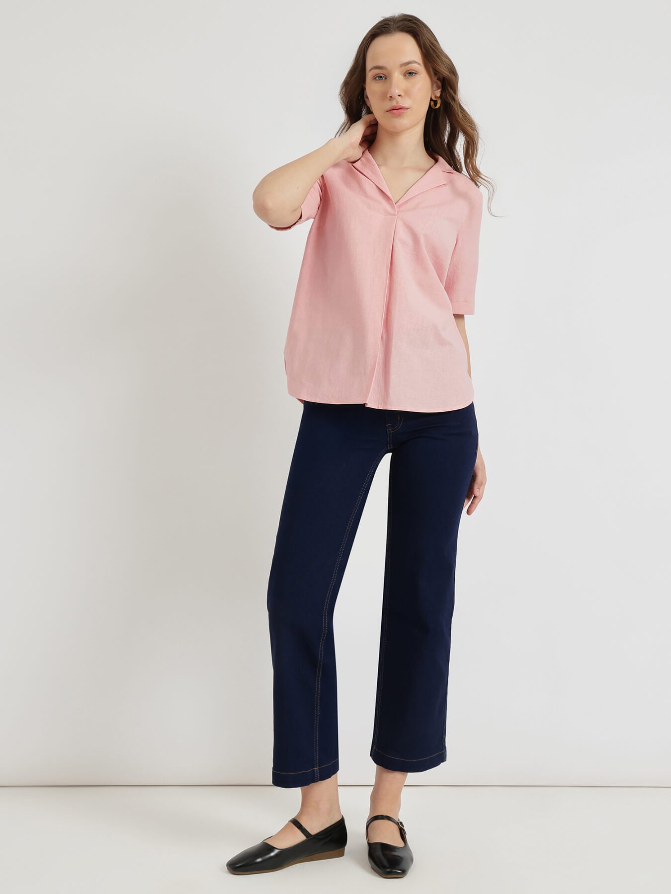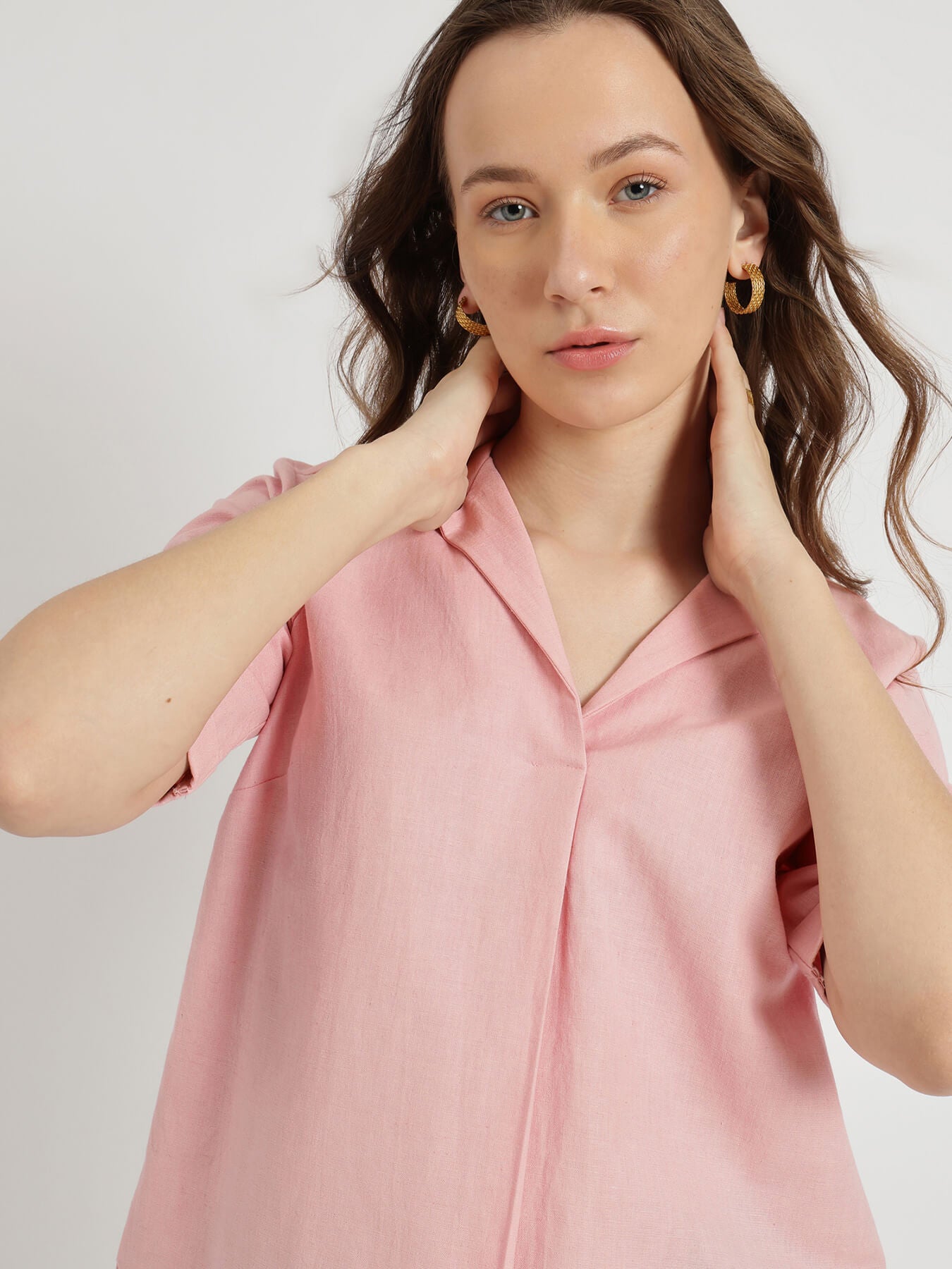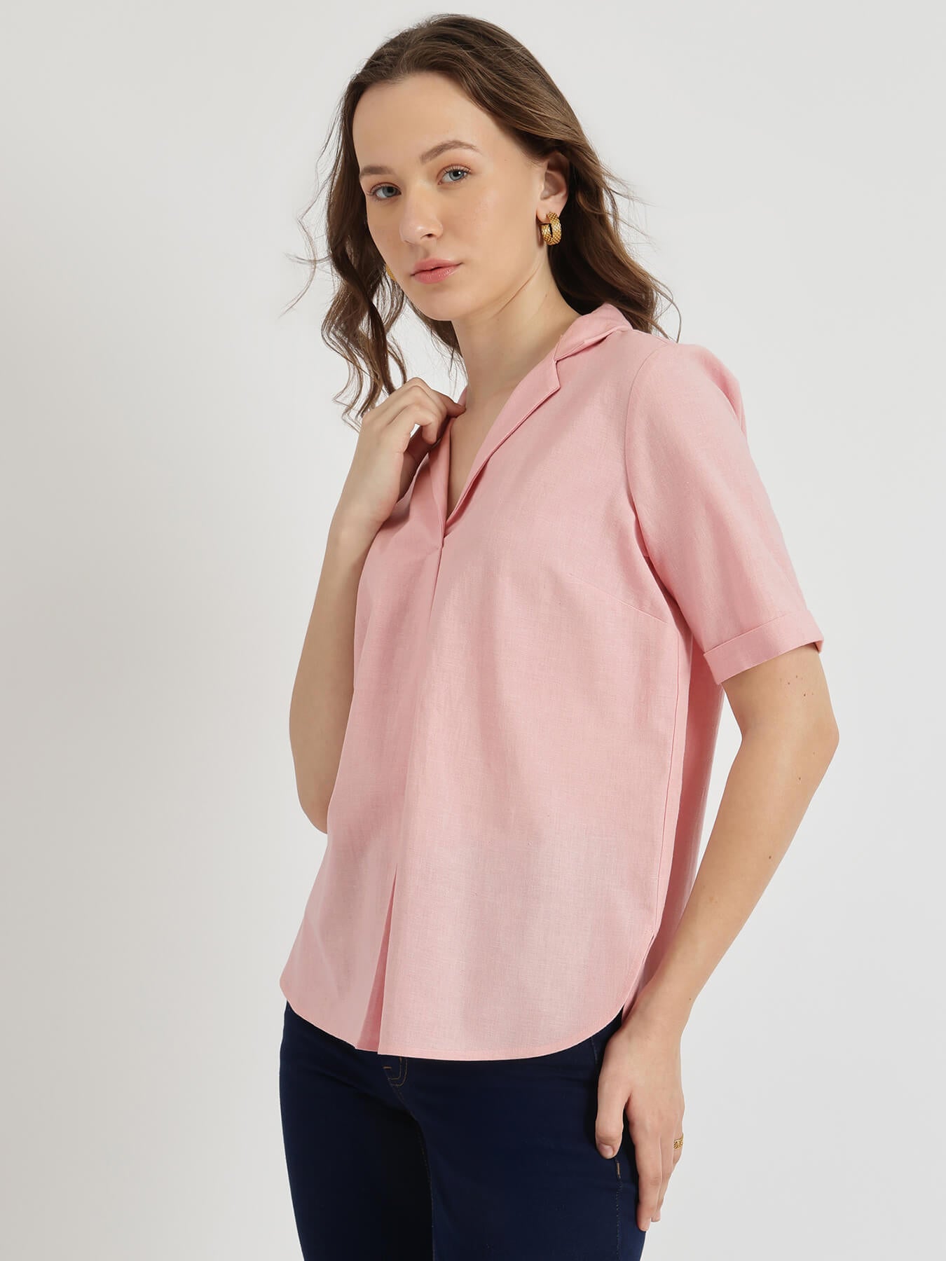 Cotton Notched Collar Top - Pink