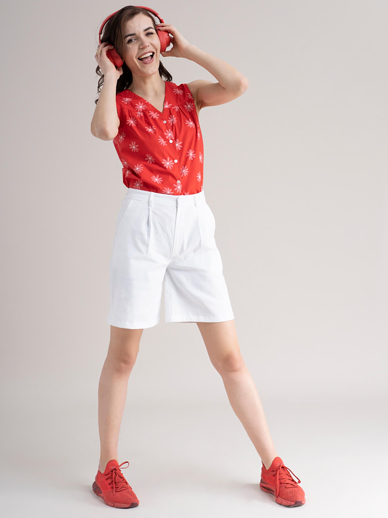 The hem of the shorts is intended to fall according to the image on a height of 5'3" to 5'5". Colour may vary slightly according to screen settings and resolution.