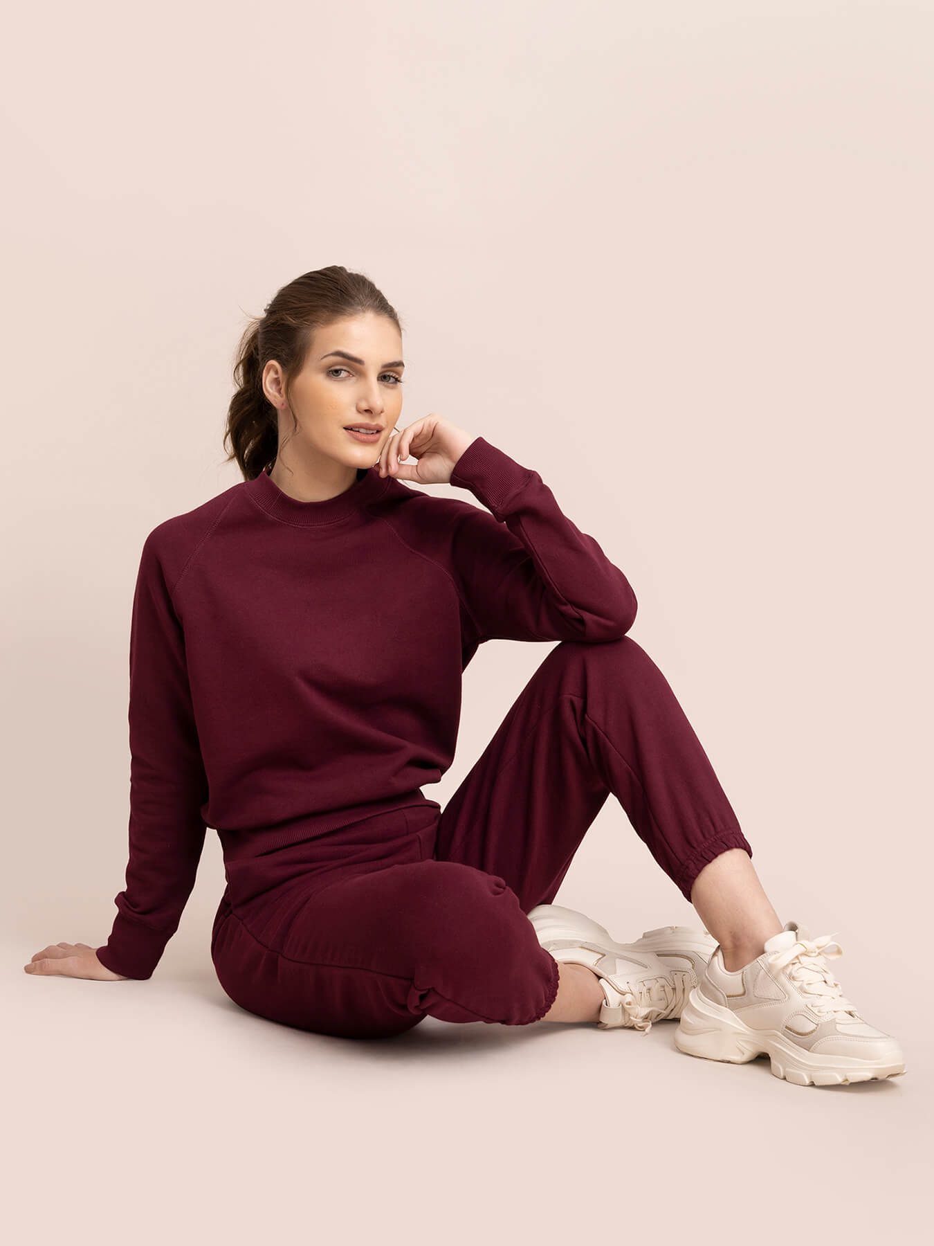 This maroon sweatshirt has a round neck and full sleeves. It has a regular length and keeps you warm and cosy all day long. Made from Cotton terry, it is ultra-soft, breathable, comfortable and stretchable.