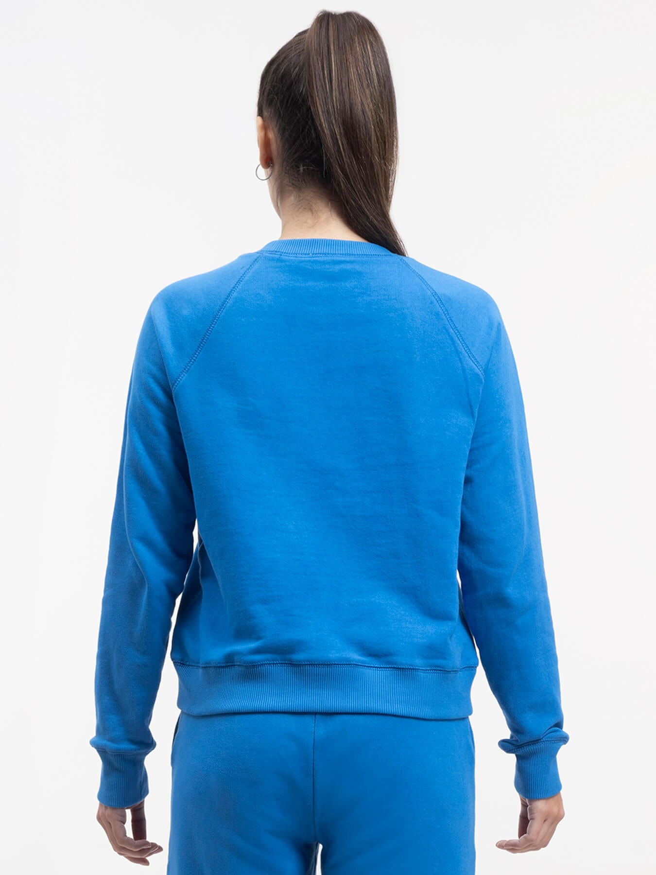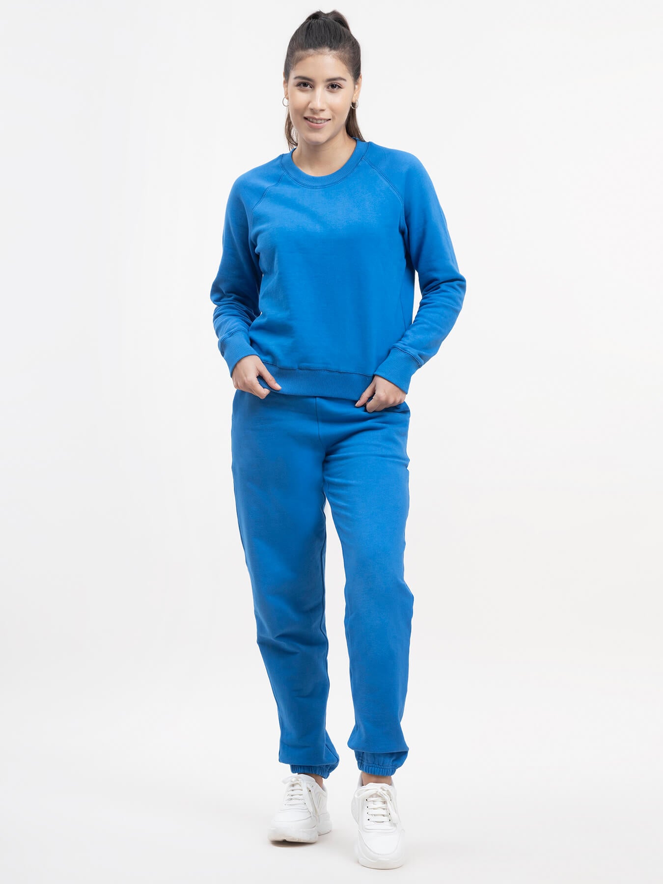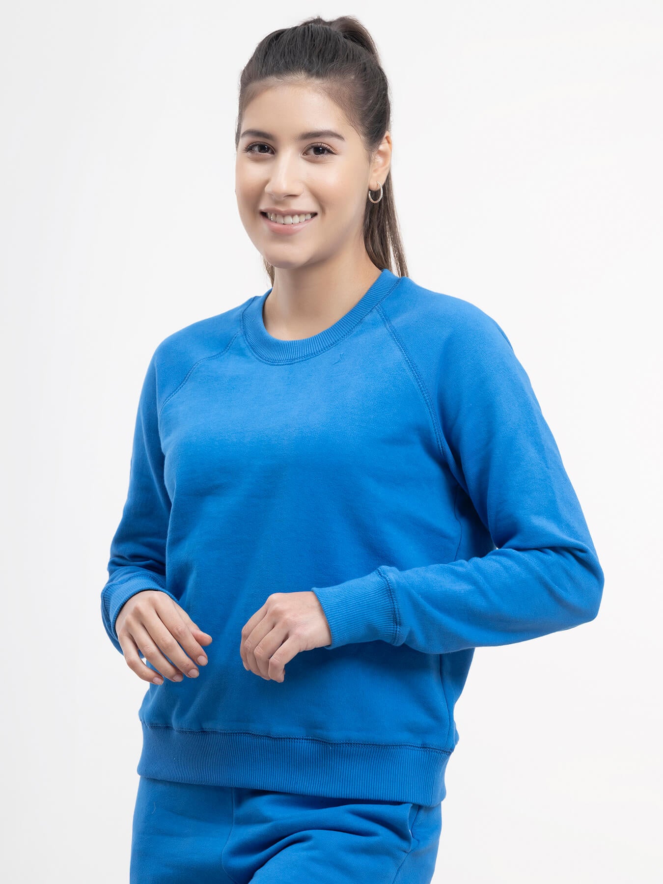 This royal blue sweatshirt has a round neck and full sleeves. It has a regular length and keeps you warm and cosy all day long. Made from Fleece, it is ultra-soft, breathable, comfortable and stretchable.