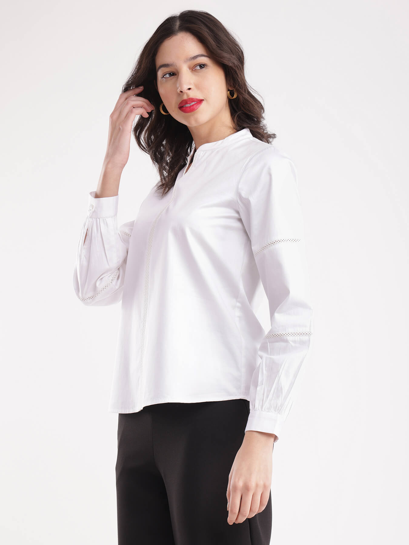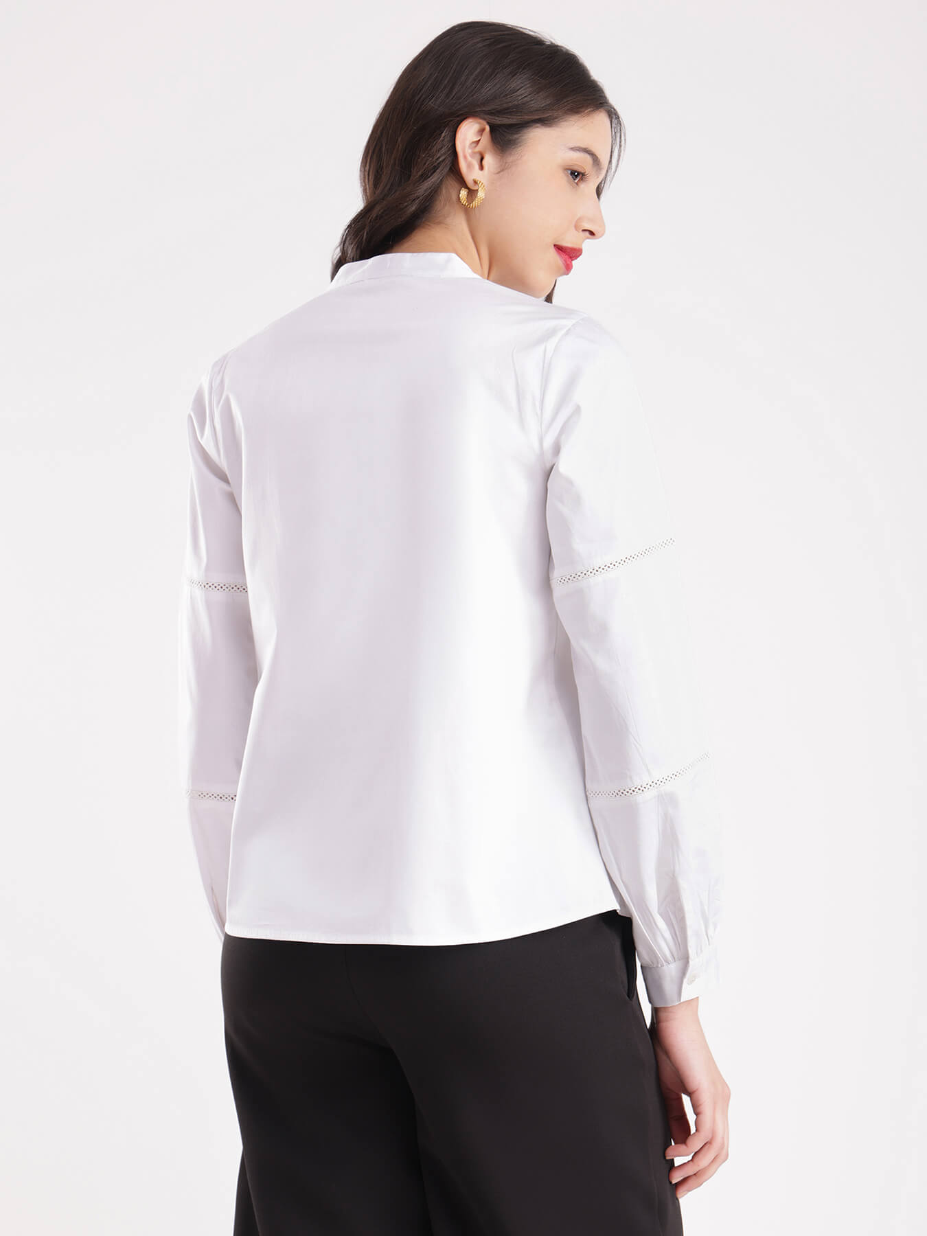Cotton Satin Lace Top - White