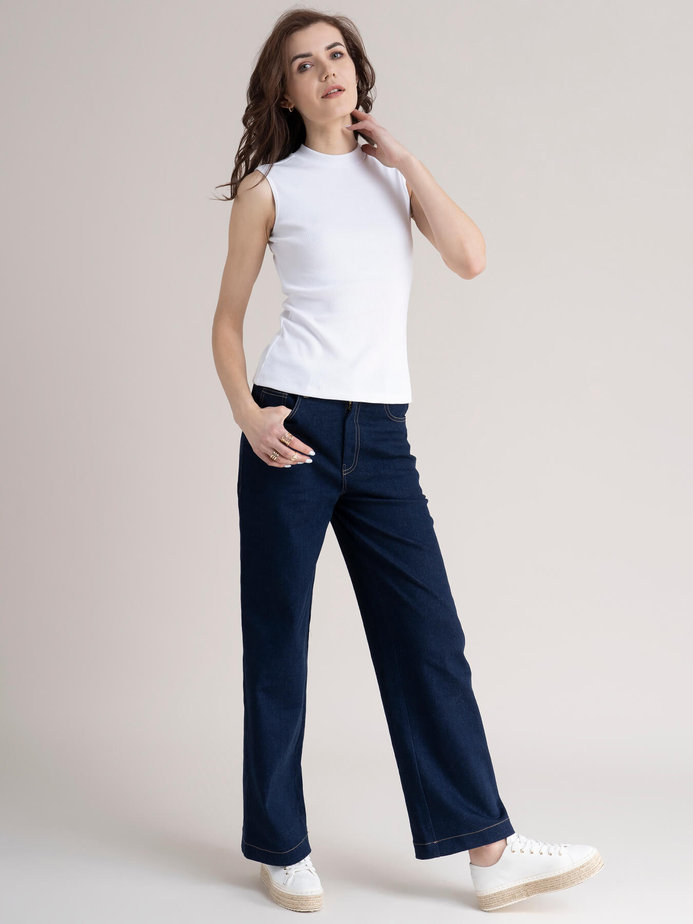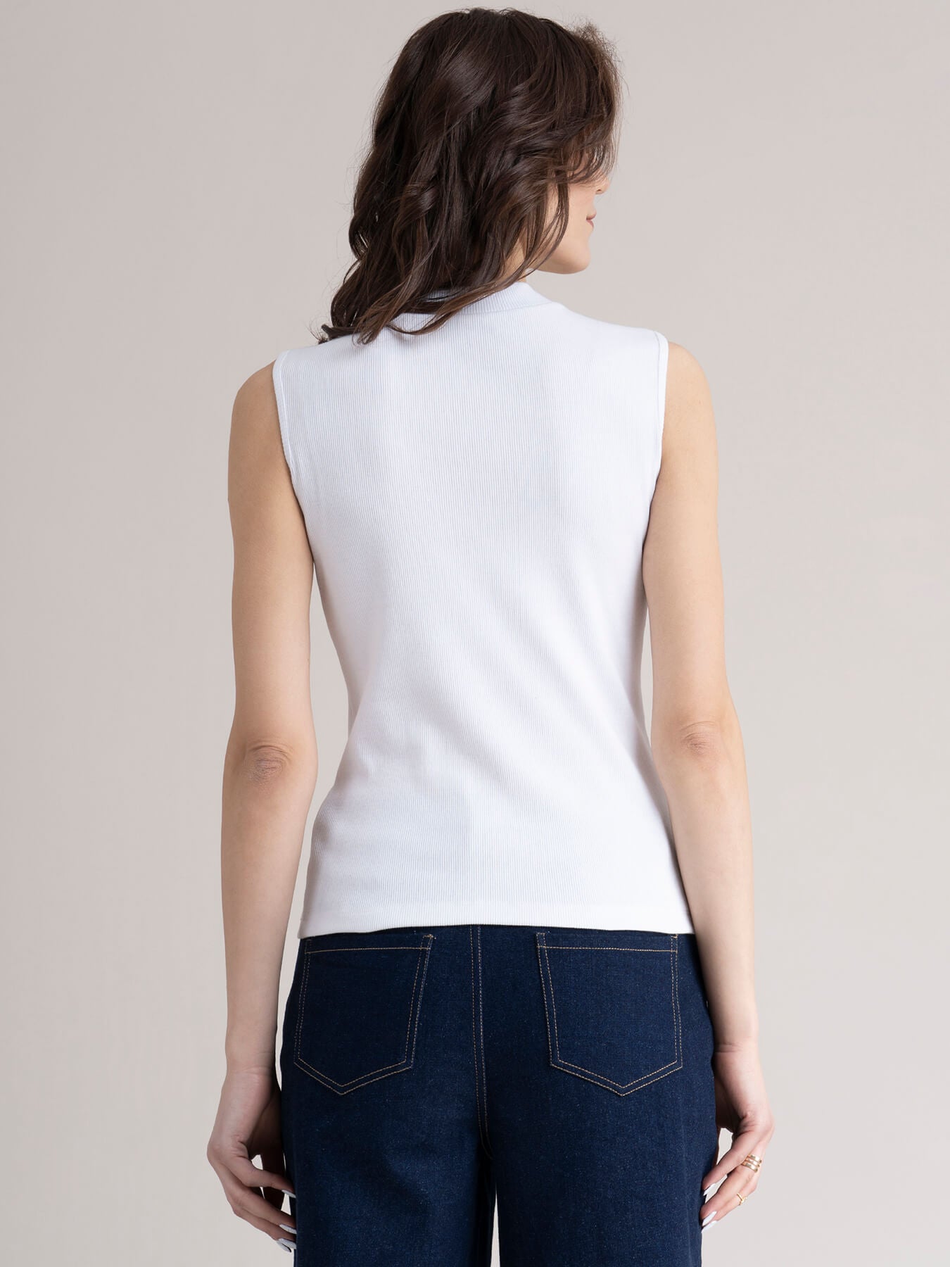 Cotton Sleeveless Rib Tee - White