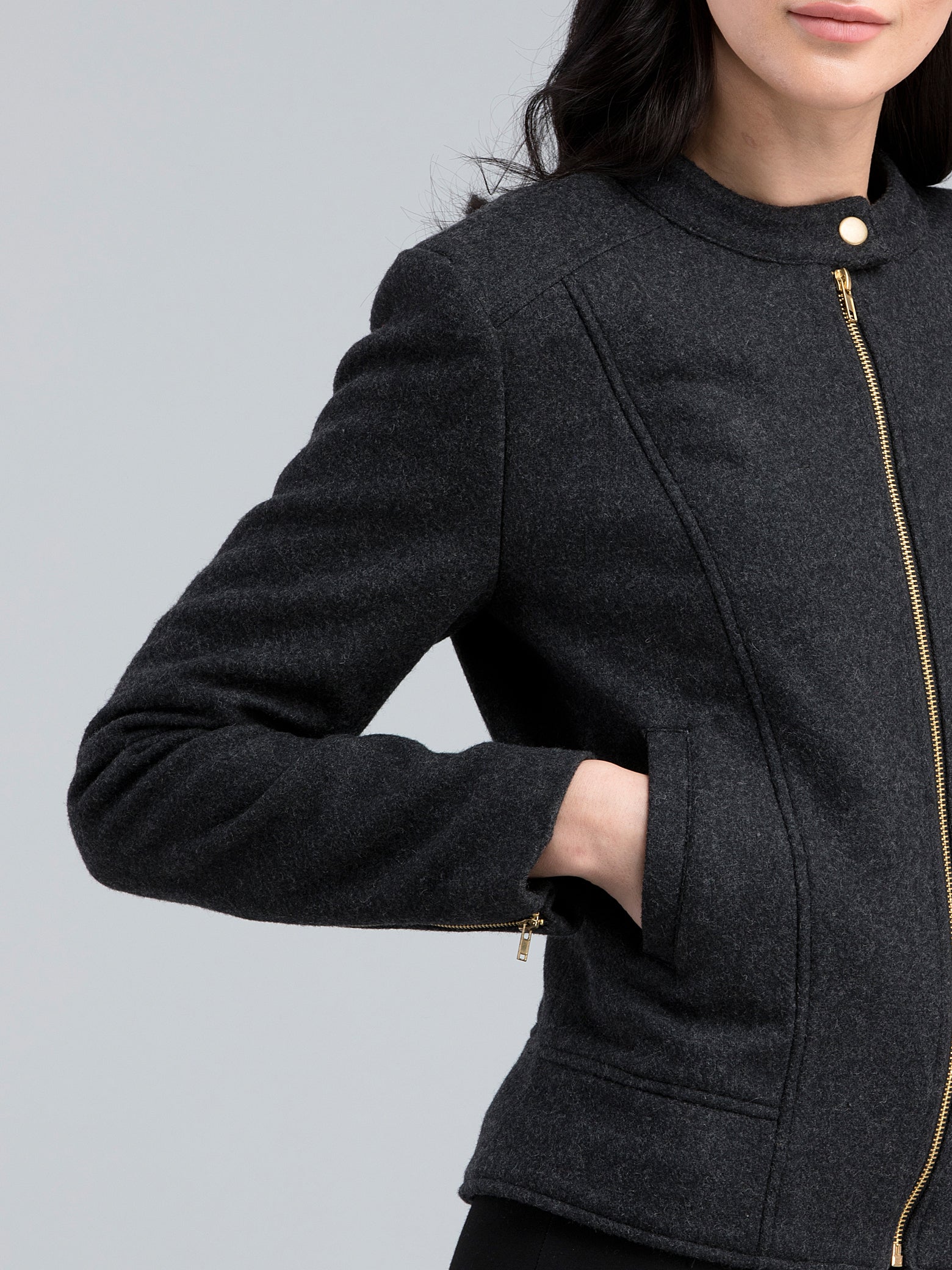 Cotton Wool Felt Panelled Jacket - Dark Grey