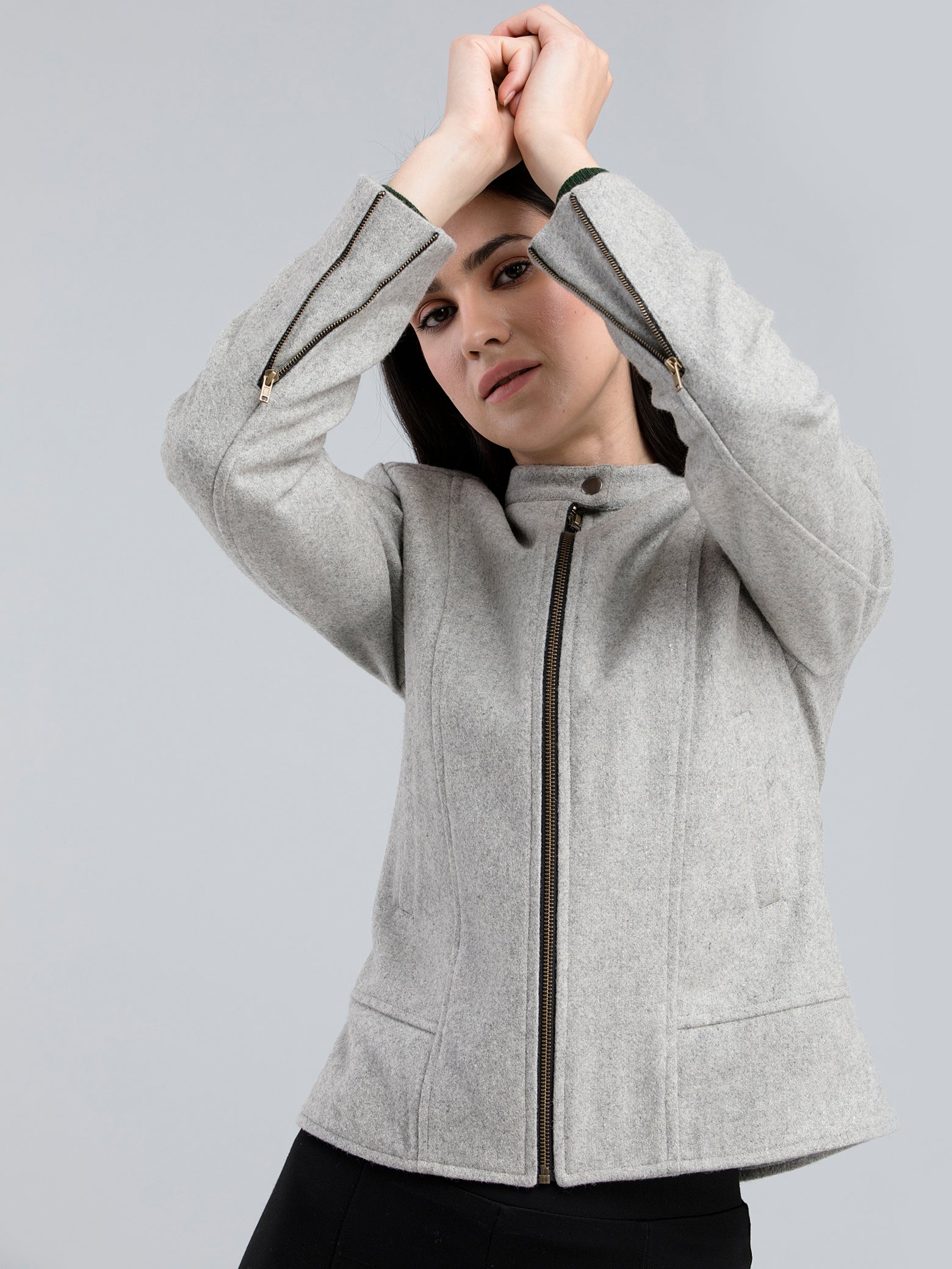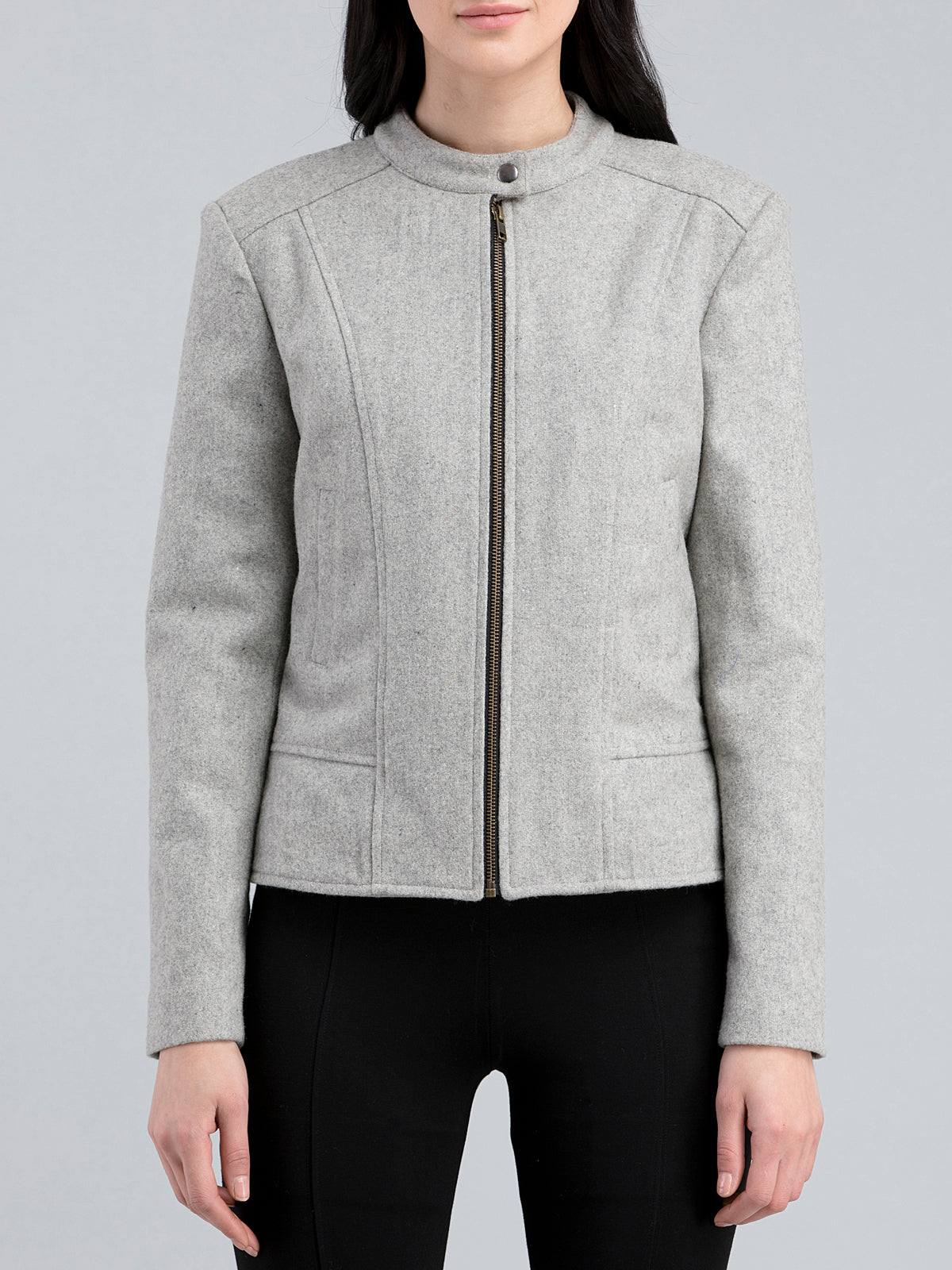 Cotton Wool Felt Panelled Bomber Jacket - Grey
