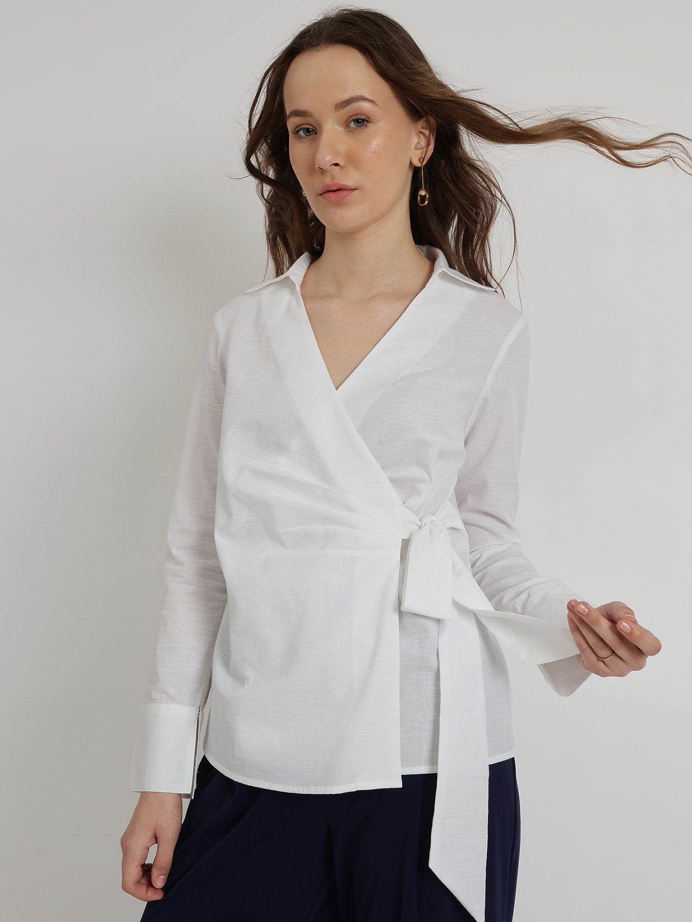 Cotton Wrap Shirt - White