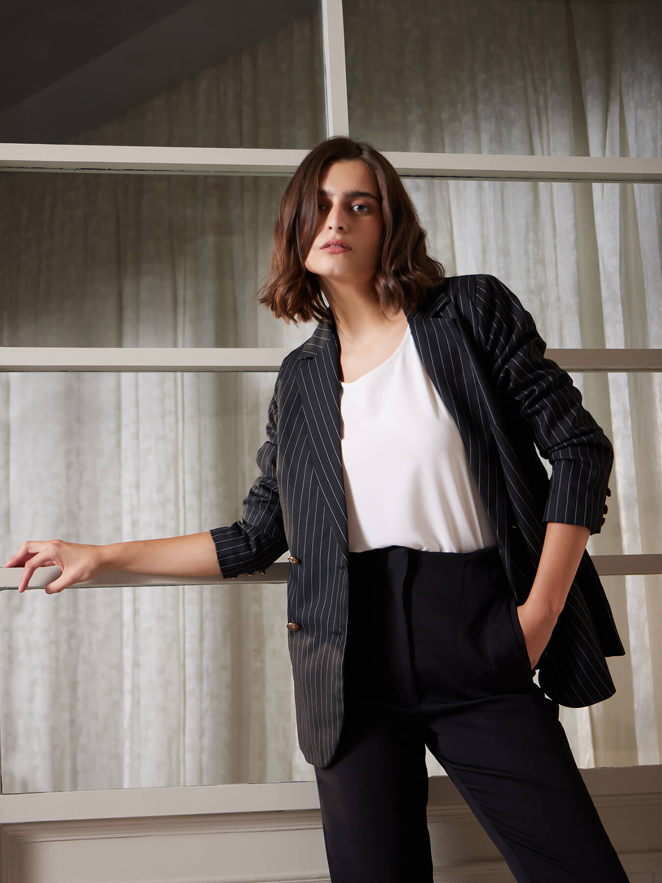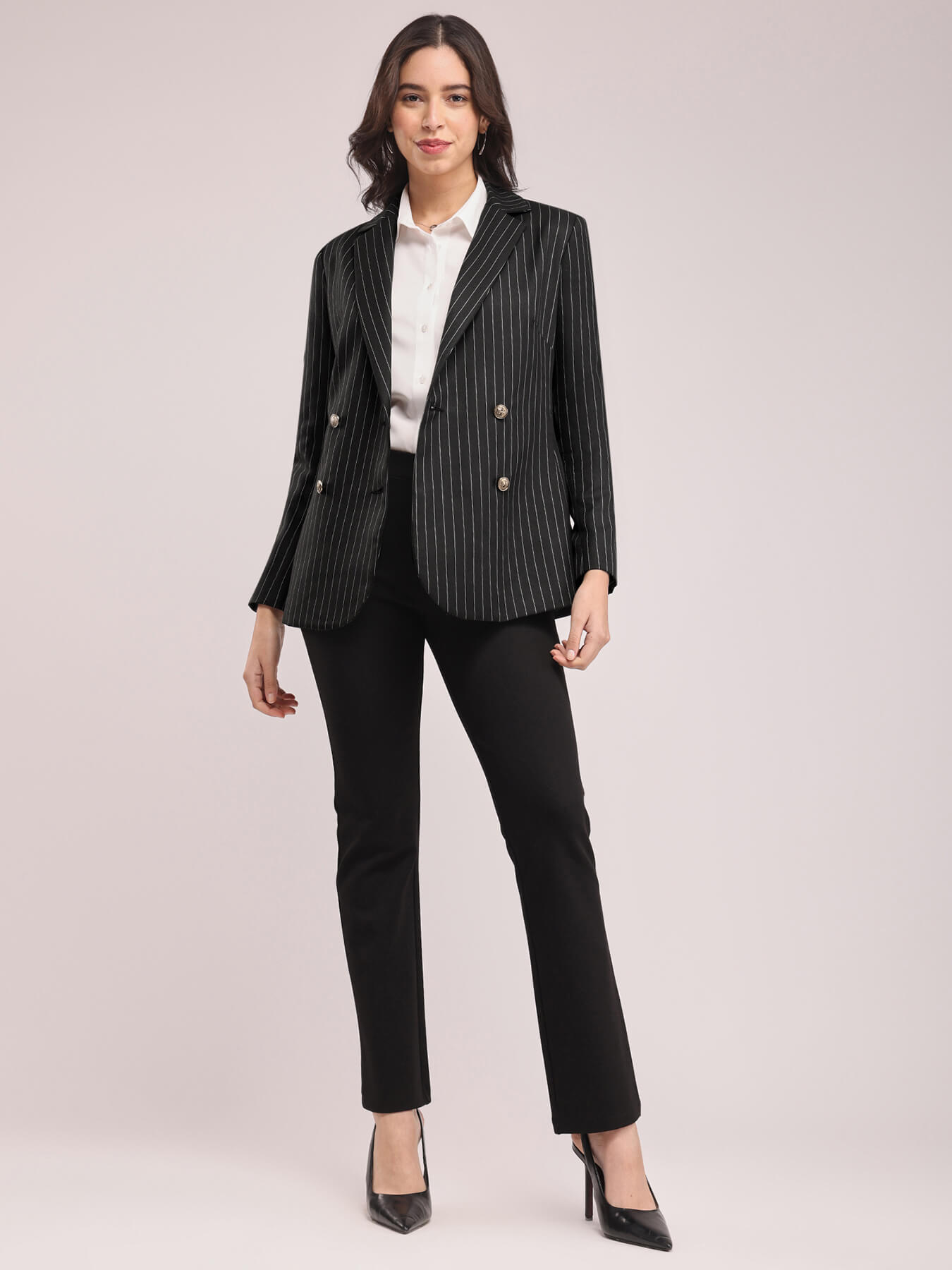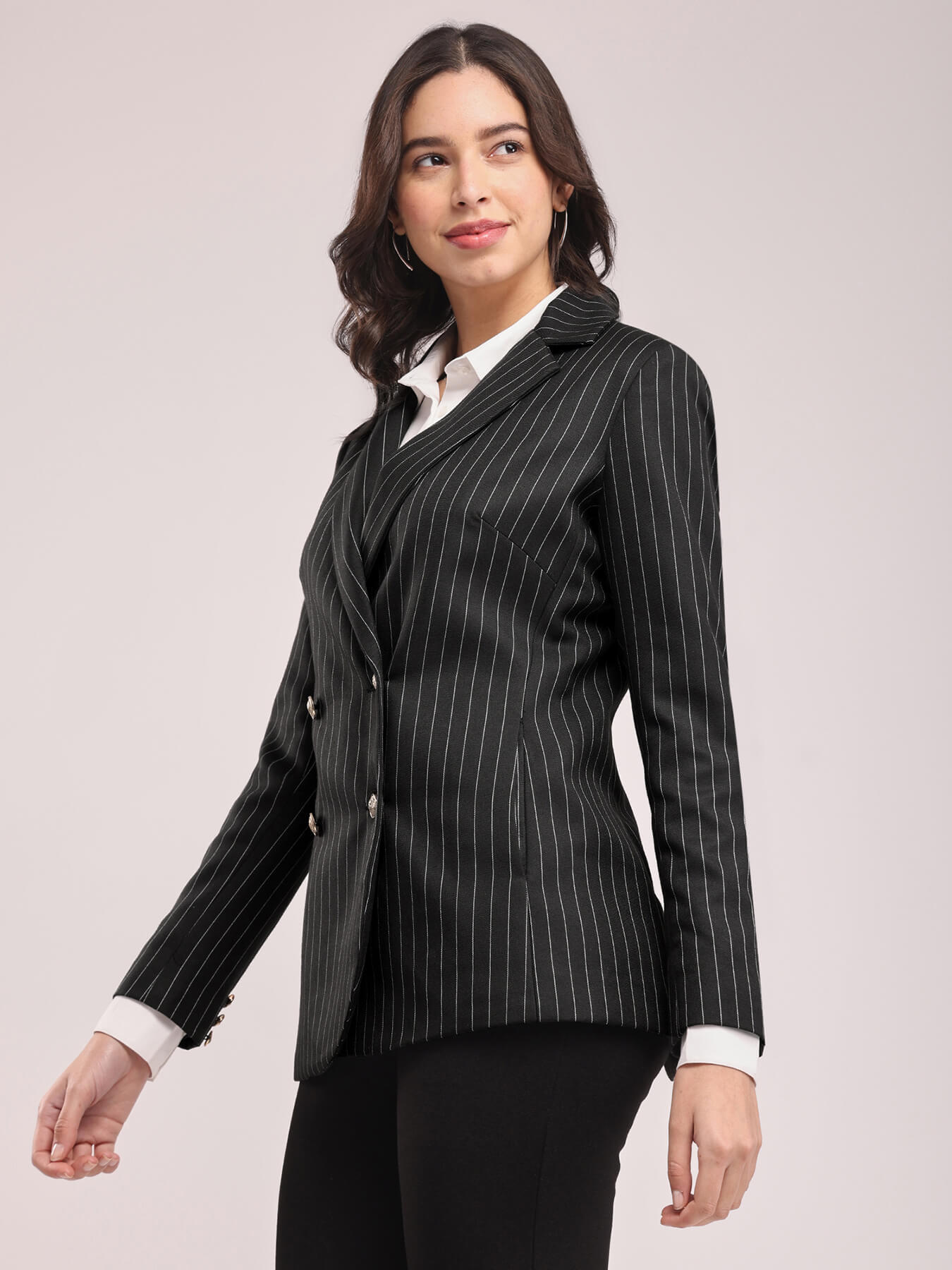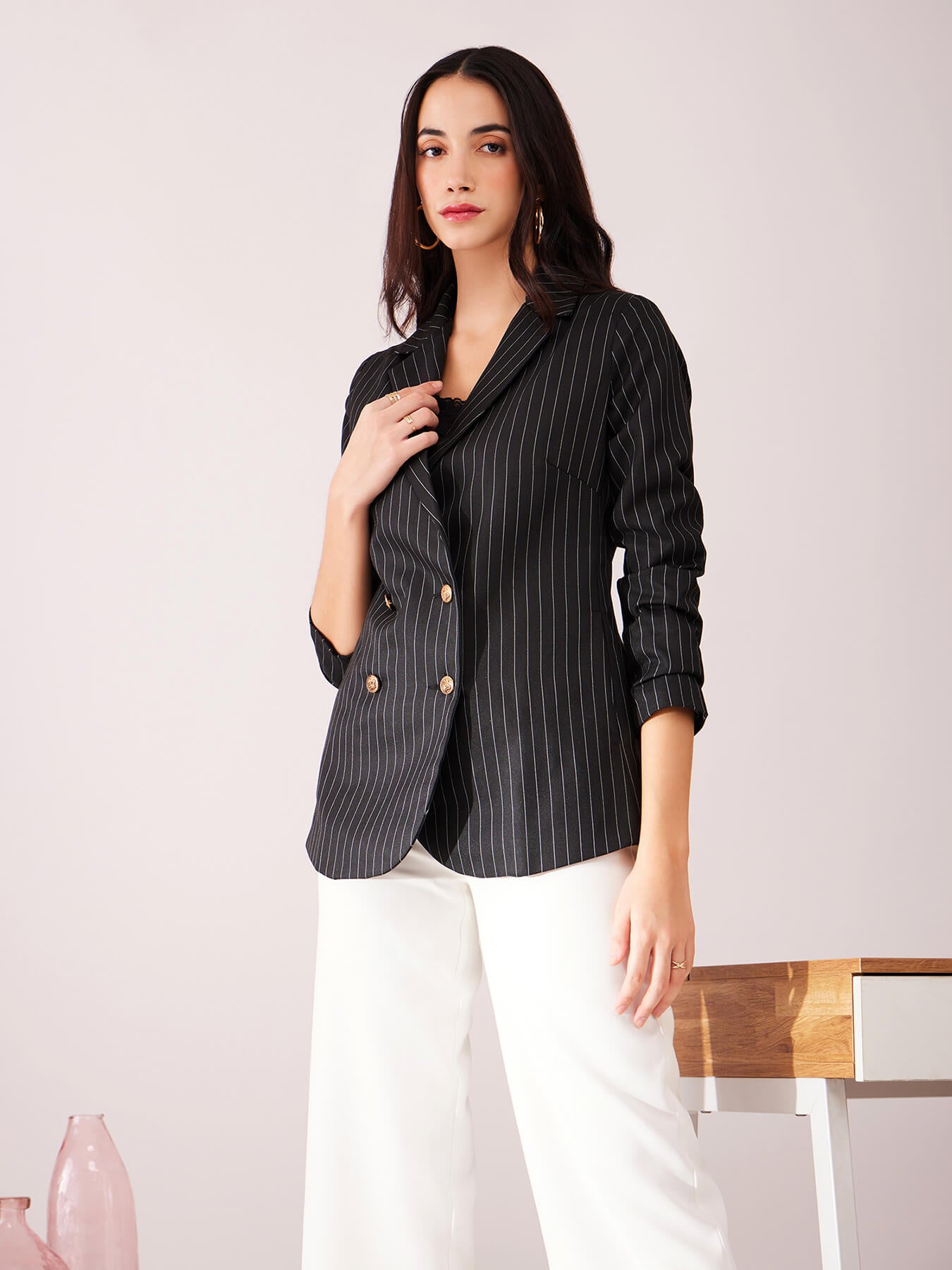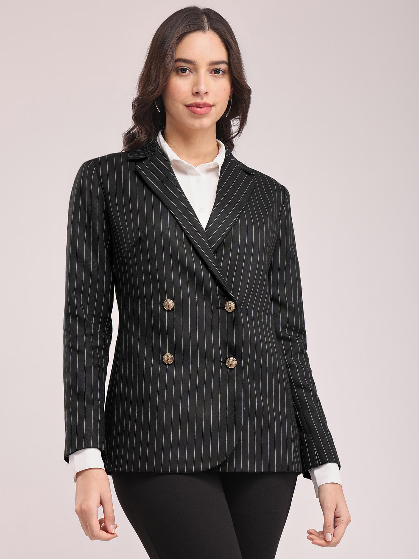 Double Breasted Blazer - Black And White