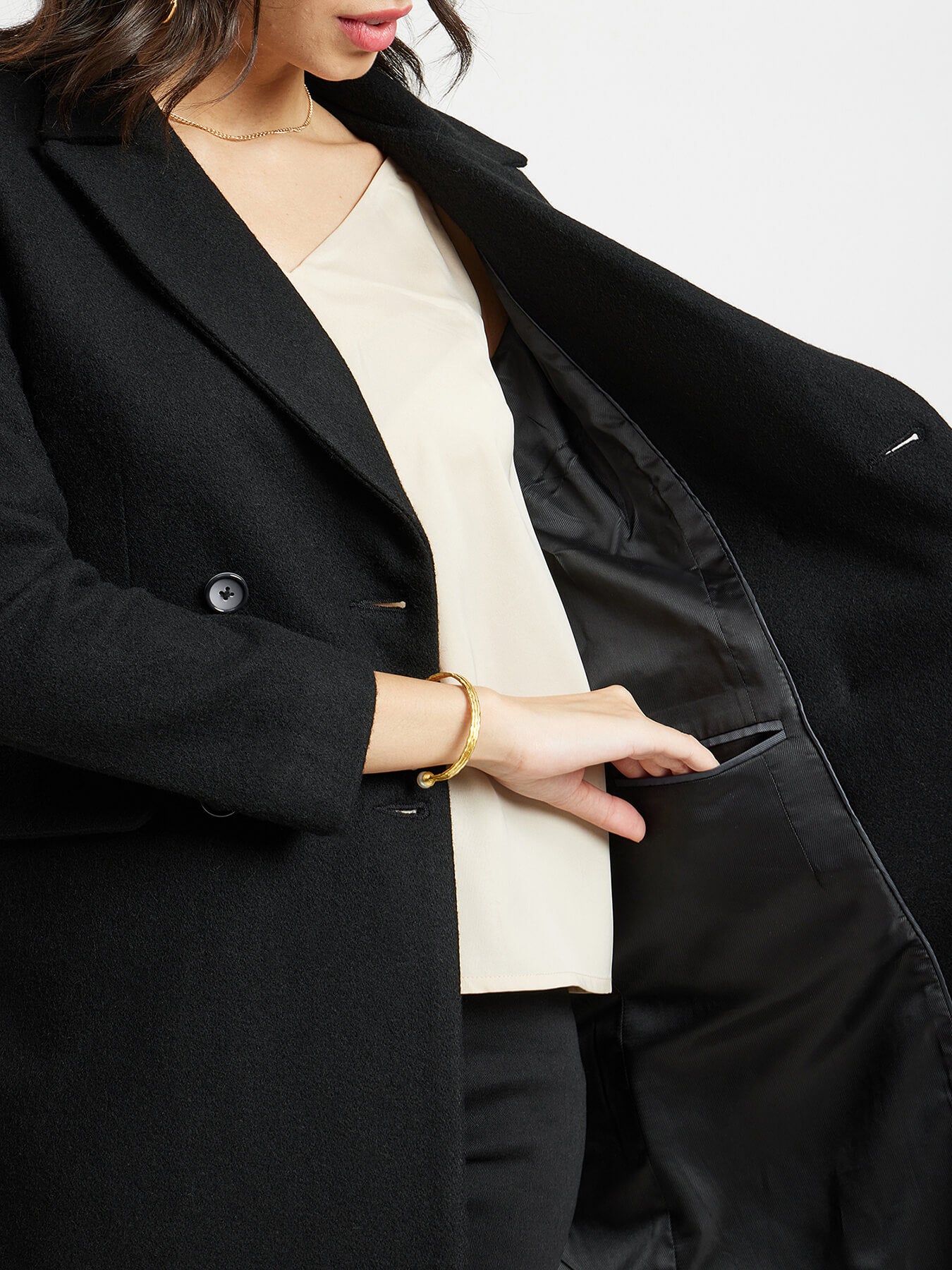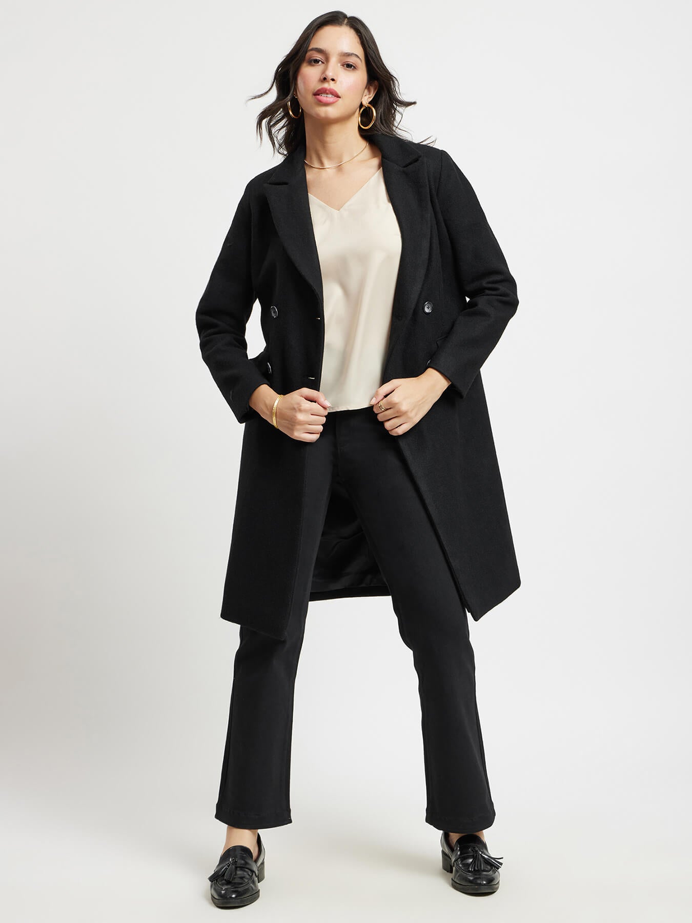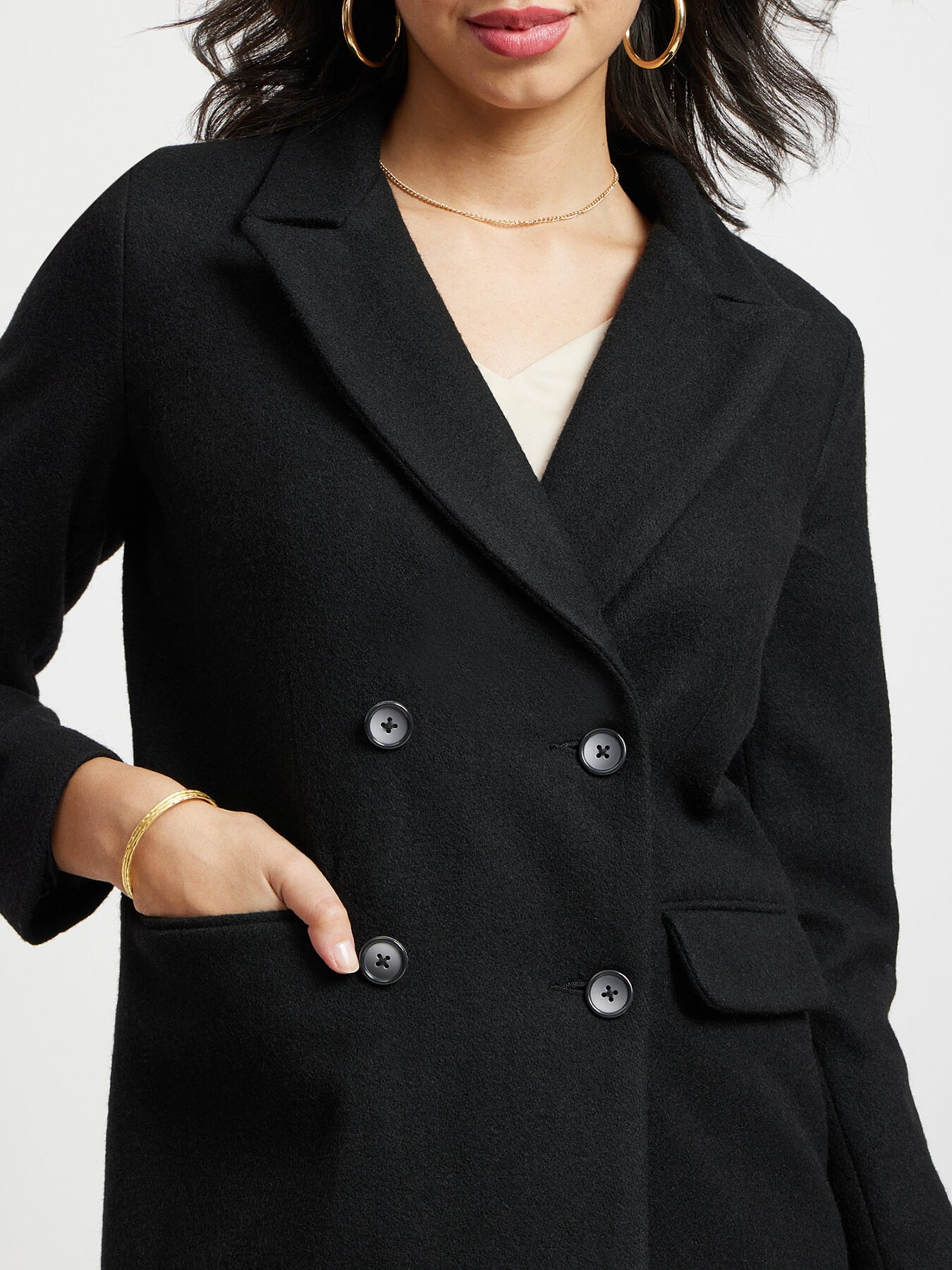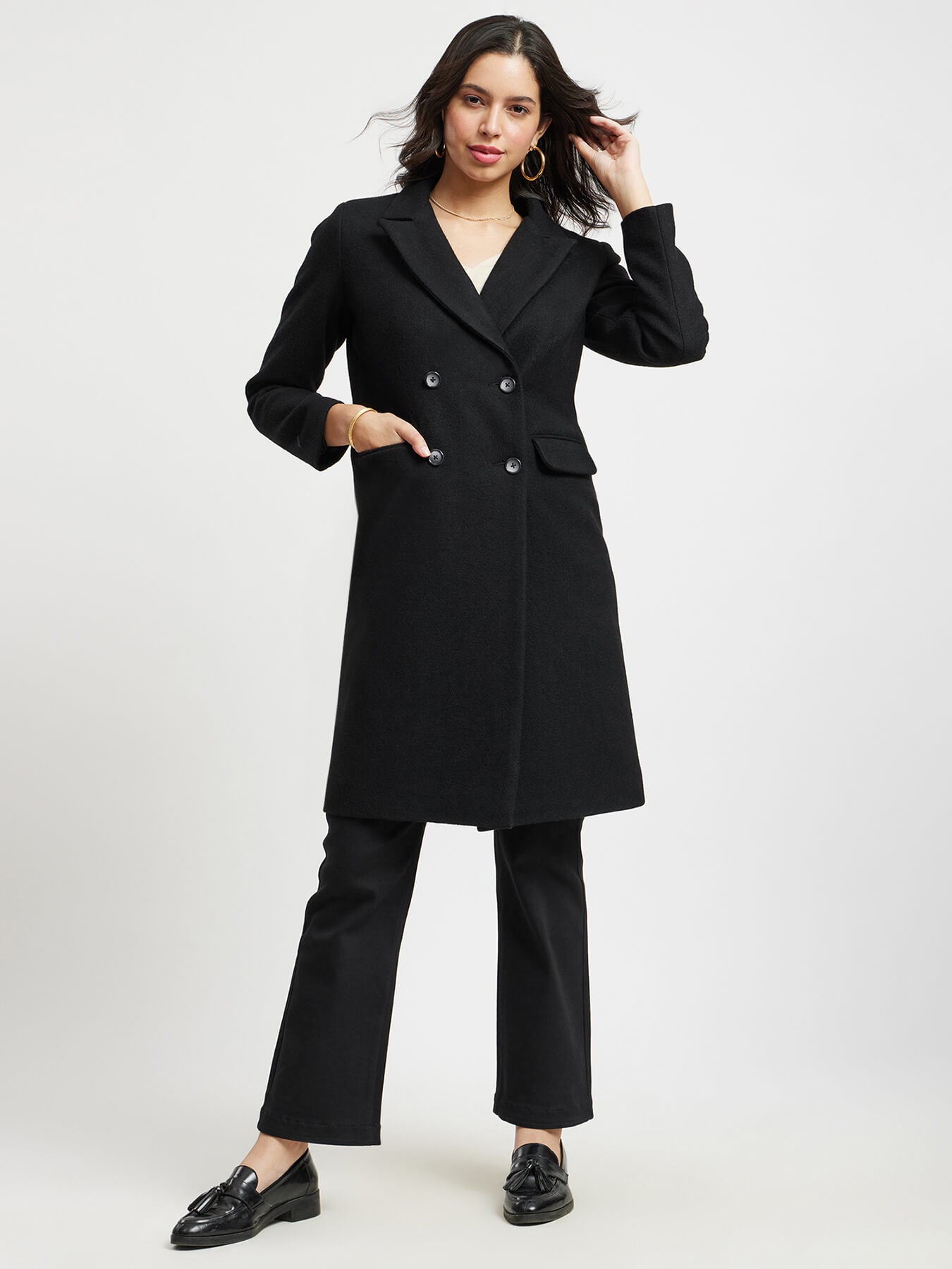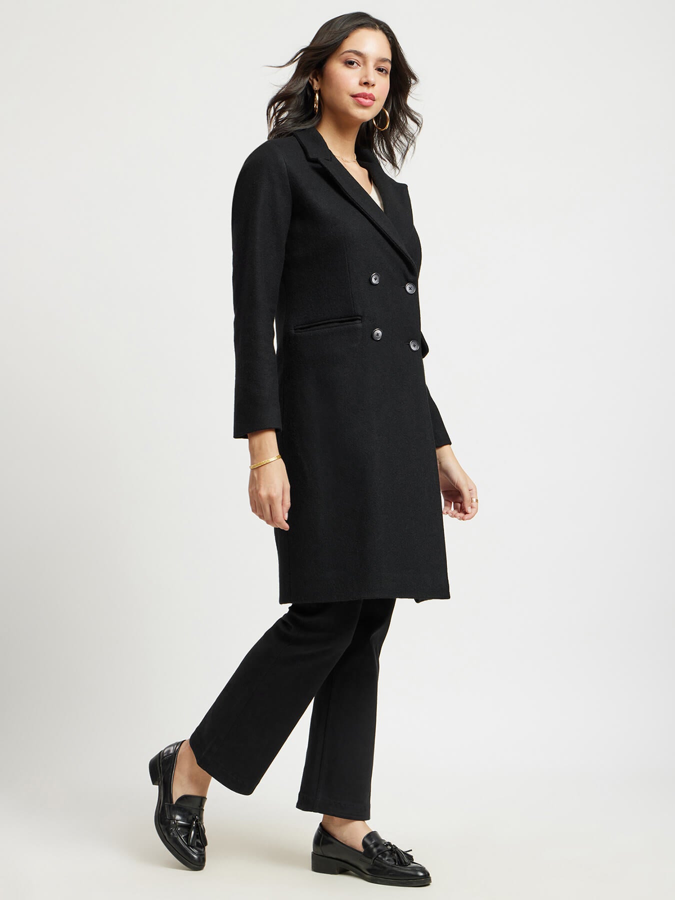 Double Breasted Felt Overcoat - Black
