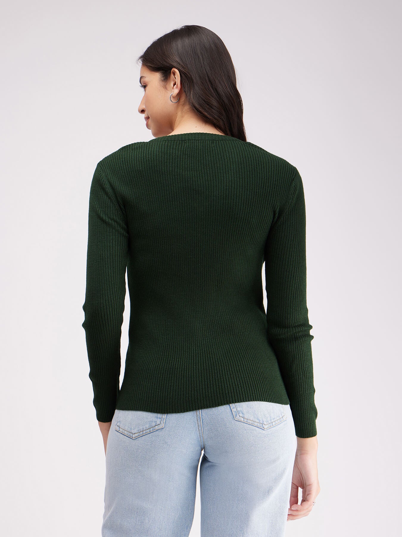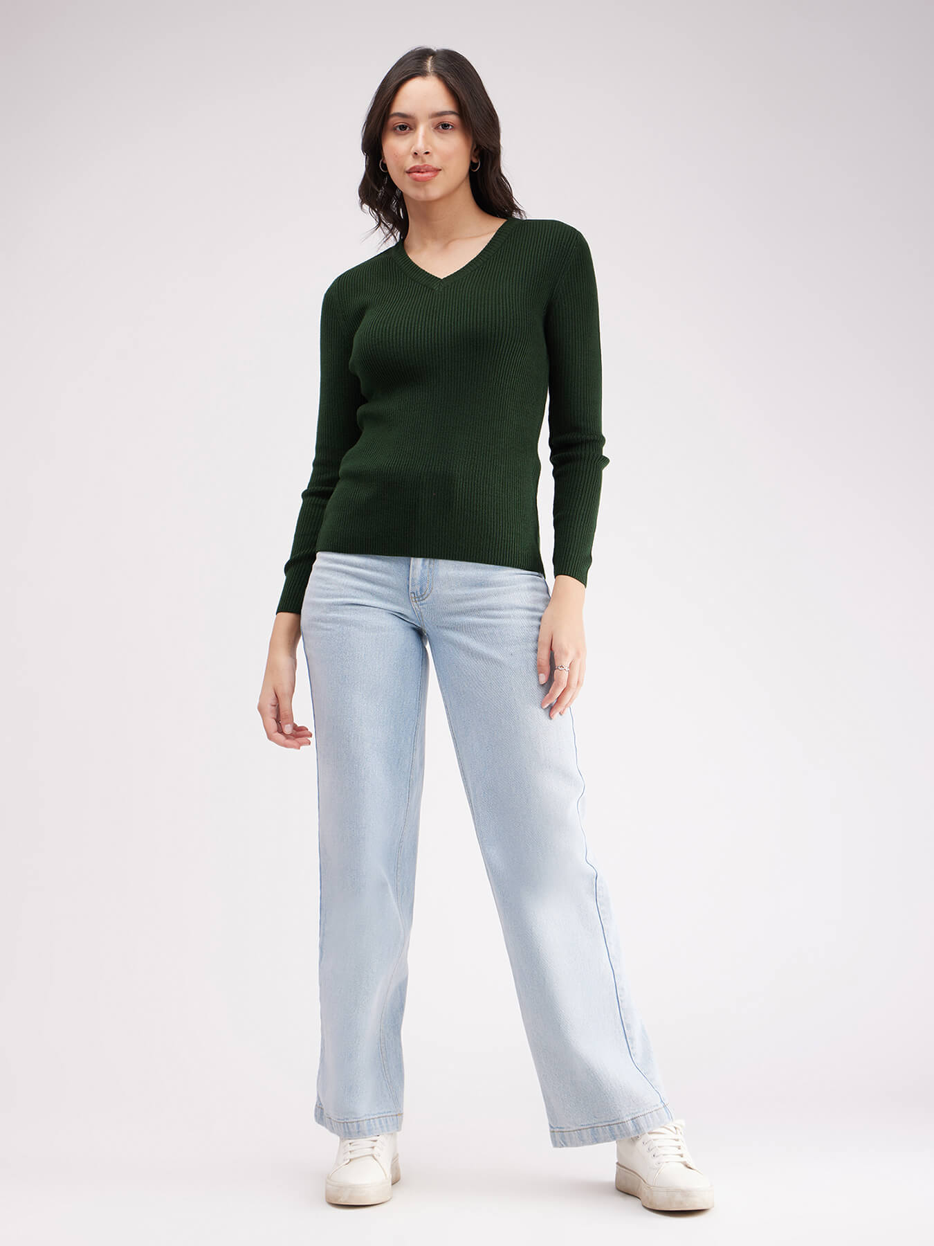 This olive sweater has a V neck and full sleeves. Made from Acrylic, it is luxurious, ultra-soft, breathable, durable and stretchable with a flawless drape.