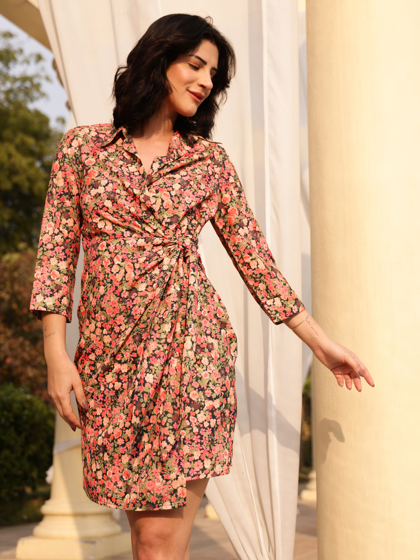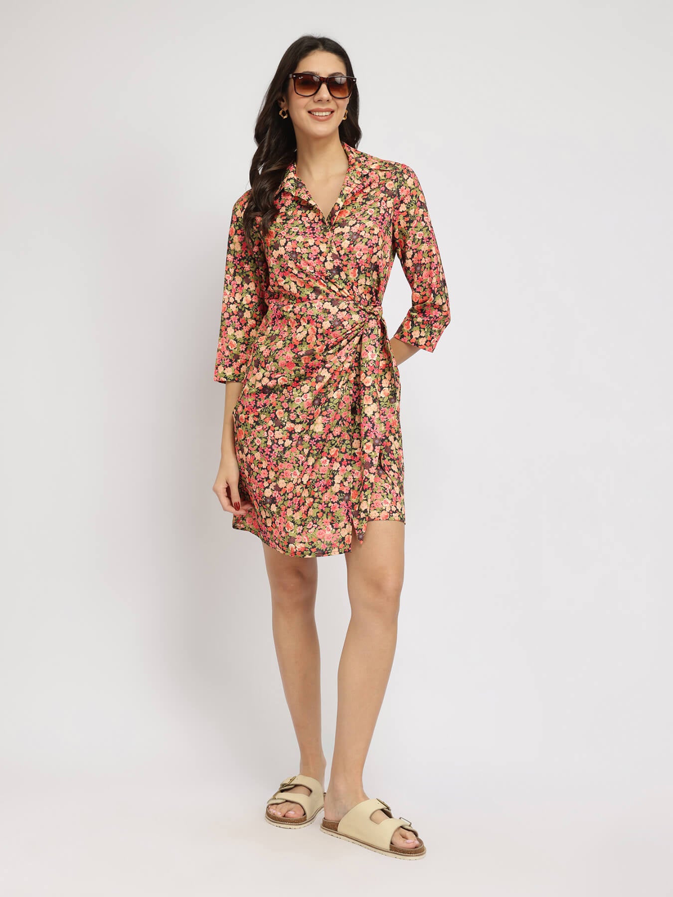 Floral Wrap Dress - Multicolour