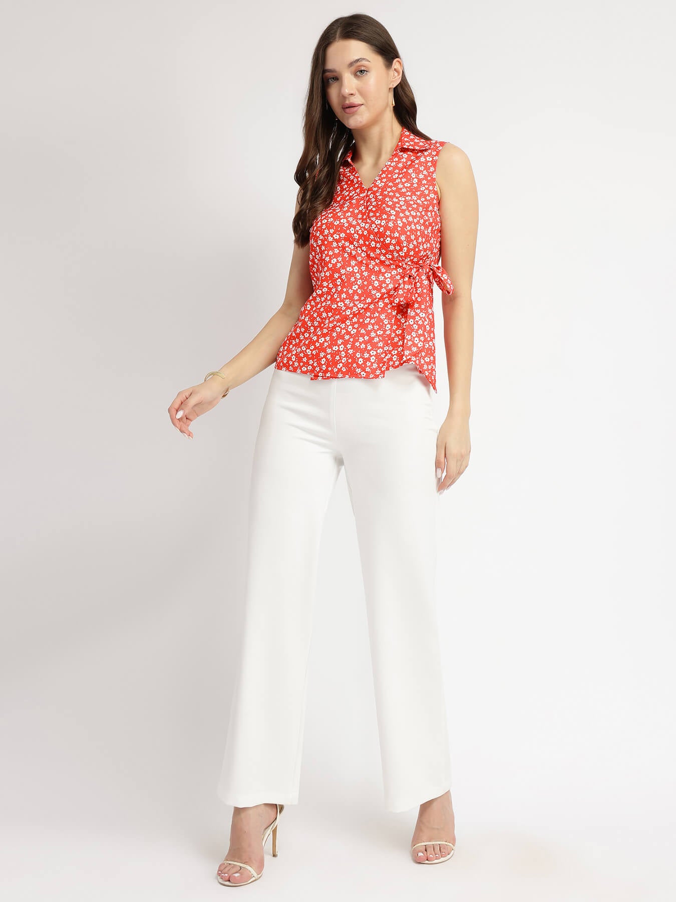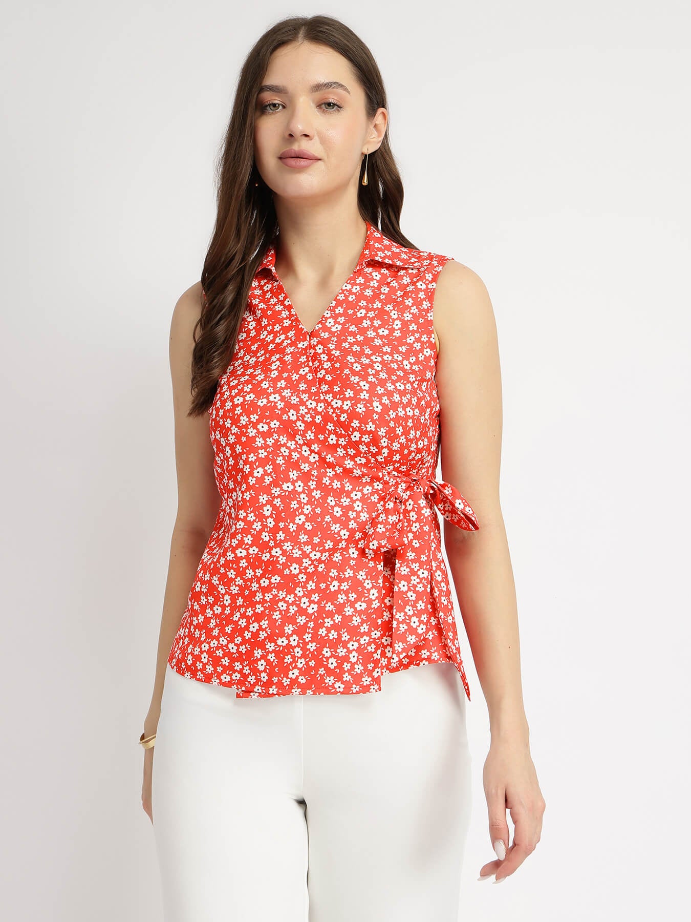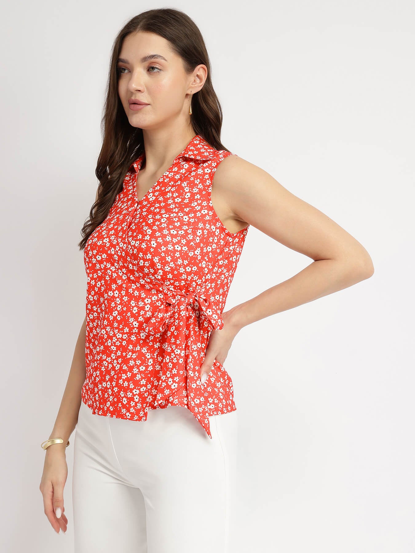 Floral Wrap Top - Red