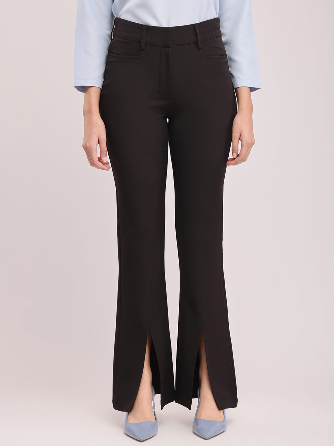 Front Slit Bootcut Trouser - Black