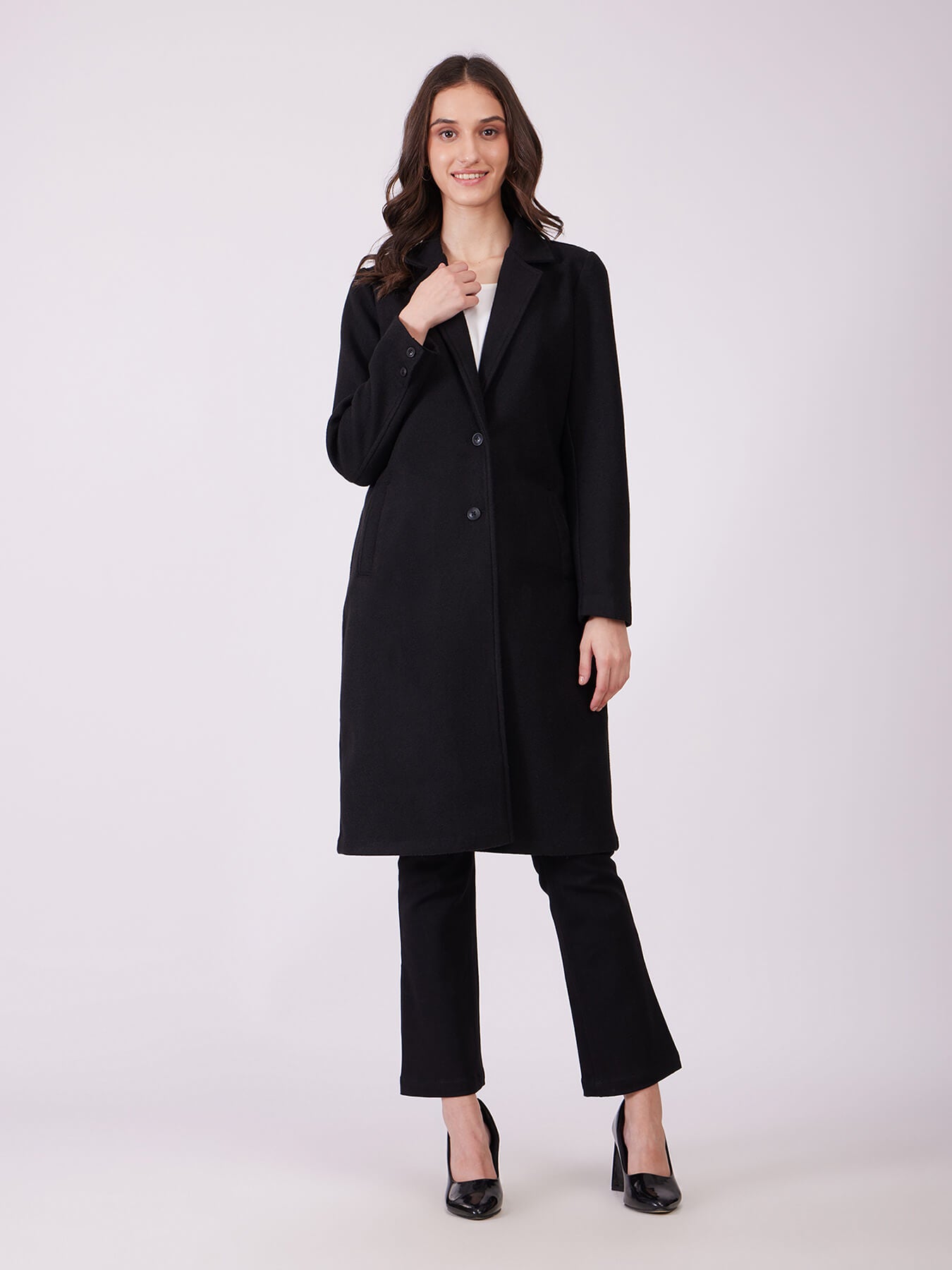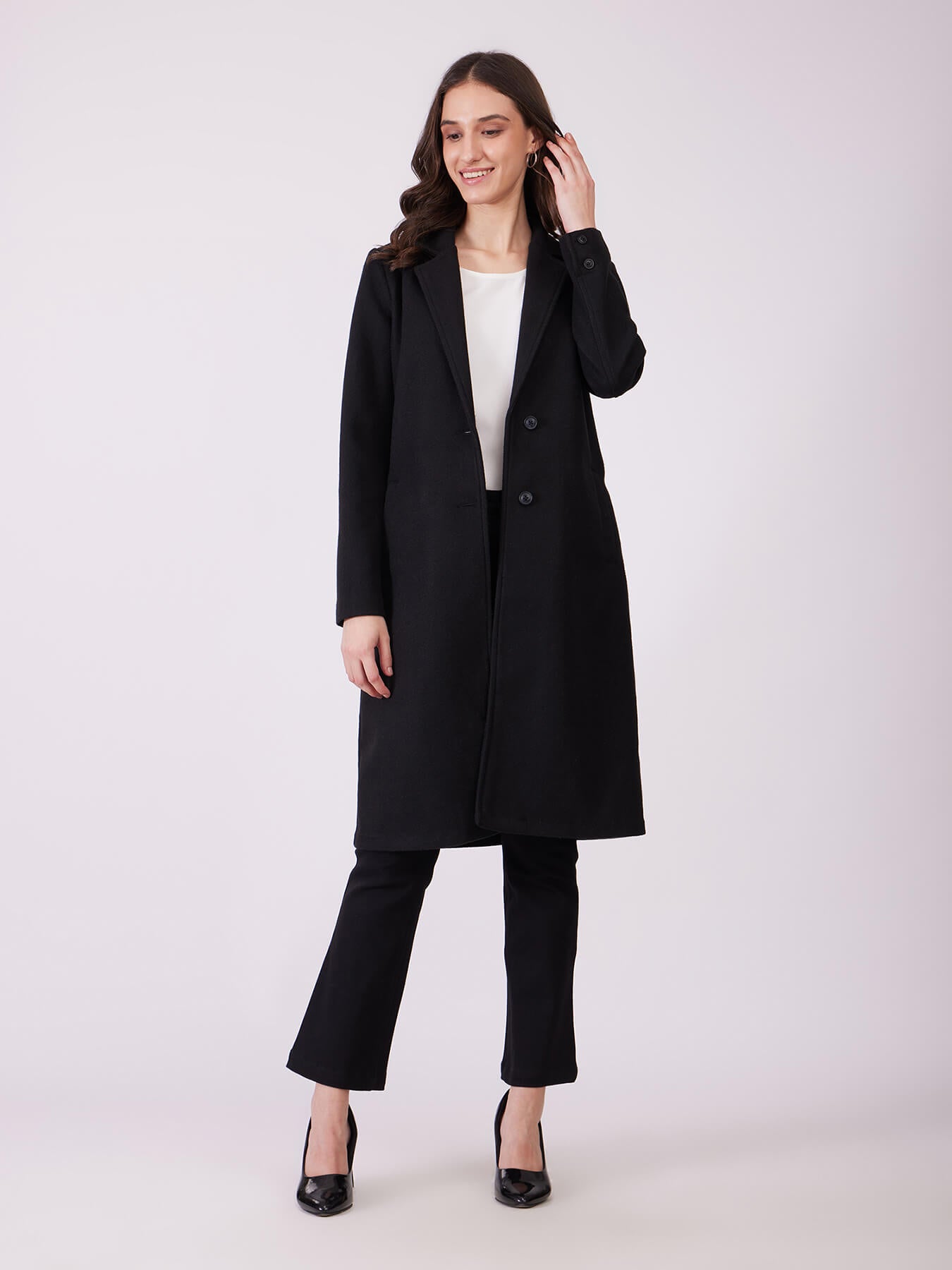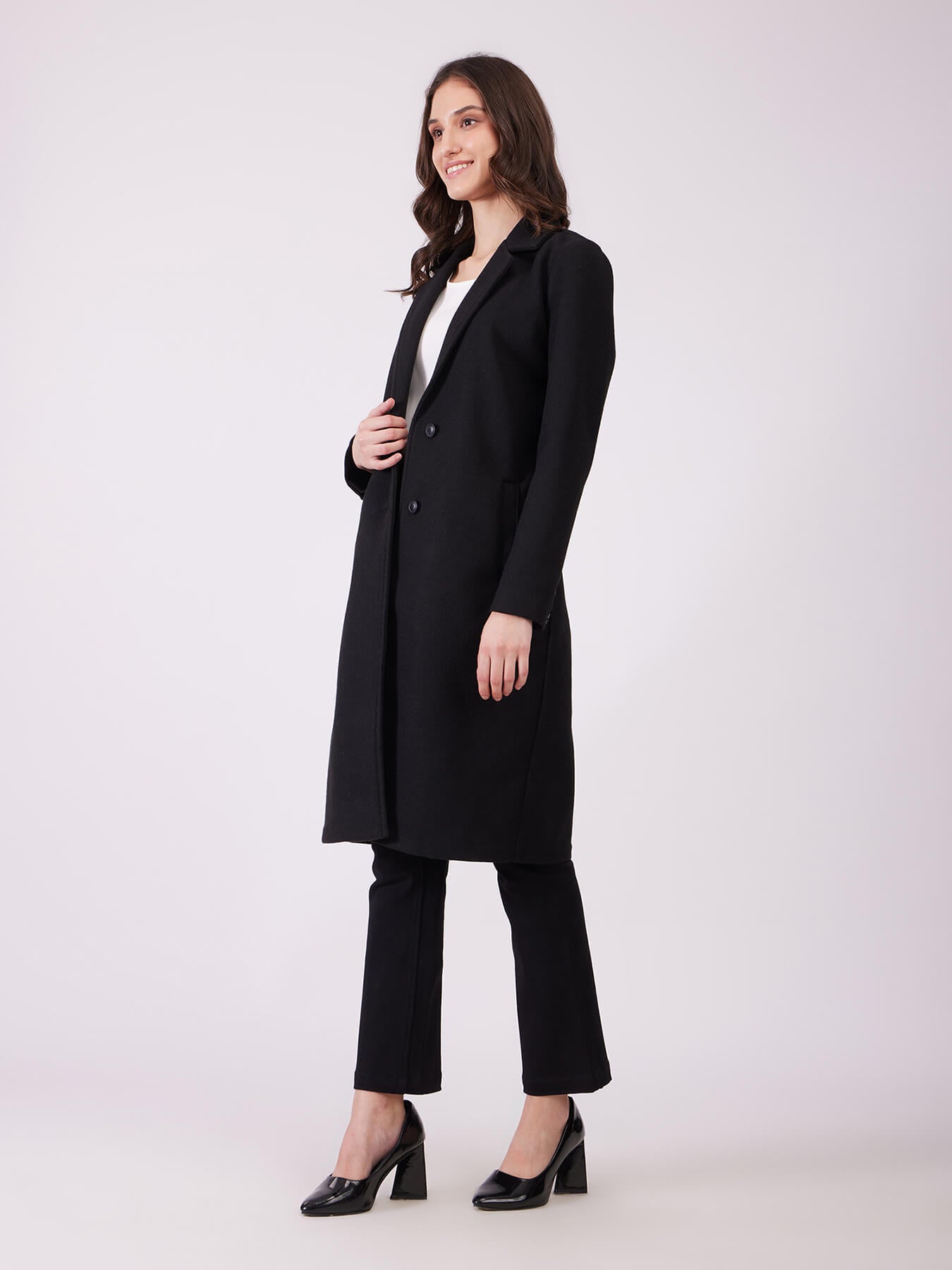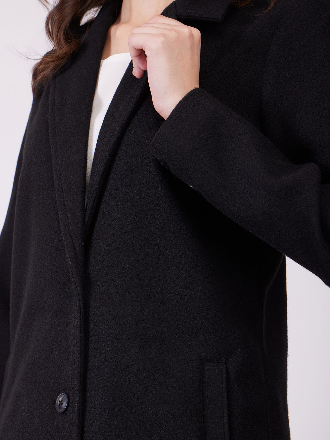 Long Felted Overcoat - Black
