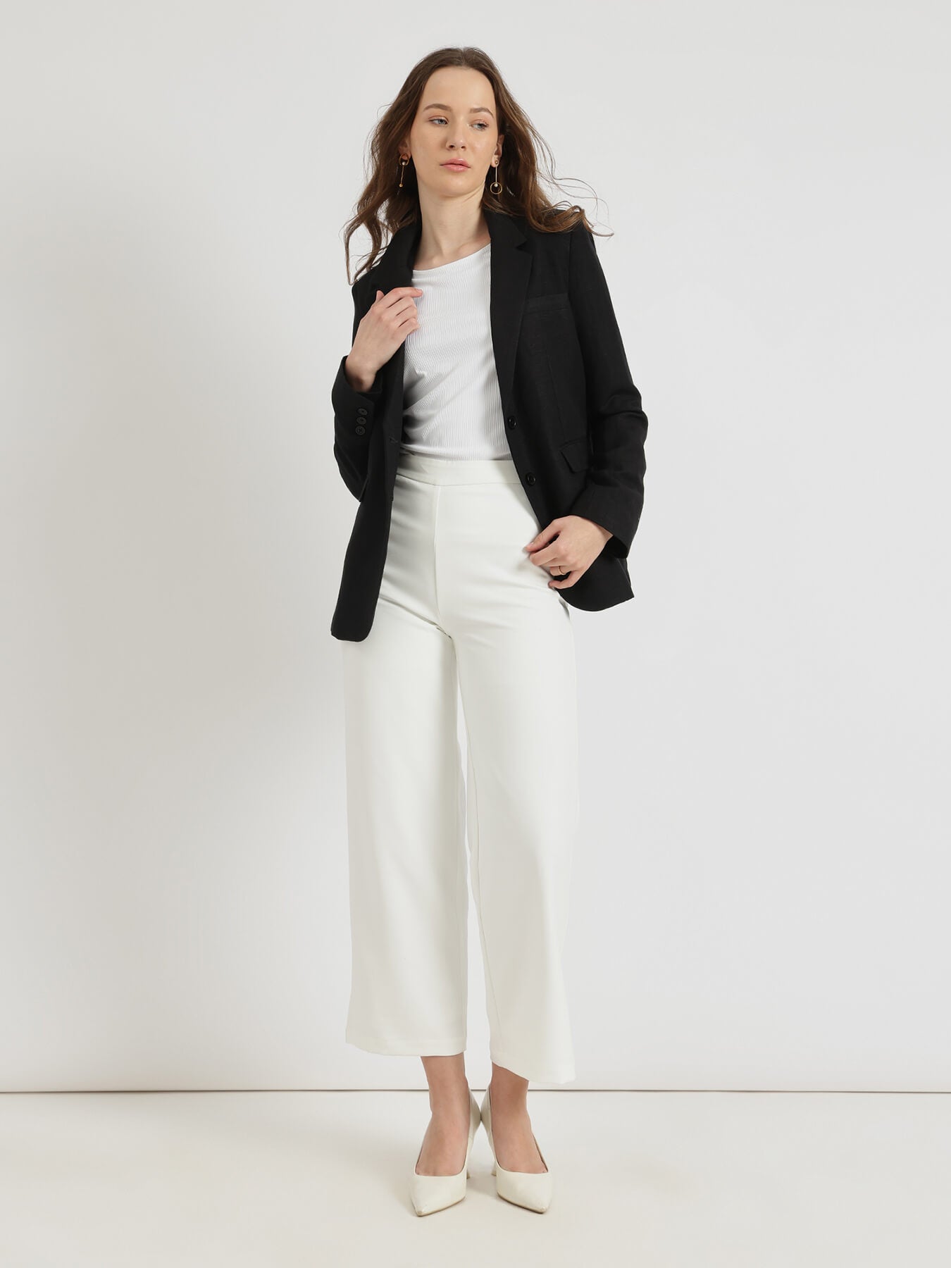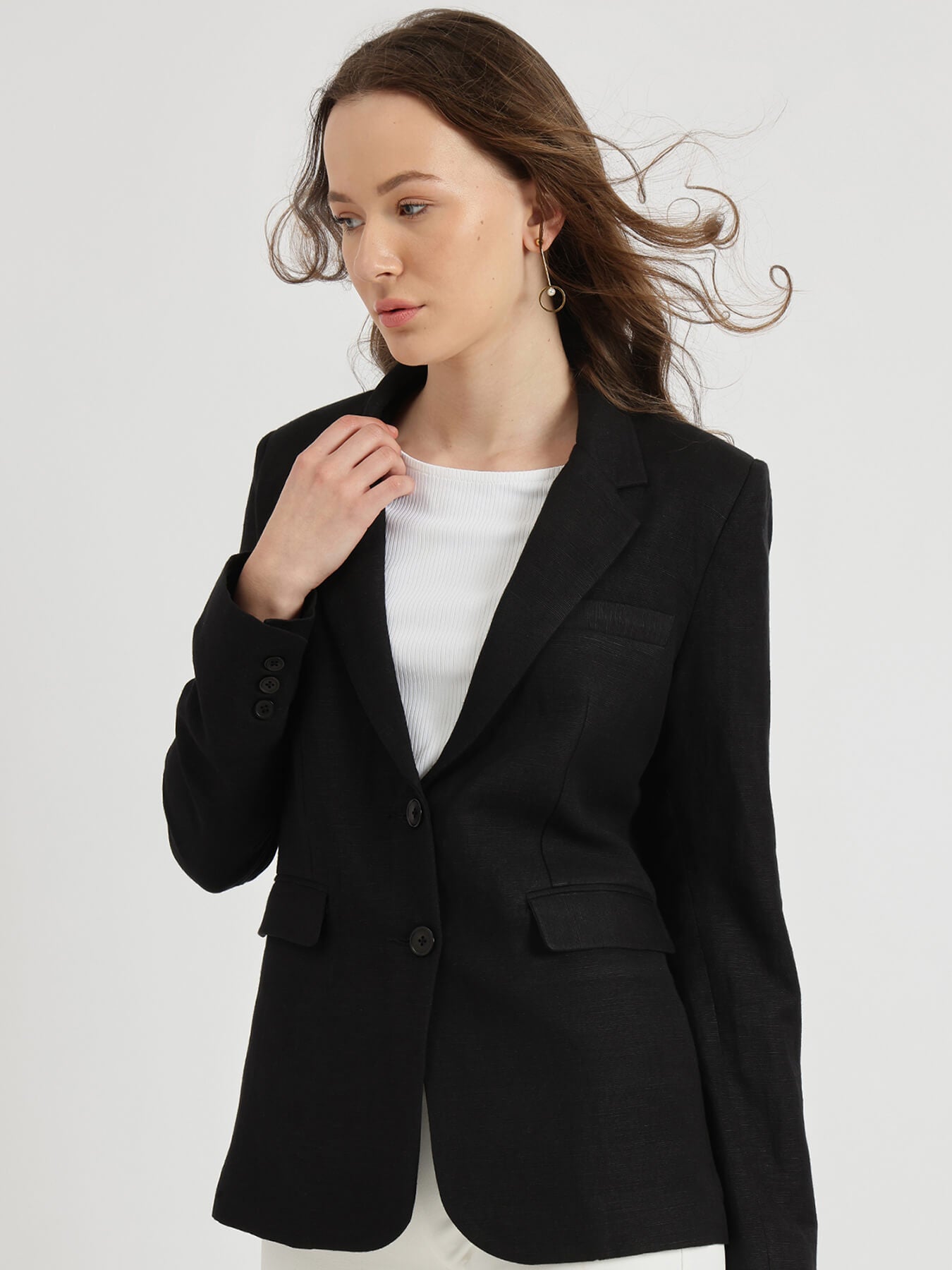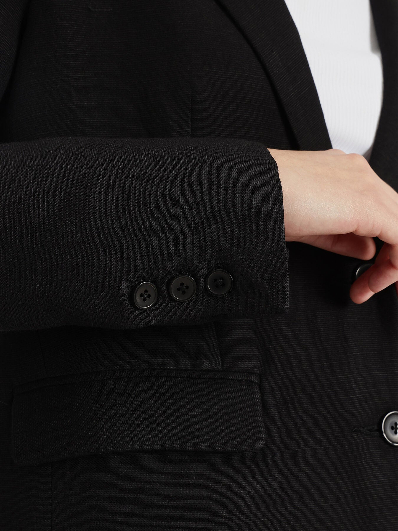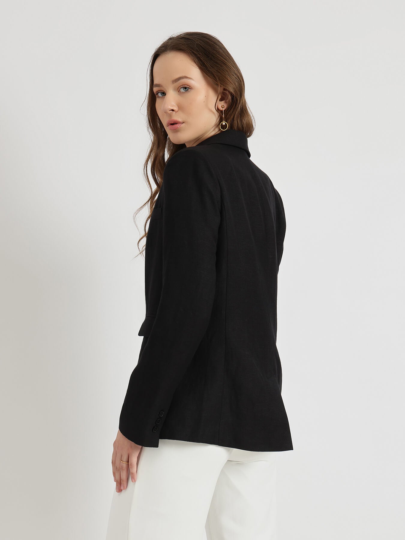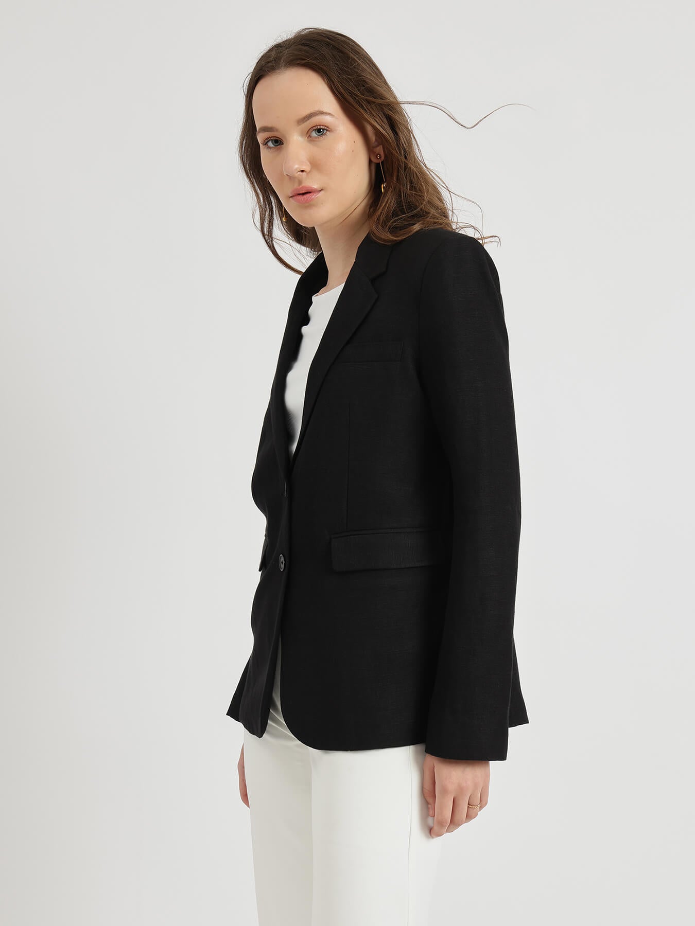 Linen Single Breasted Blazer - Black