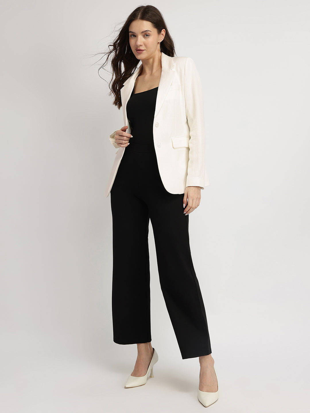 Linen Single Breasted Blazer - Off White