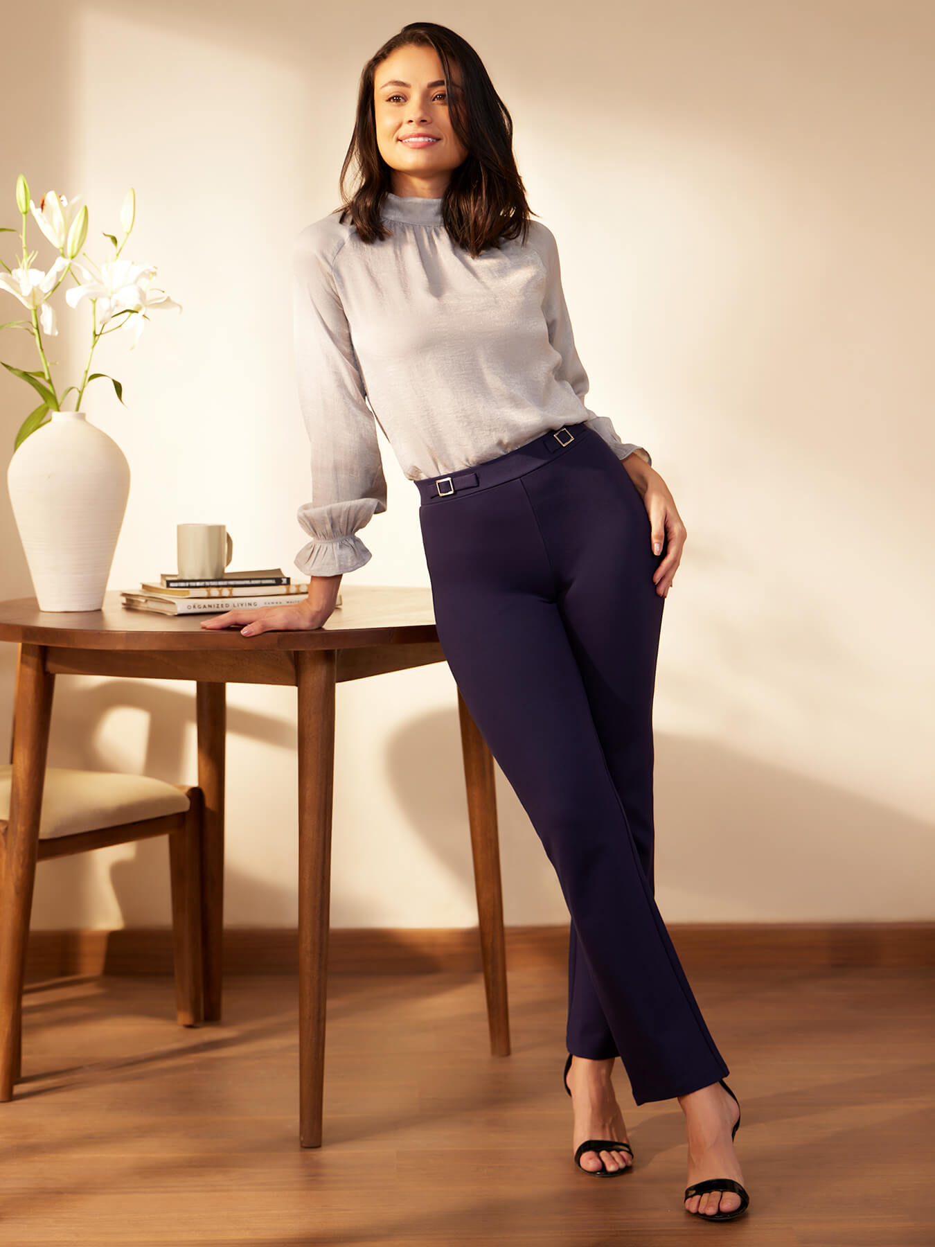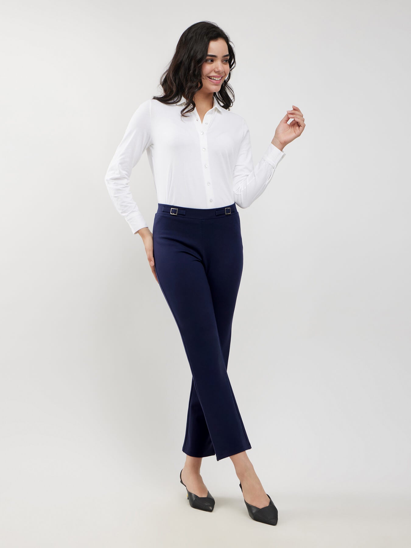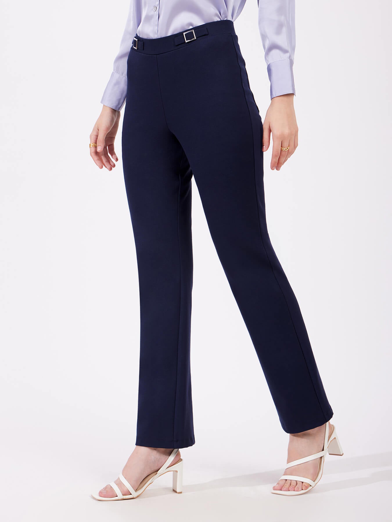 LivIn Bootcut Pants With Buckle - Navy Blue
