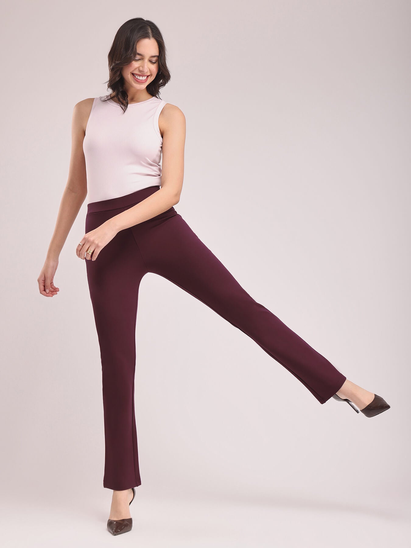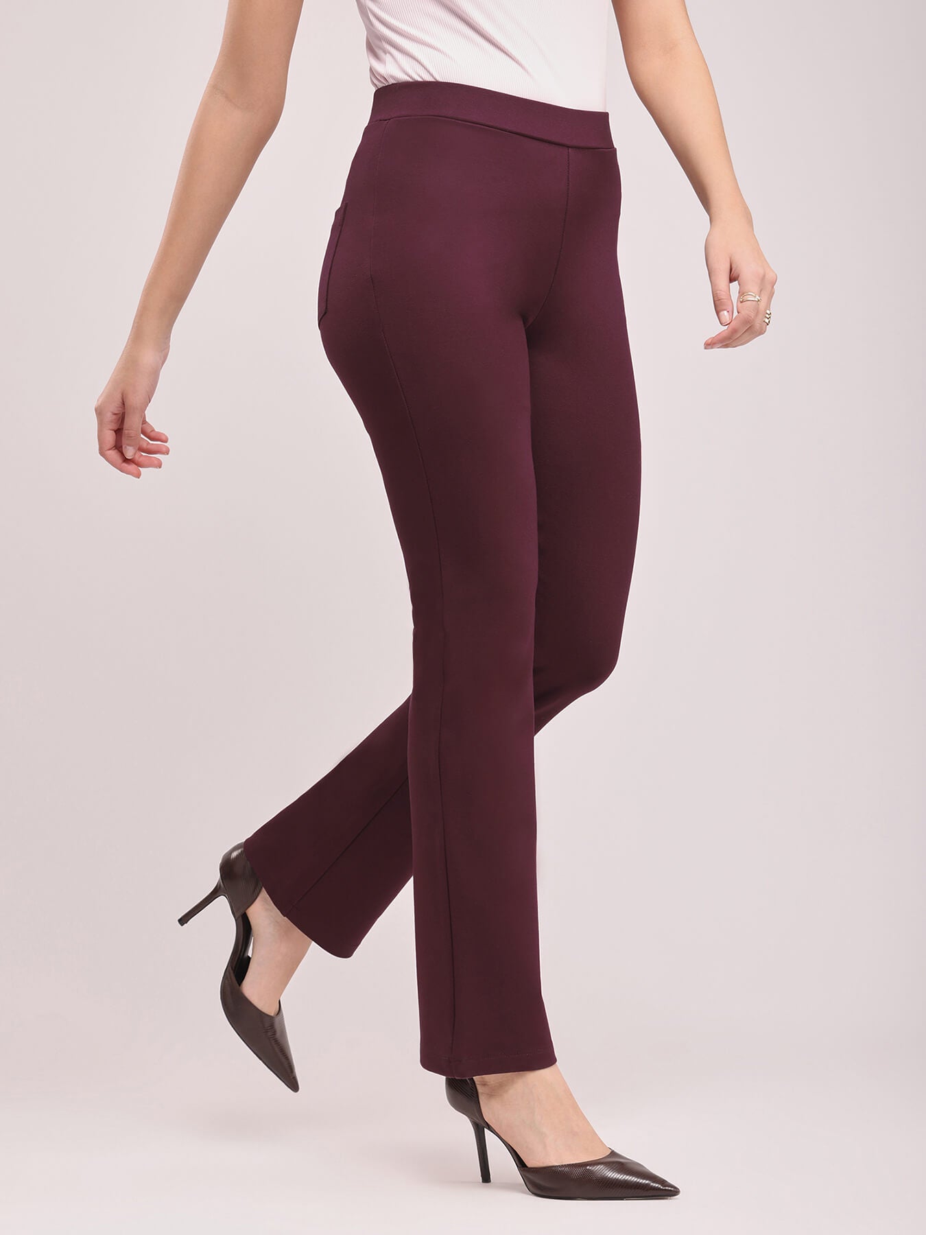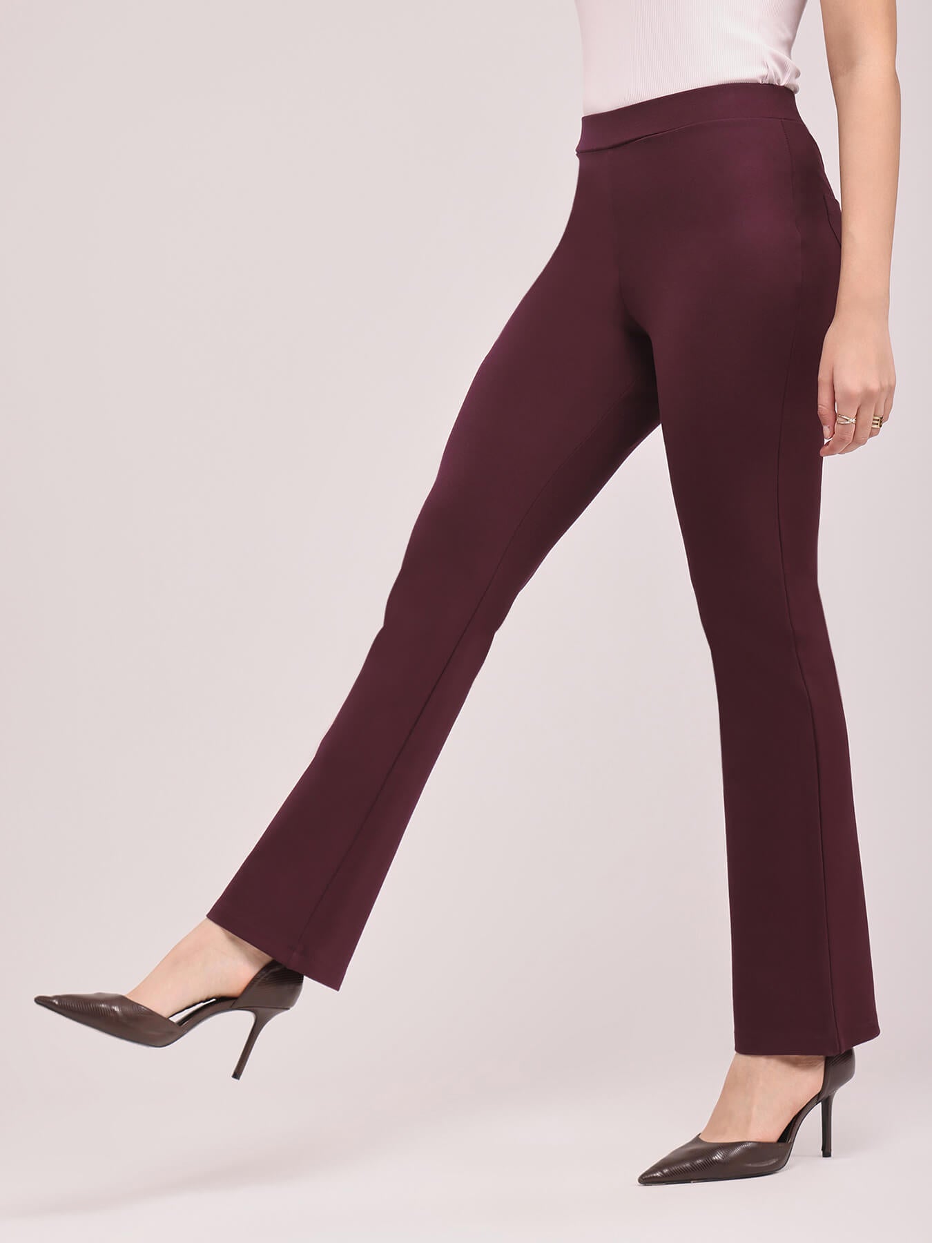 - Bootcut - Mid rise - Nylon Rayon Knit - Regular length - Non-transparent - Breathable - Extra stretch - 2 back pockets