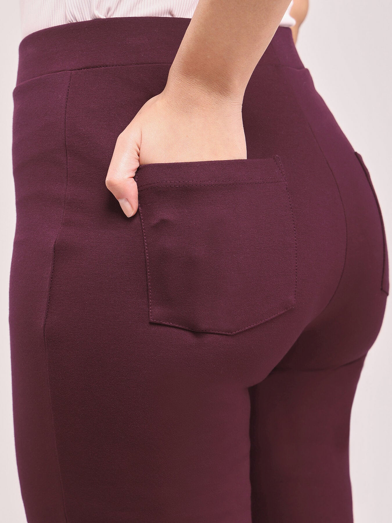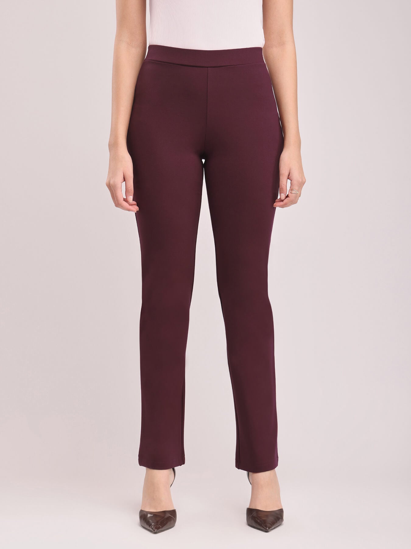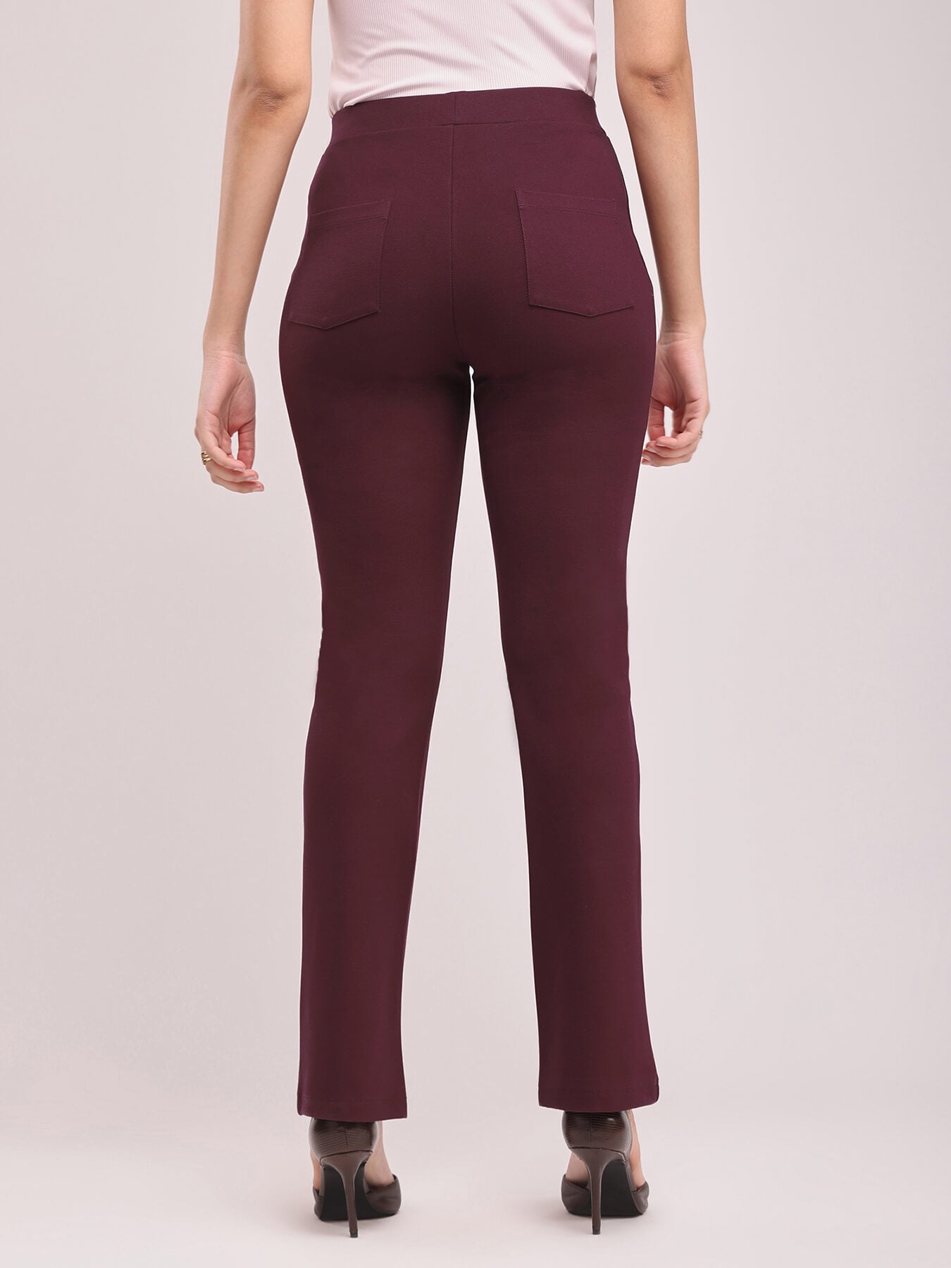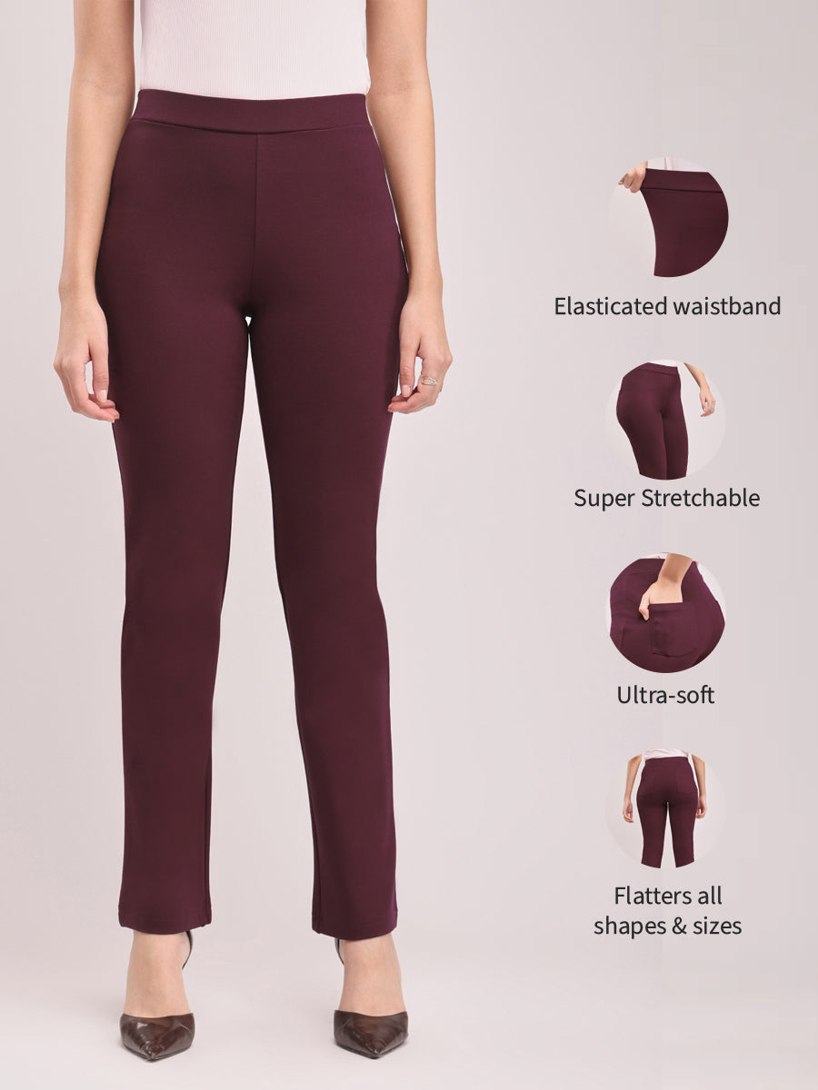 - Bootcut - Mid rise - Nylon Rayon Knit - Regular length - Non-transparent - Breathable - Extra stretch - 2 back pockets