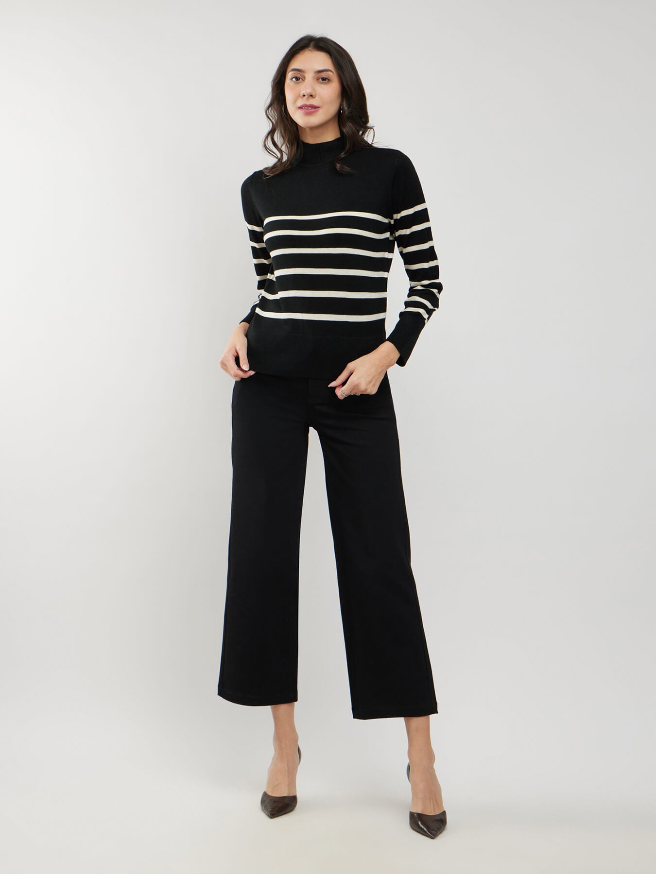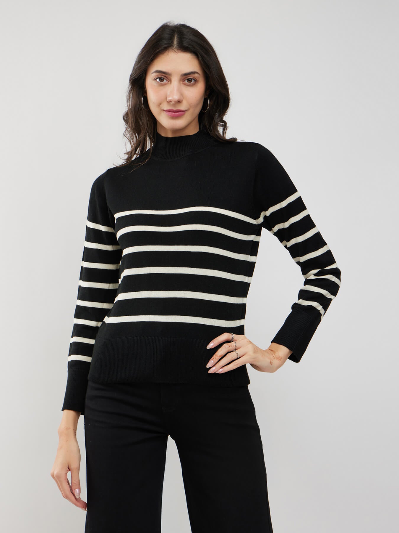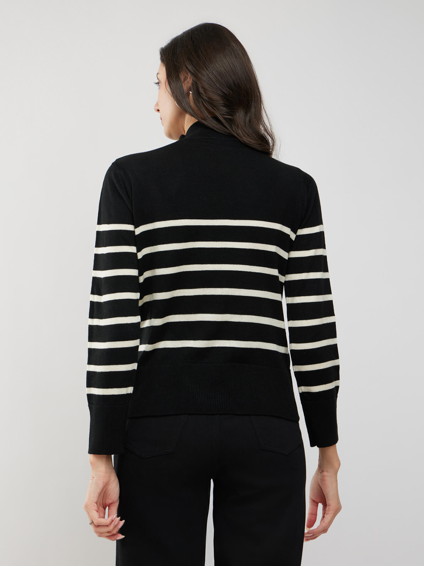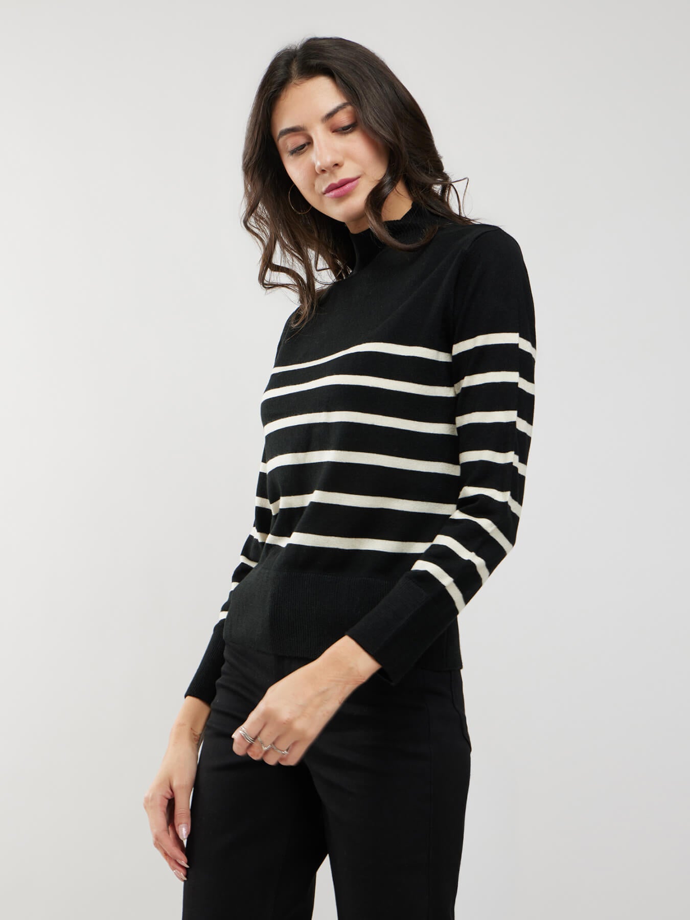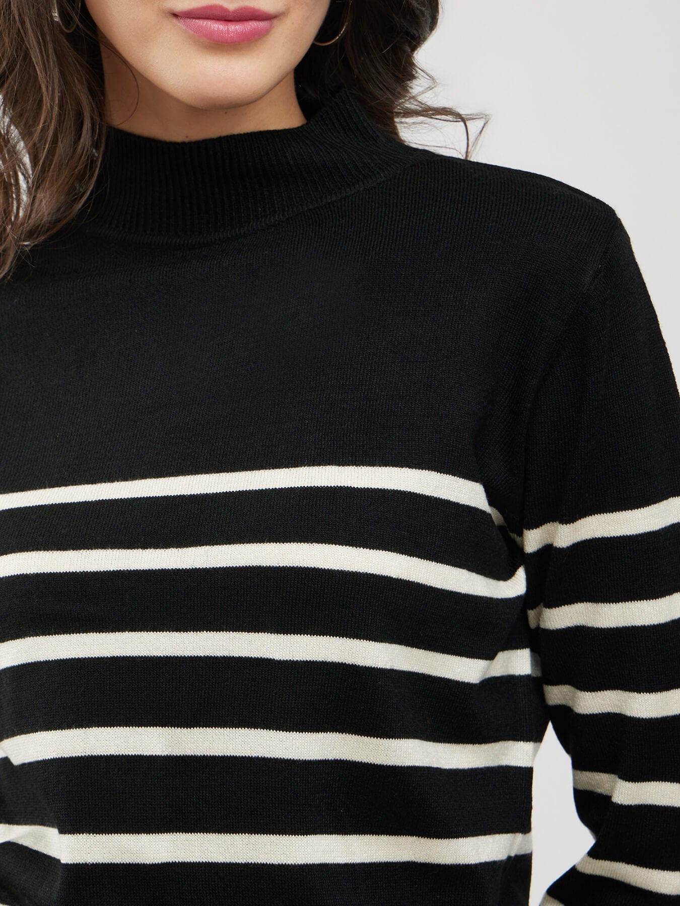 LivSoft High Neck Striped Sweater - Black