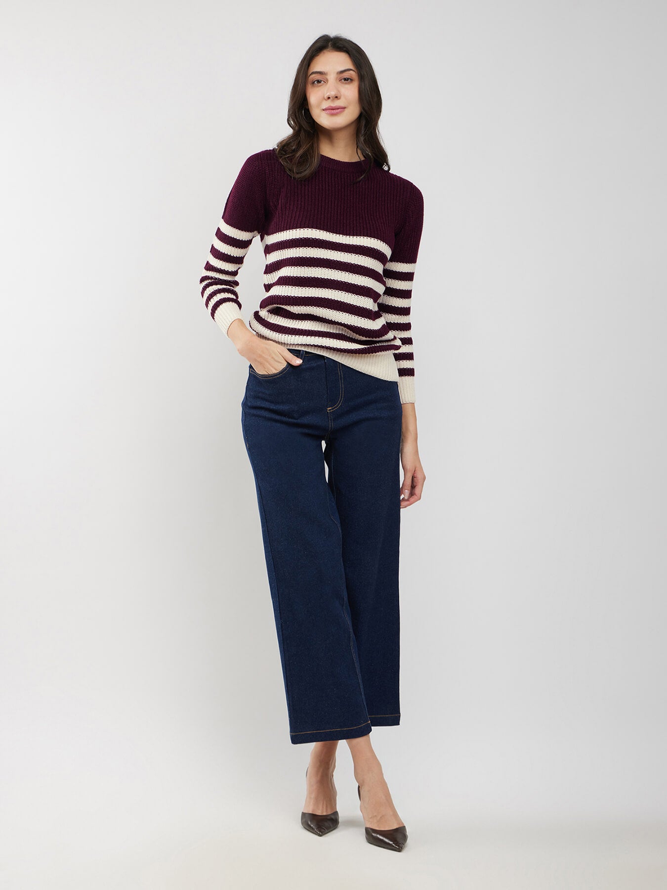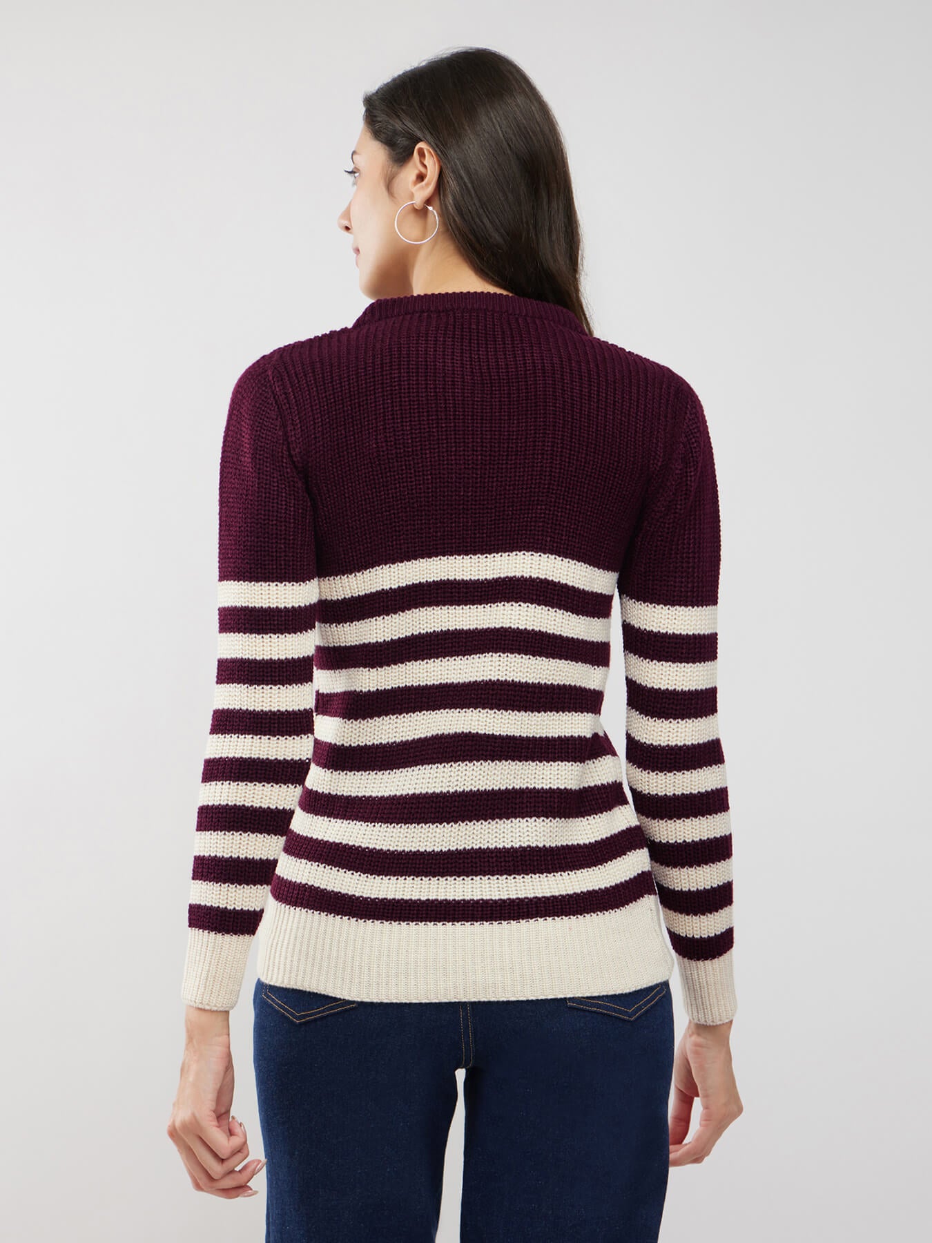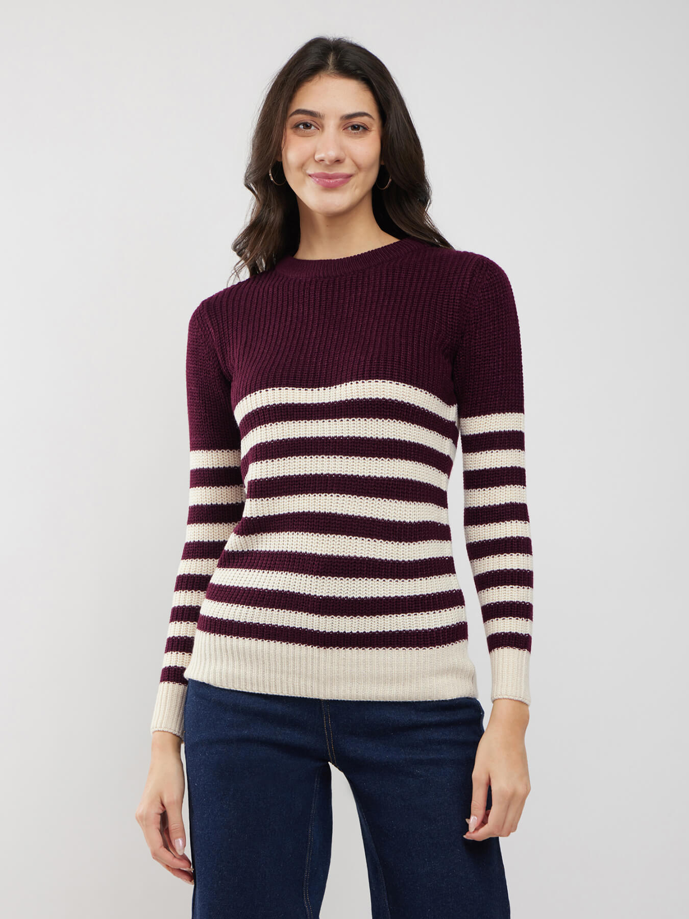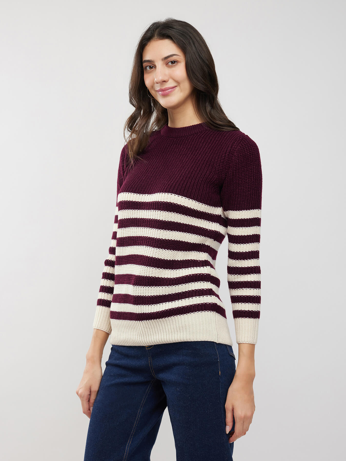 LivSoft Textured Knit Sweater - Burgundy And Off White
