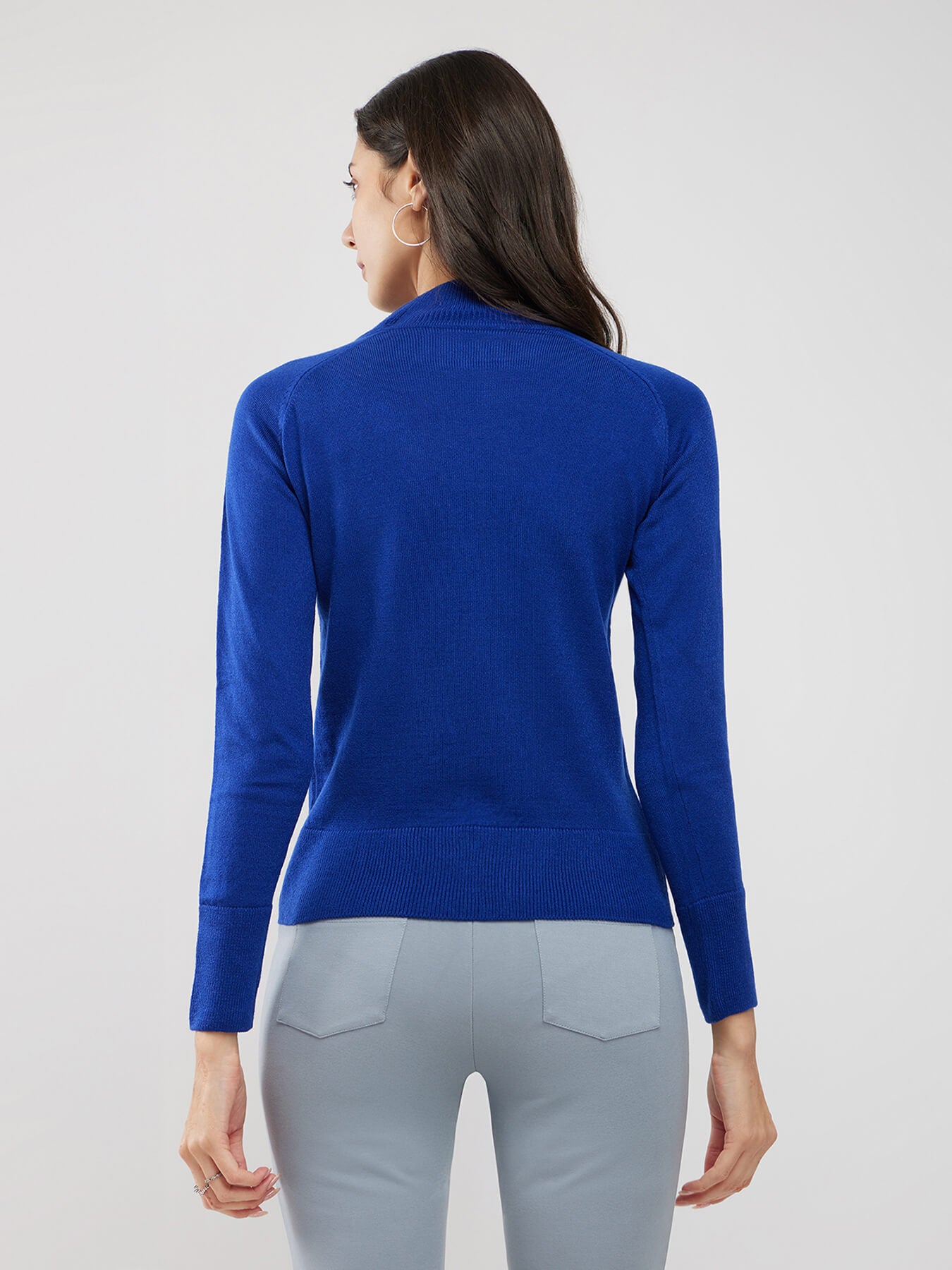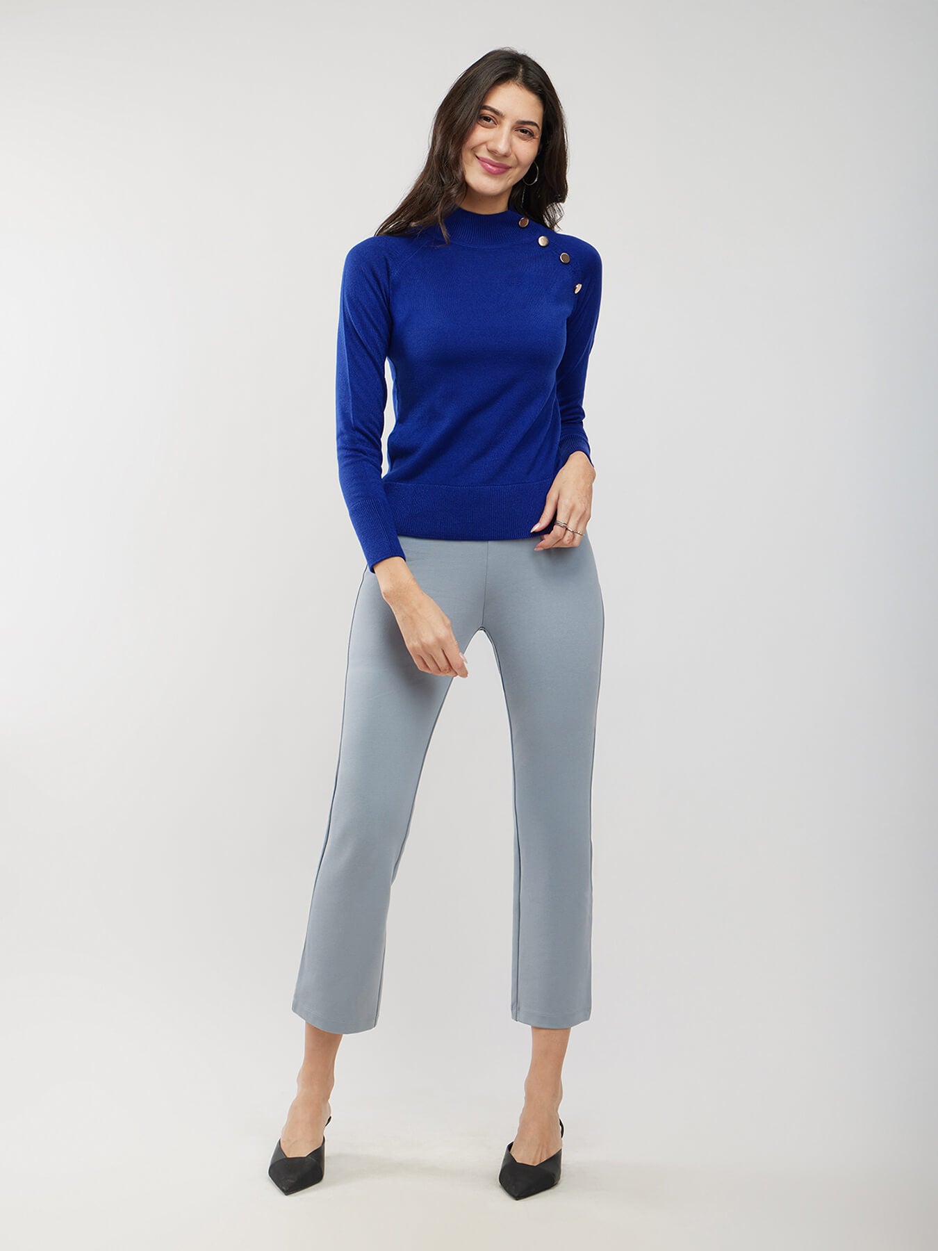 LivSoft Button Detail Crew Neck Sweater - Blue