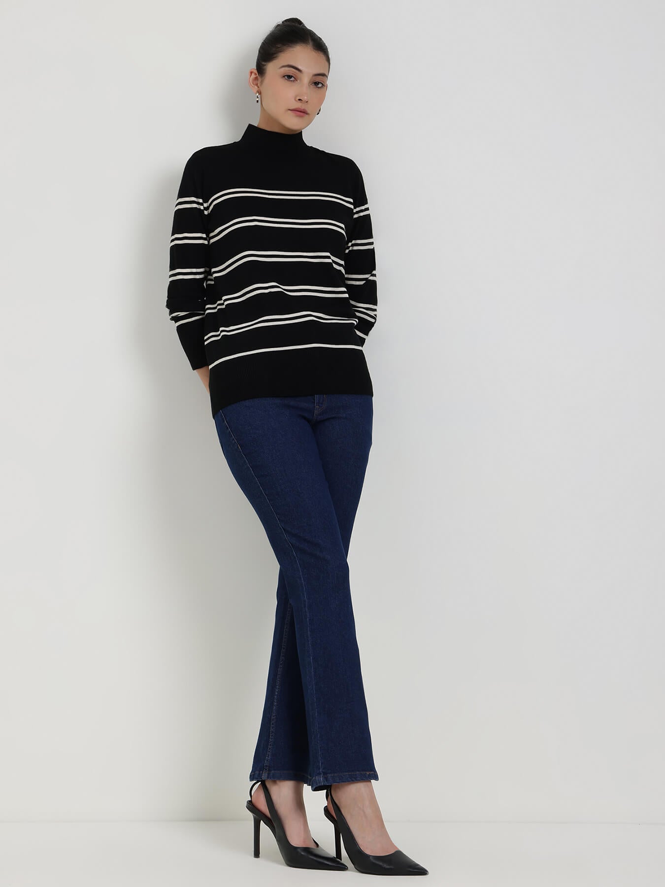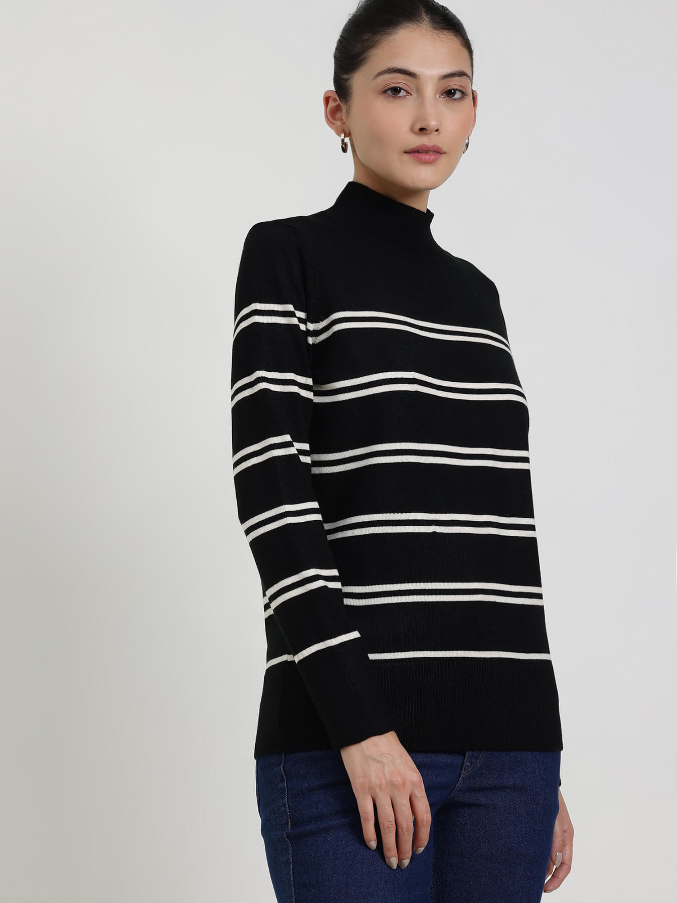 LivSoft Striped High Neck Sweater - Black