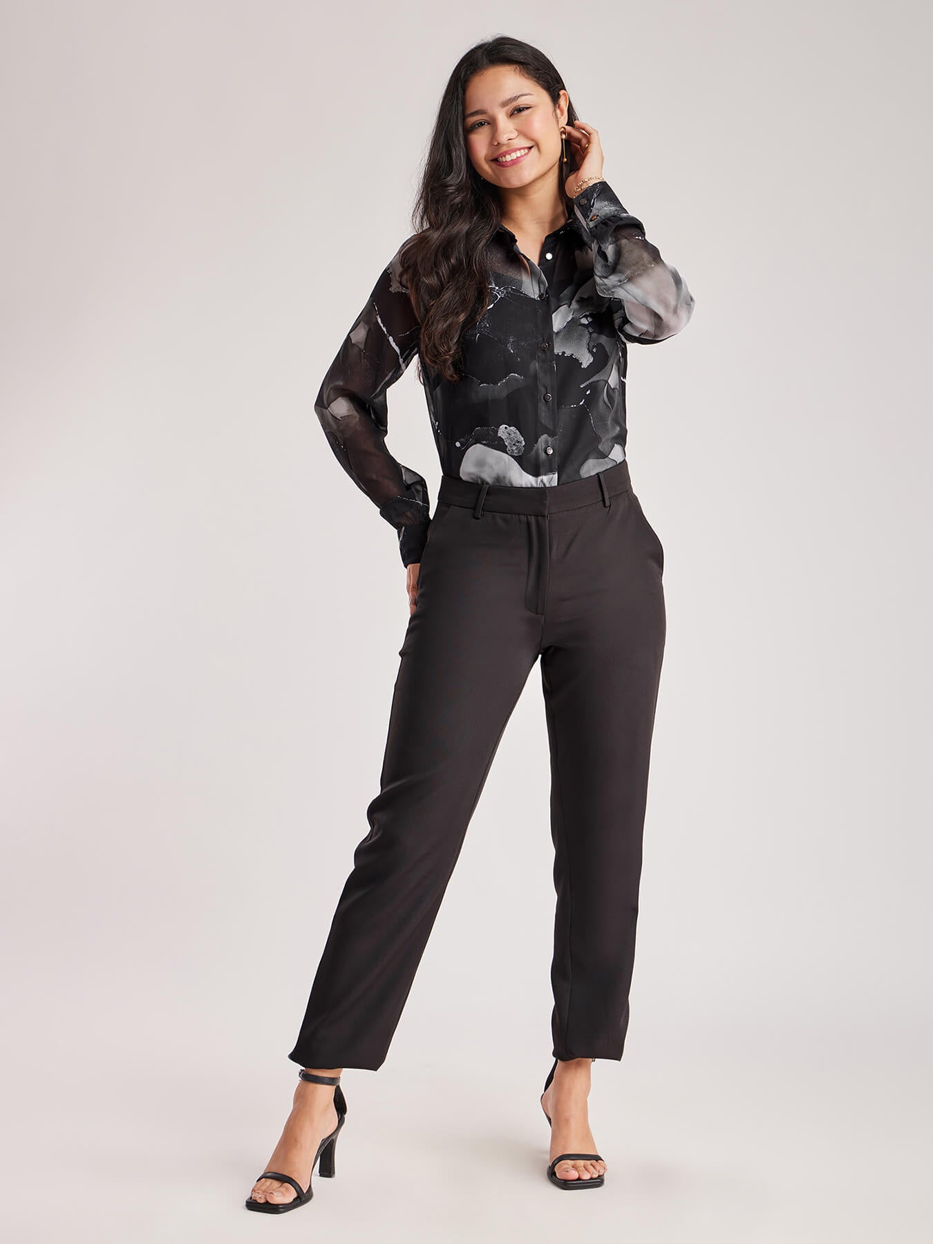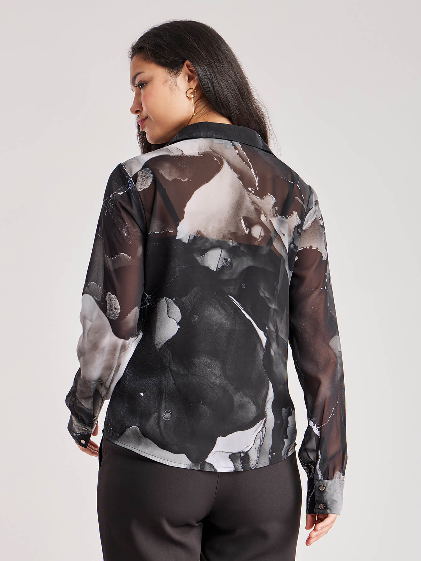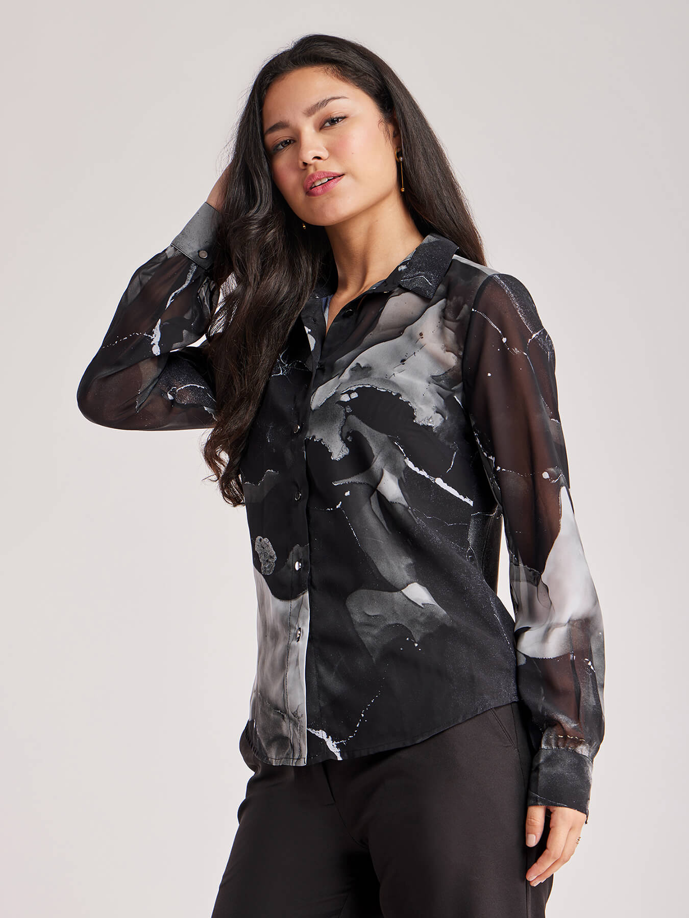 Marble Print Full Sleeves Shirt - Black And White