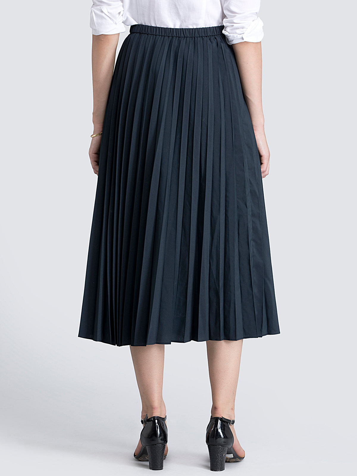 Pleated Flared Midi Skirt - Black