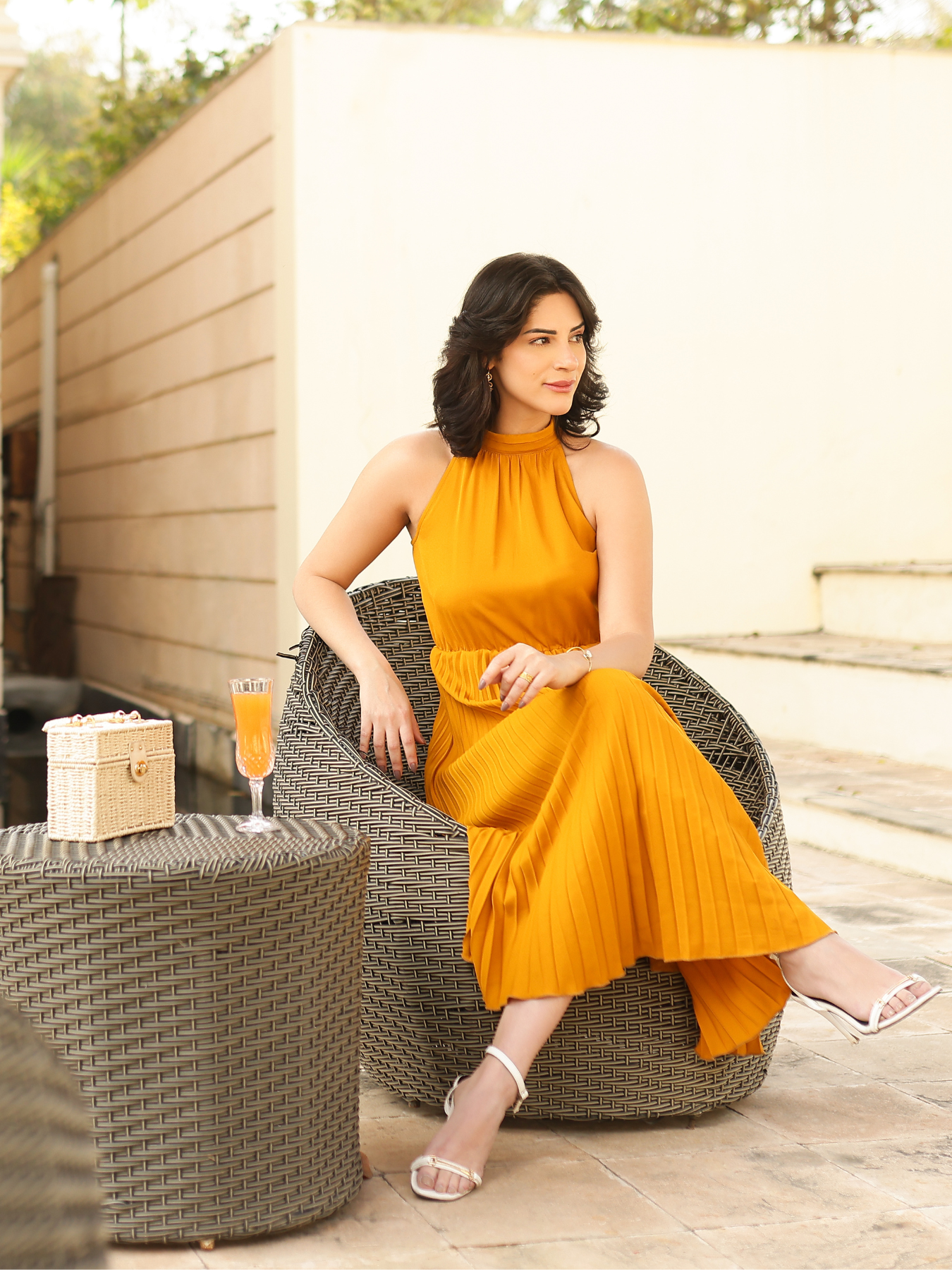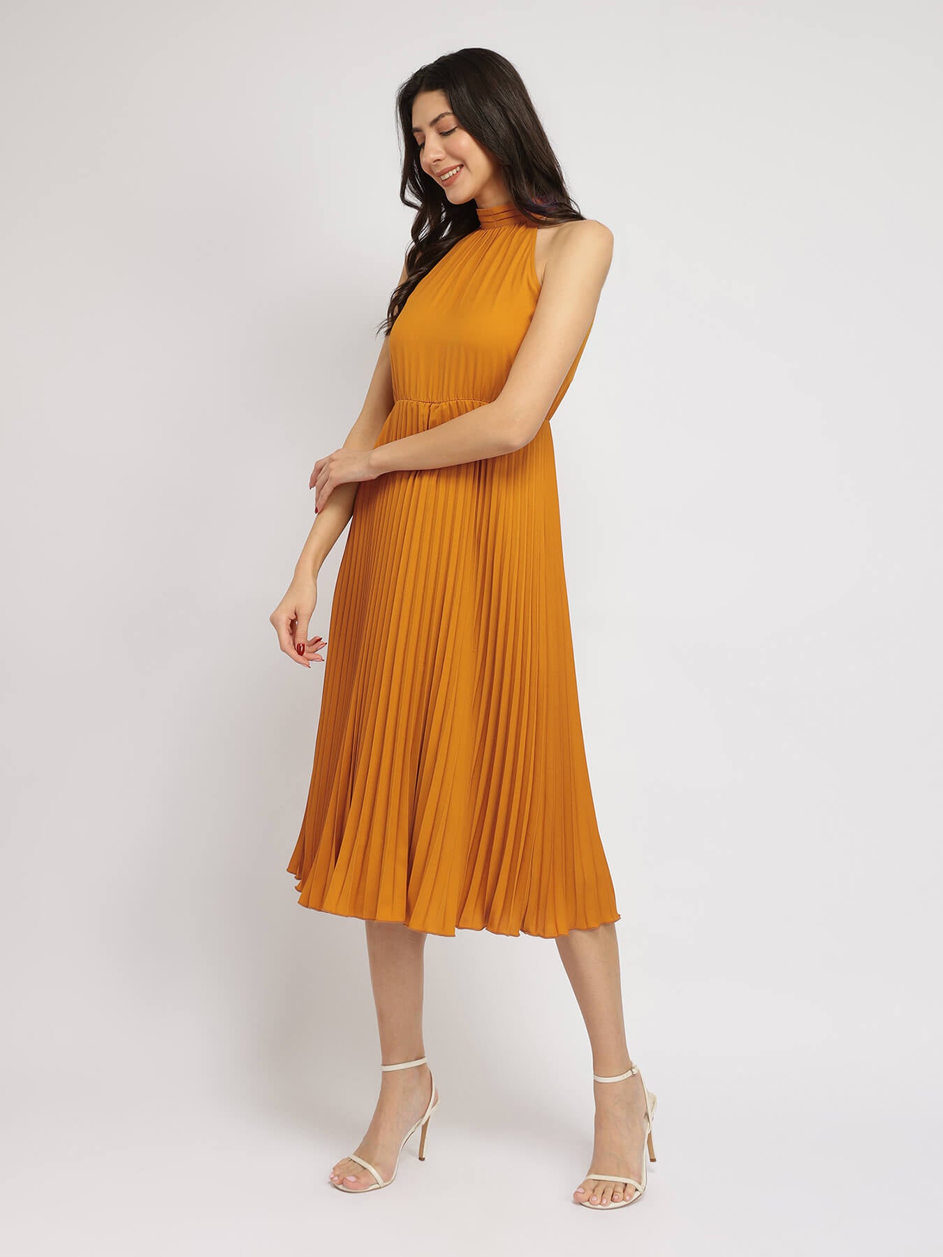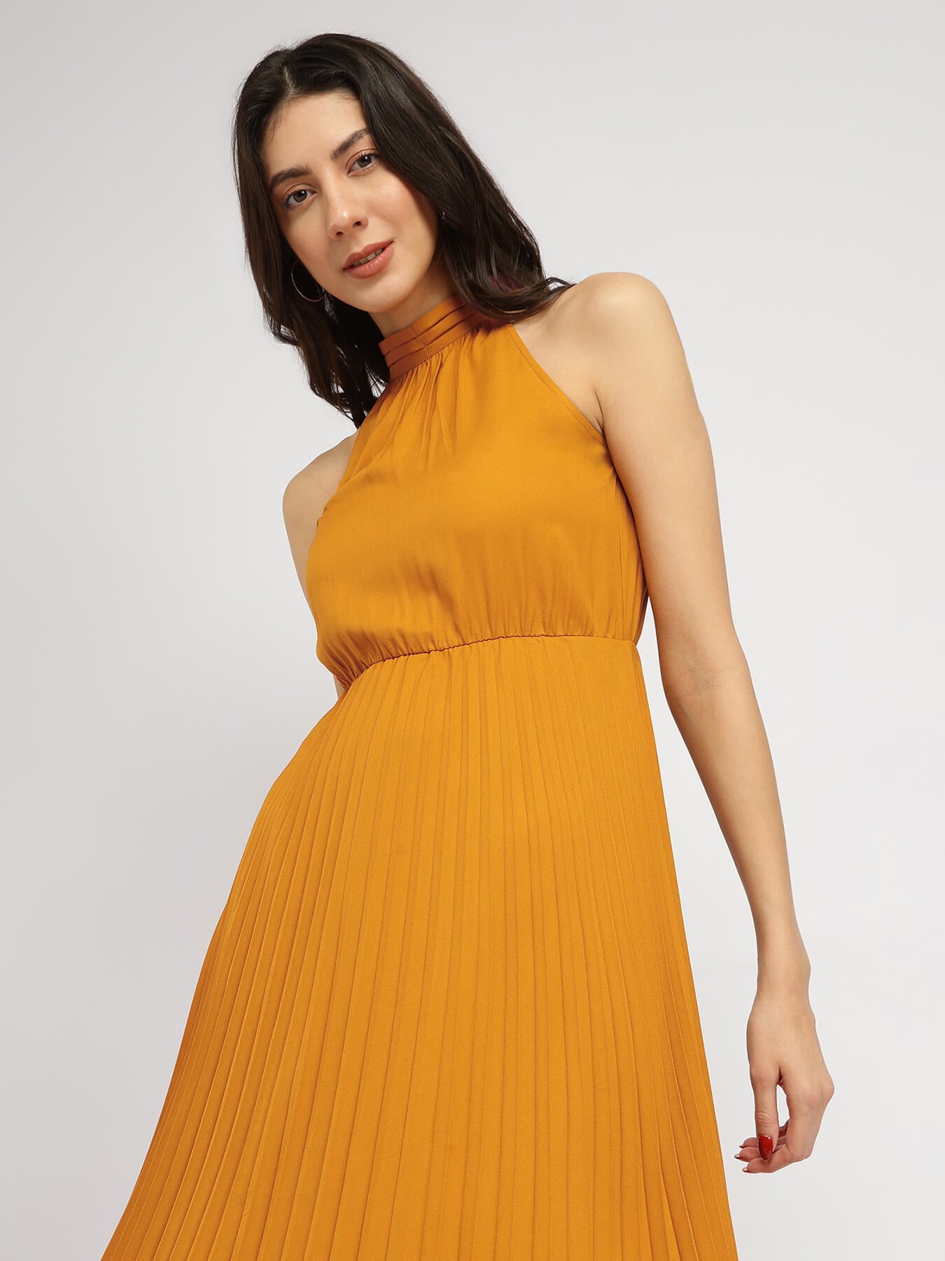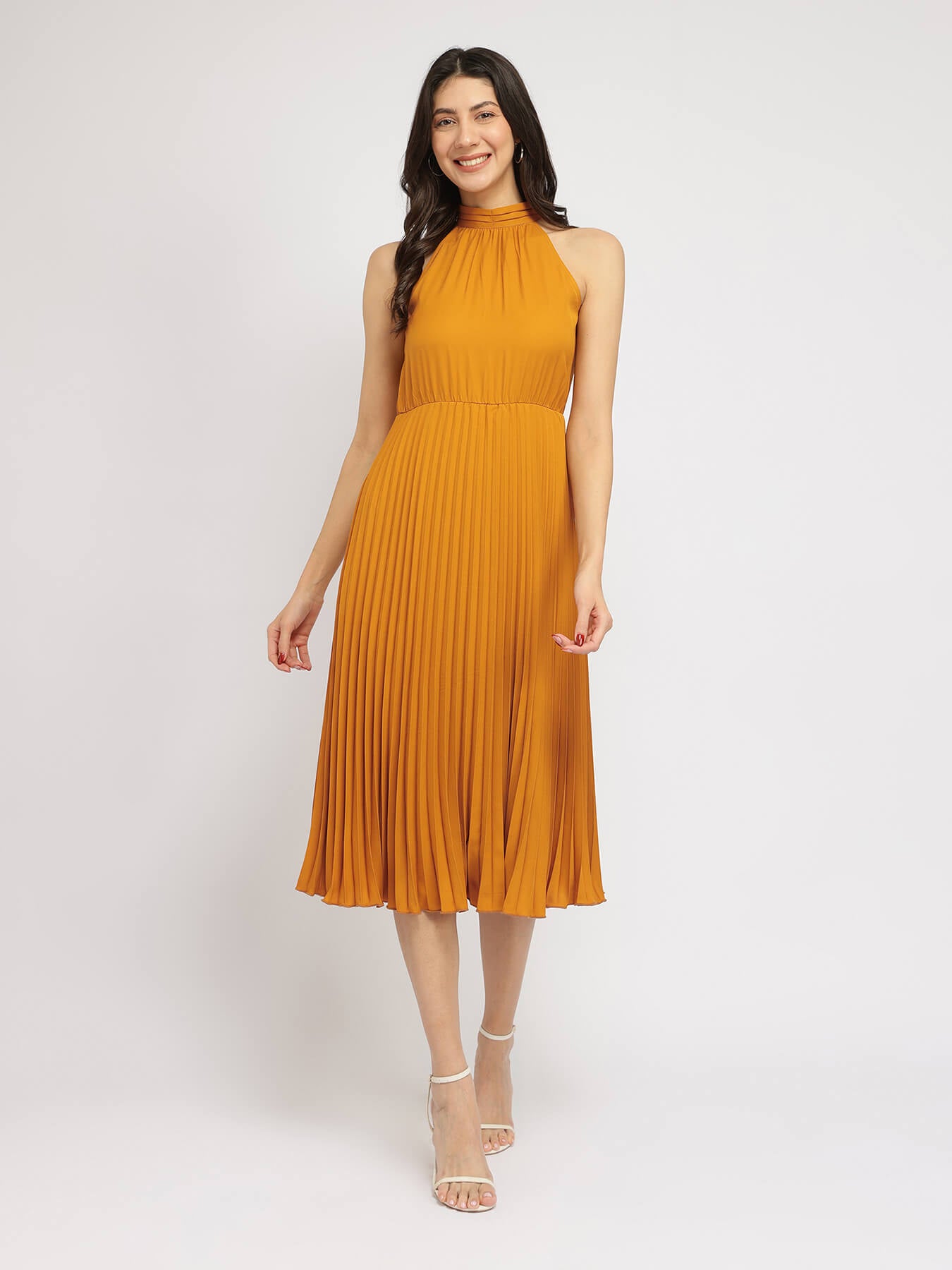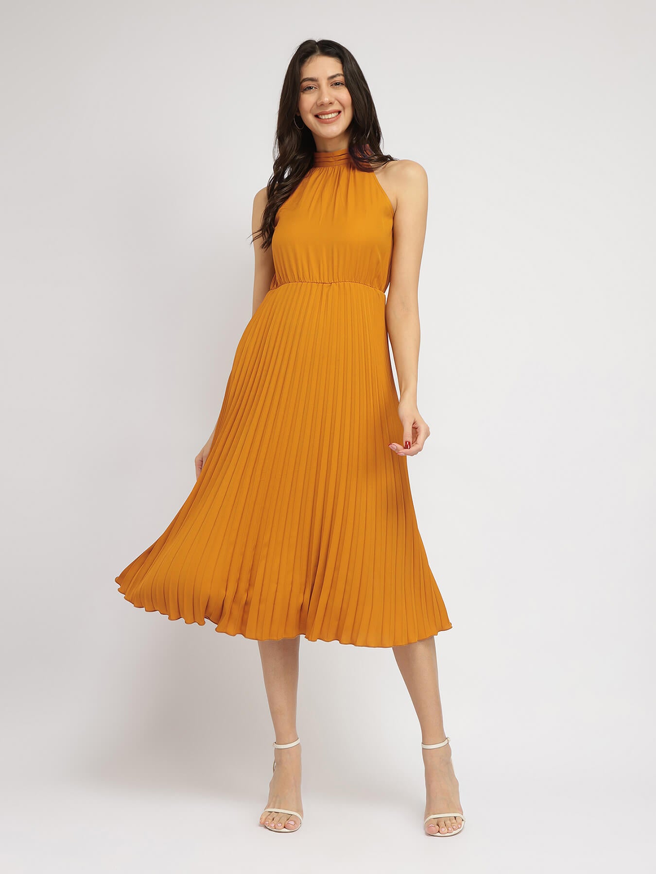 1.Key Detail -Midi dress with a halter neck and back key-hole opening, gathered torso,pleated bottom with all-round elasticated waist. Bottom Lined.