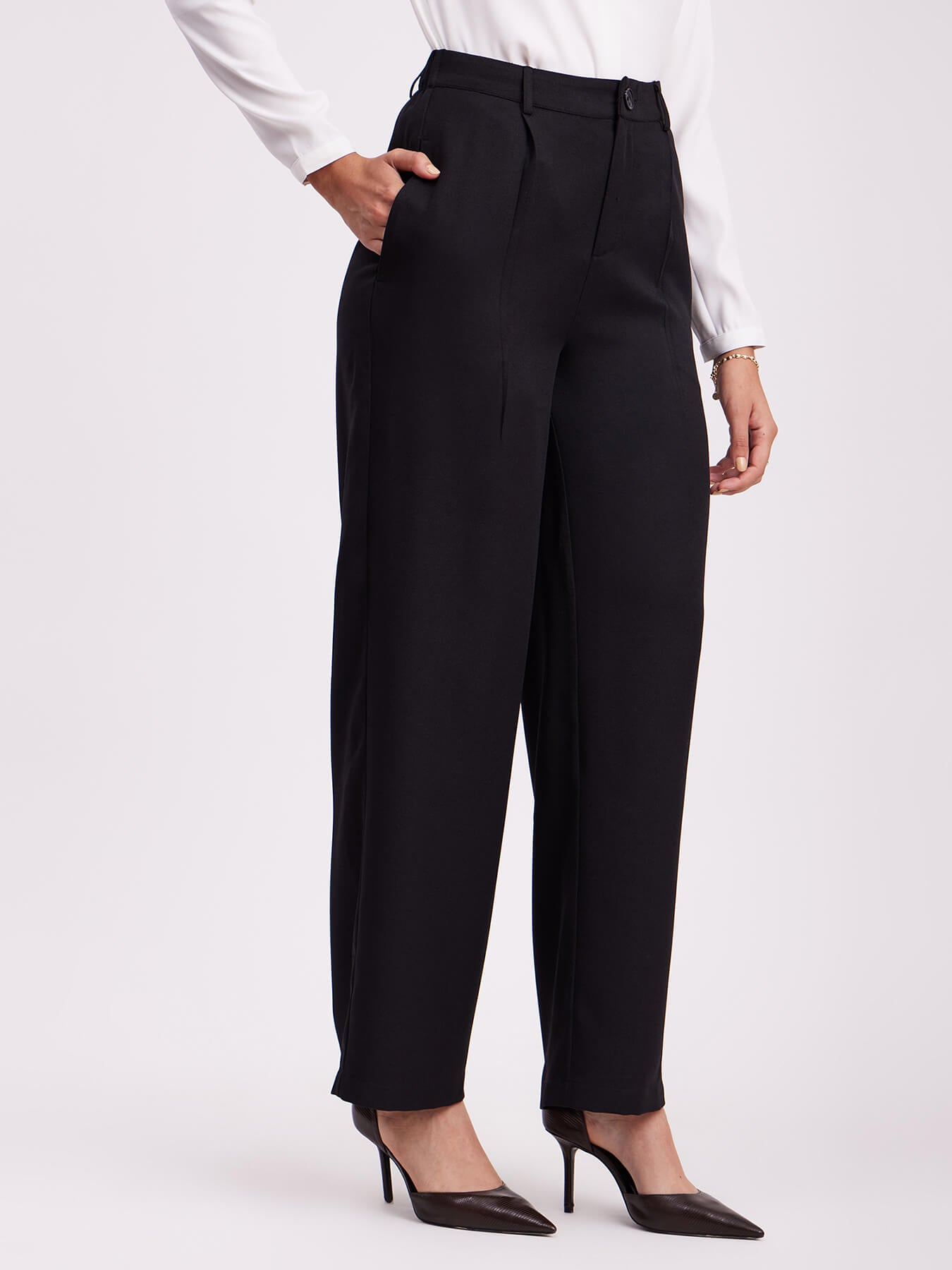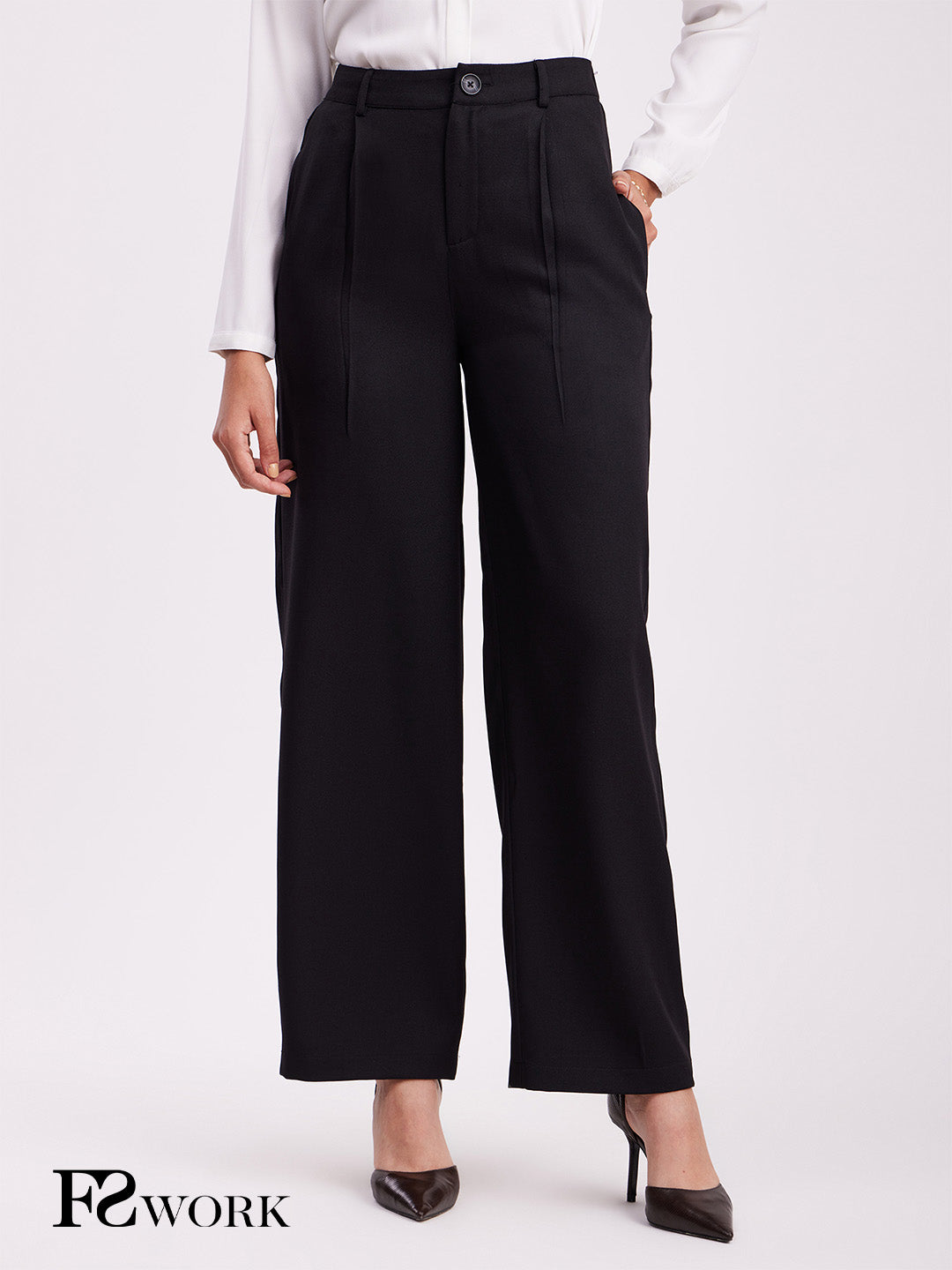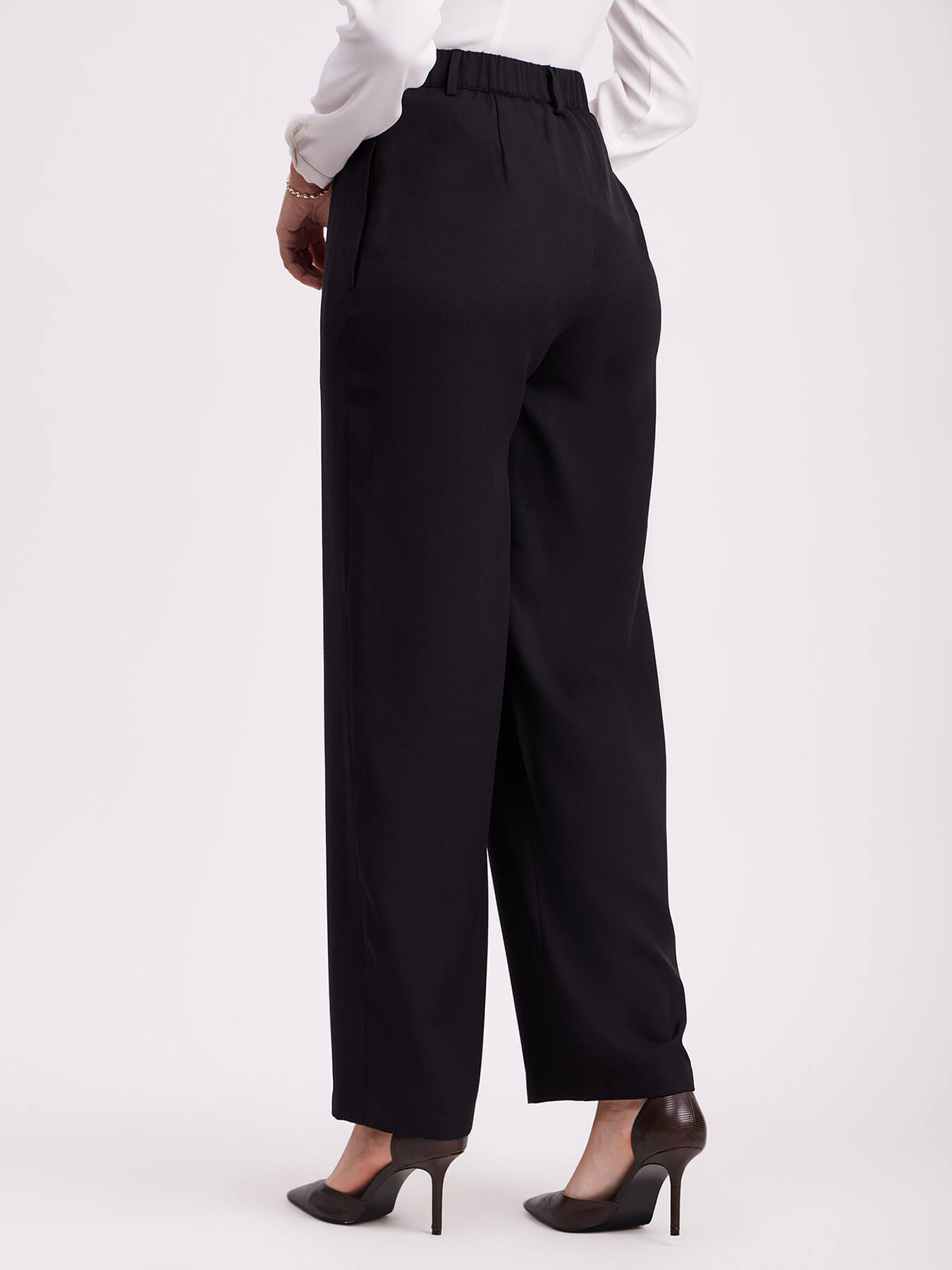 Pleated Wide Leg Trousers - Black