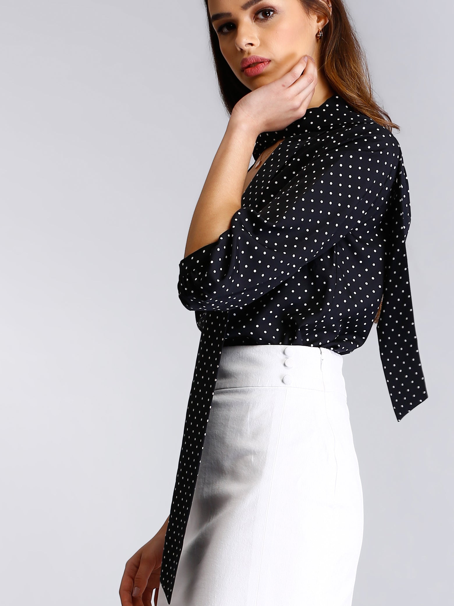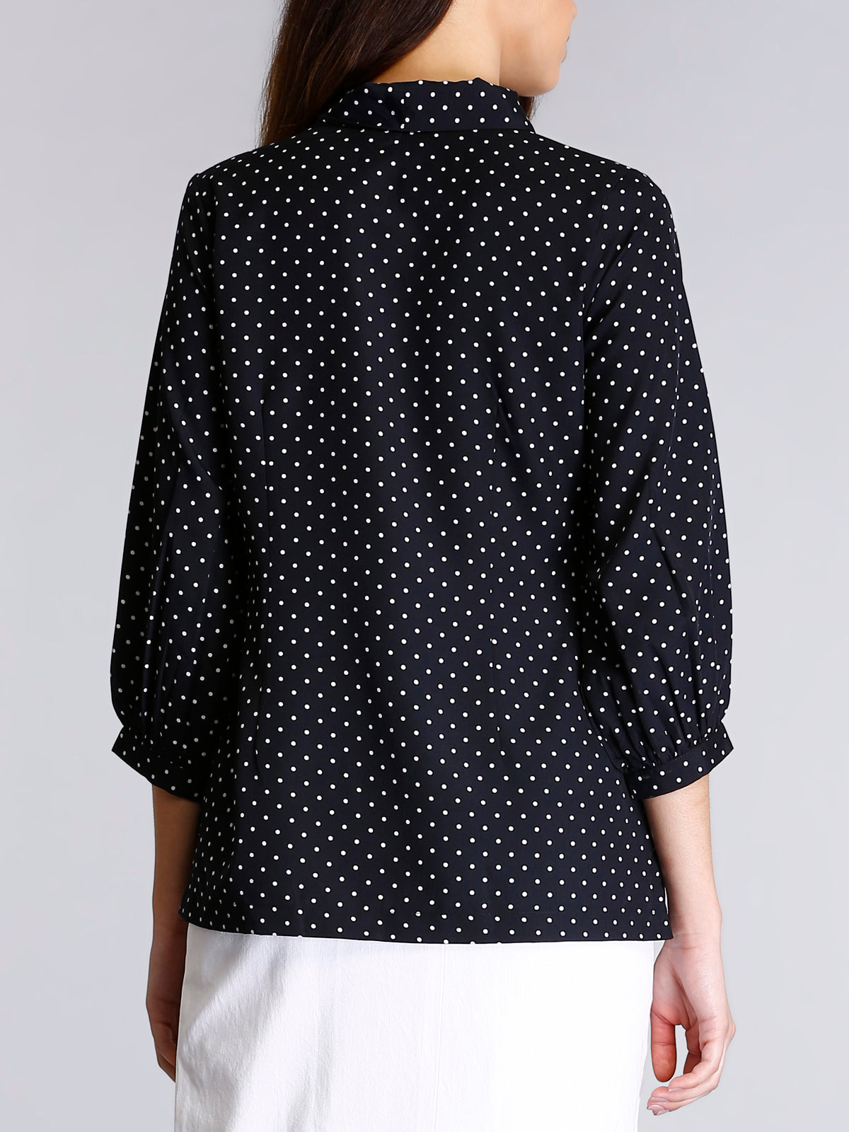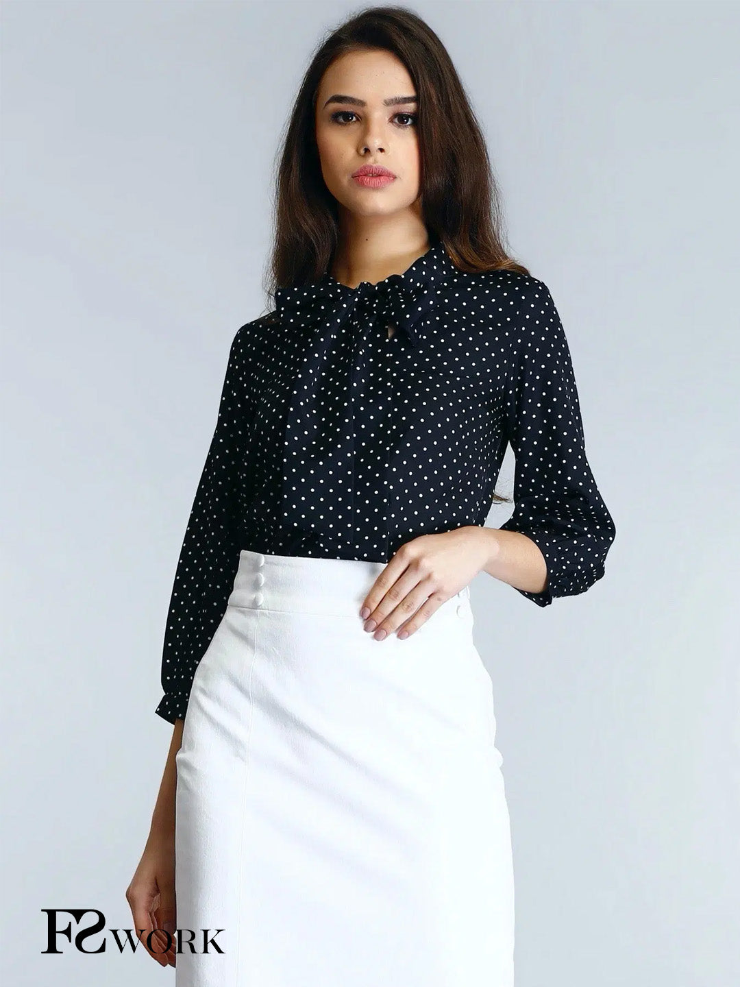 Make a strong first impression with this lovely monochrome top. It has a pussy bow neckline, ¾ sleeves with delicate gathers and slits for easy movement. Made from fine Poly Crepe, it's immensely soft and anti-wrinkle with a flawless drape.