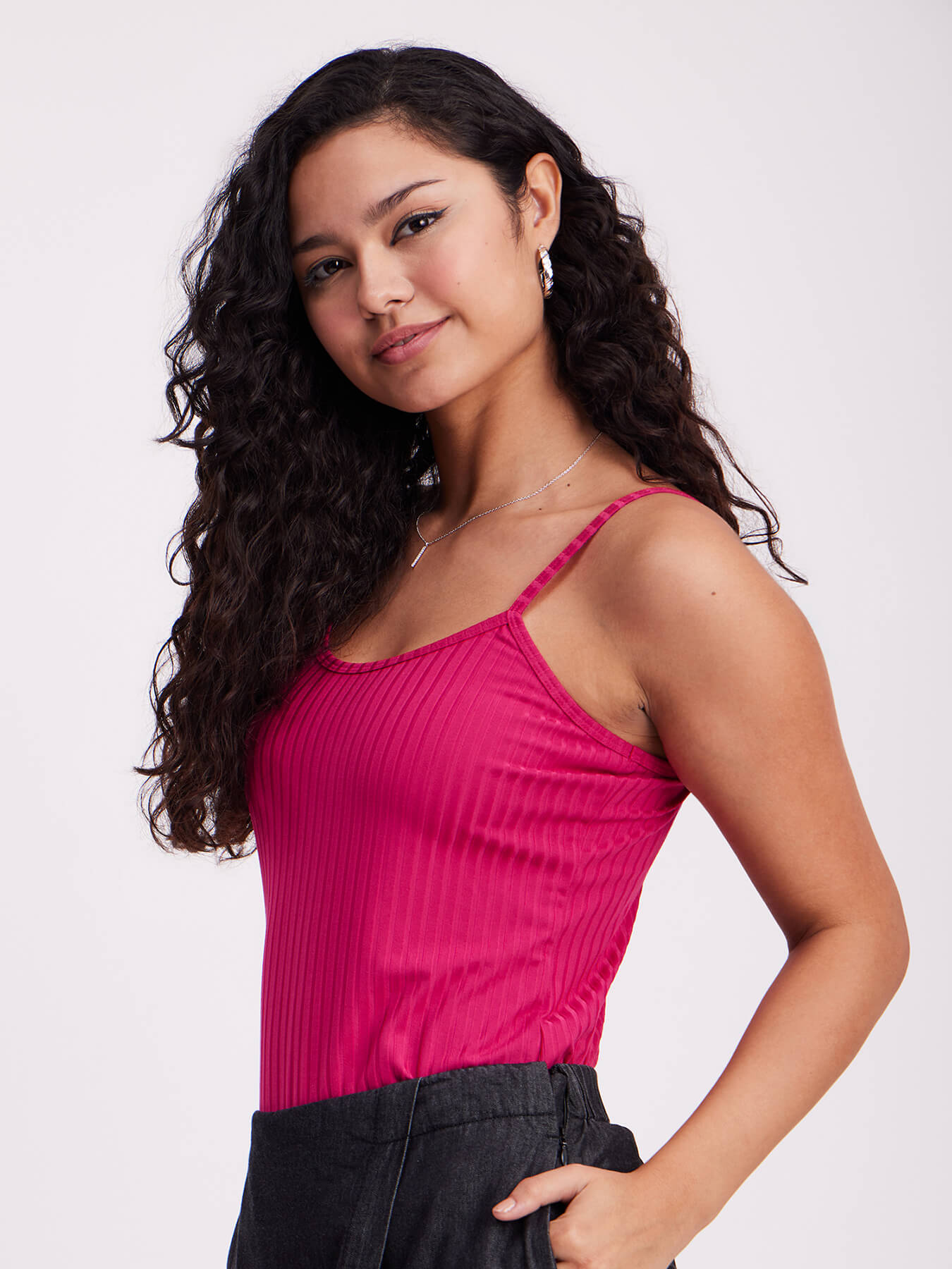Rib Knit Cami Top - Fuchsia