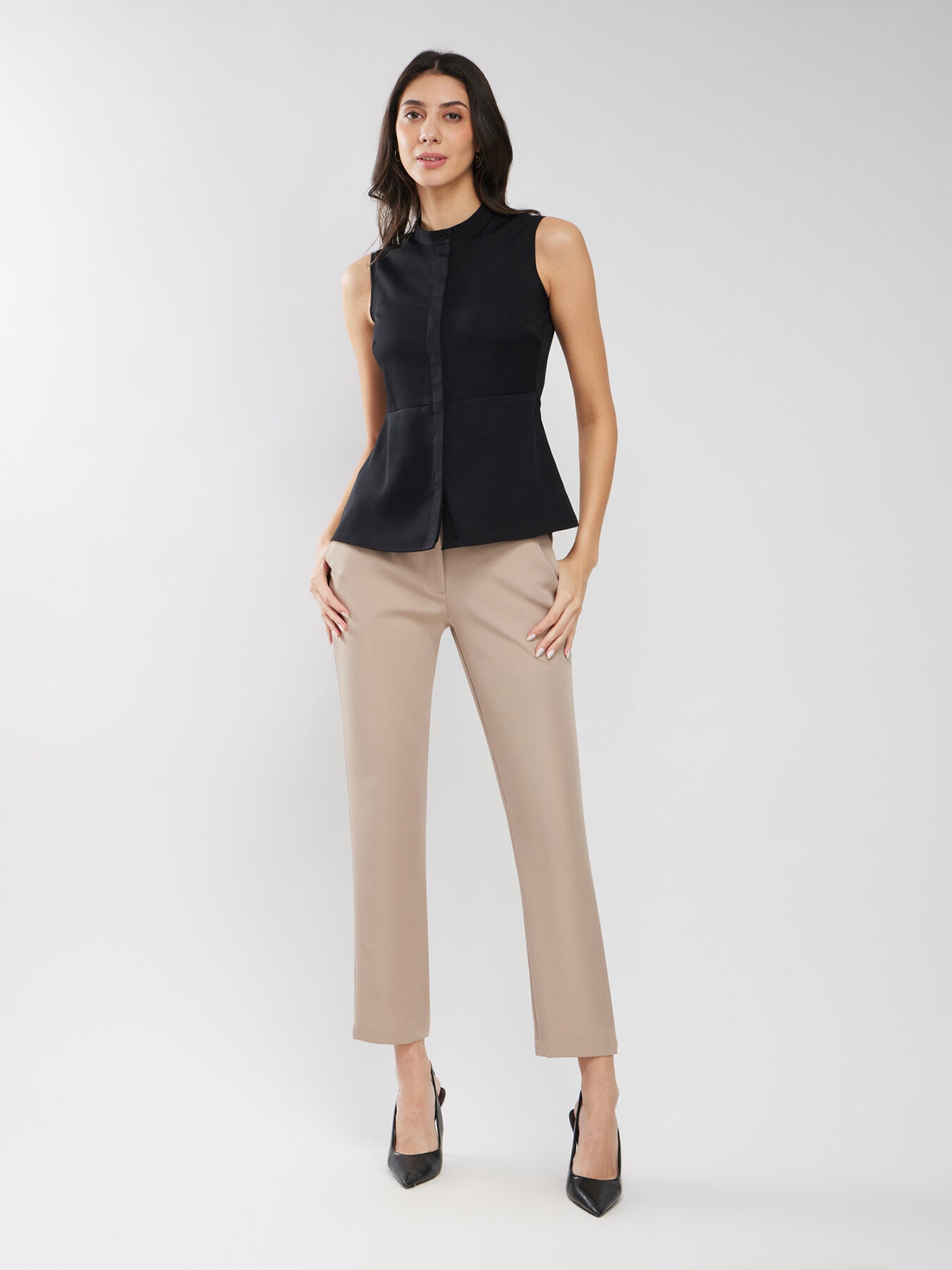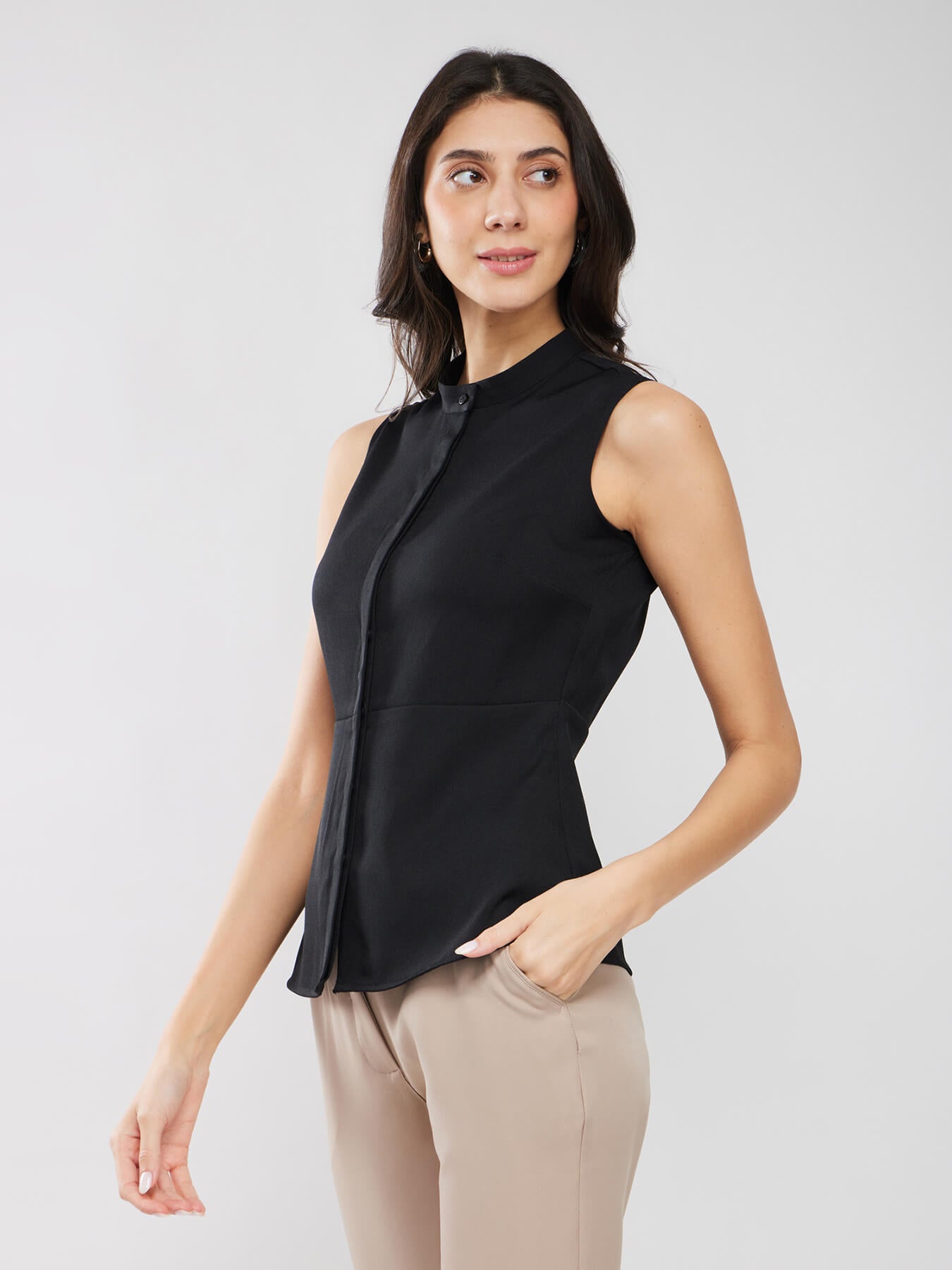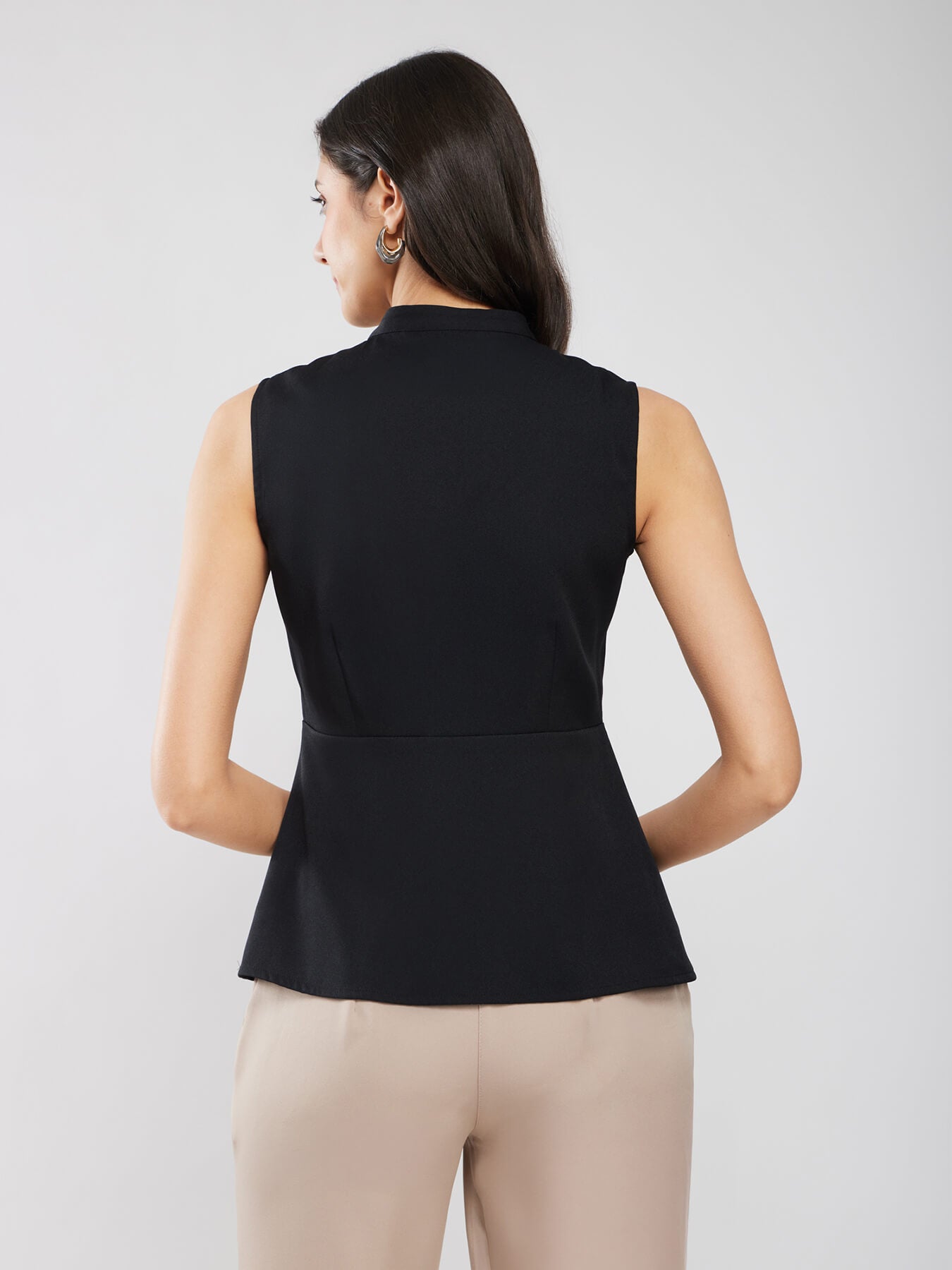 Round Neck Peplum Shirt - Black