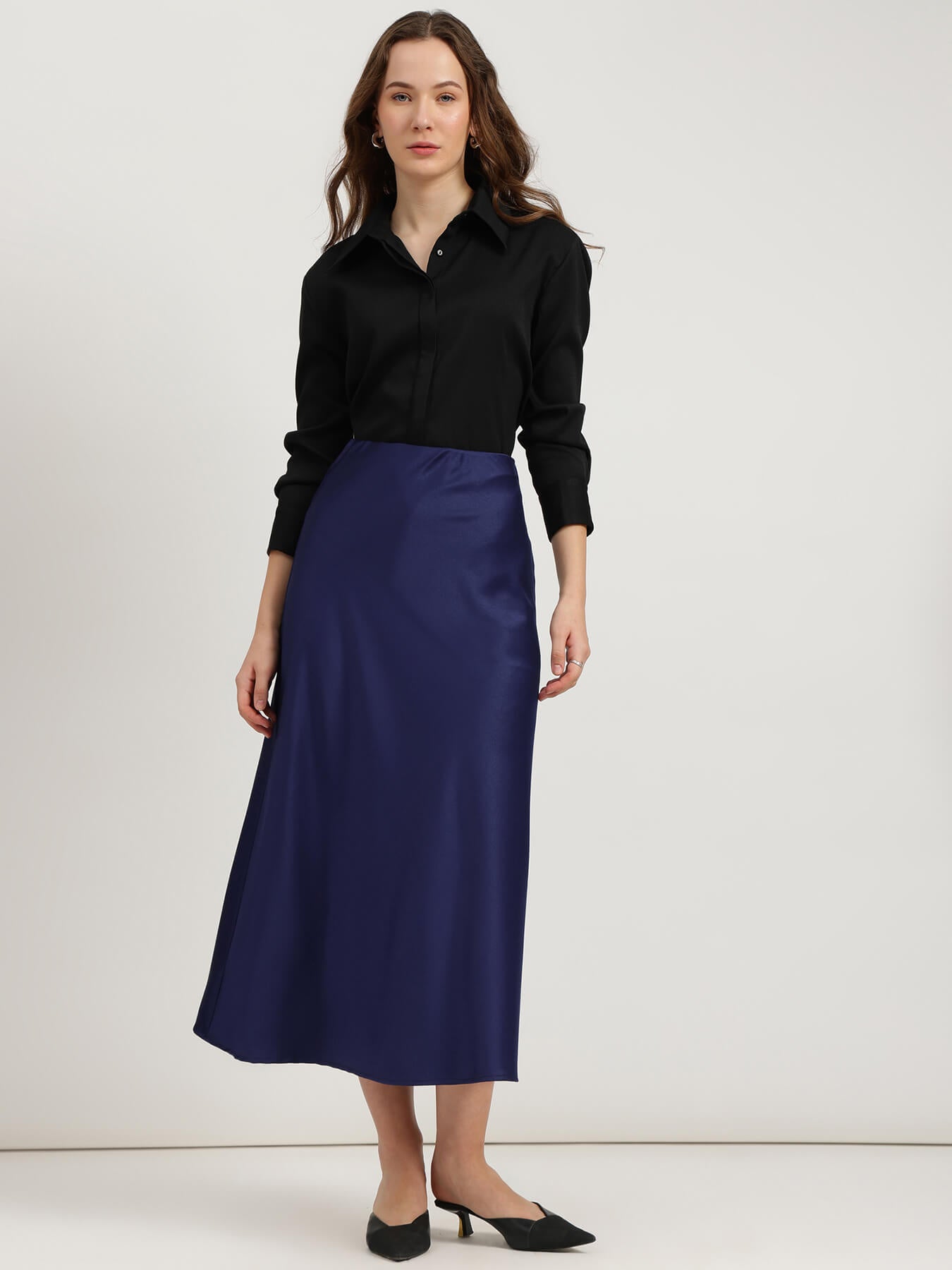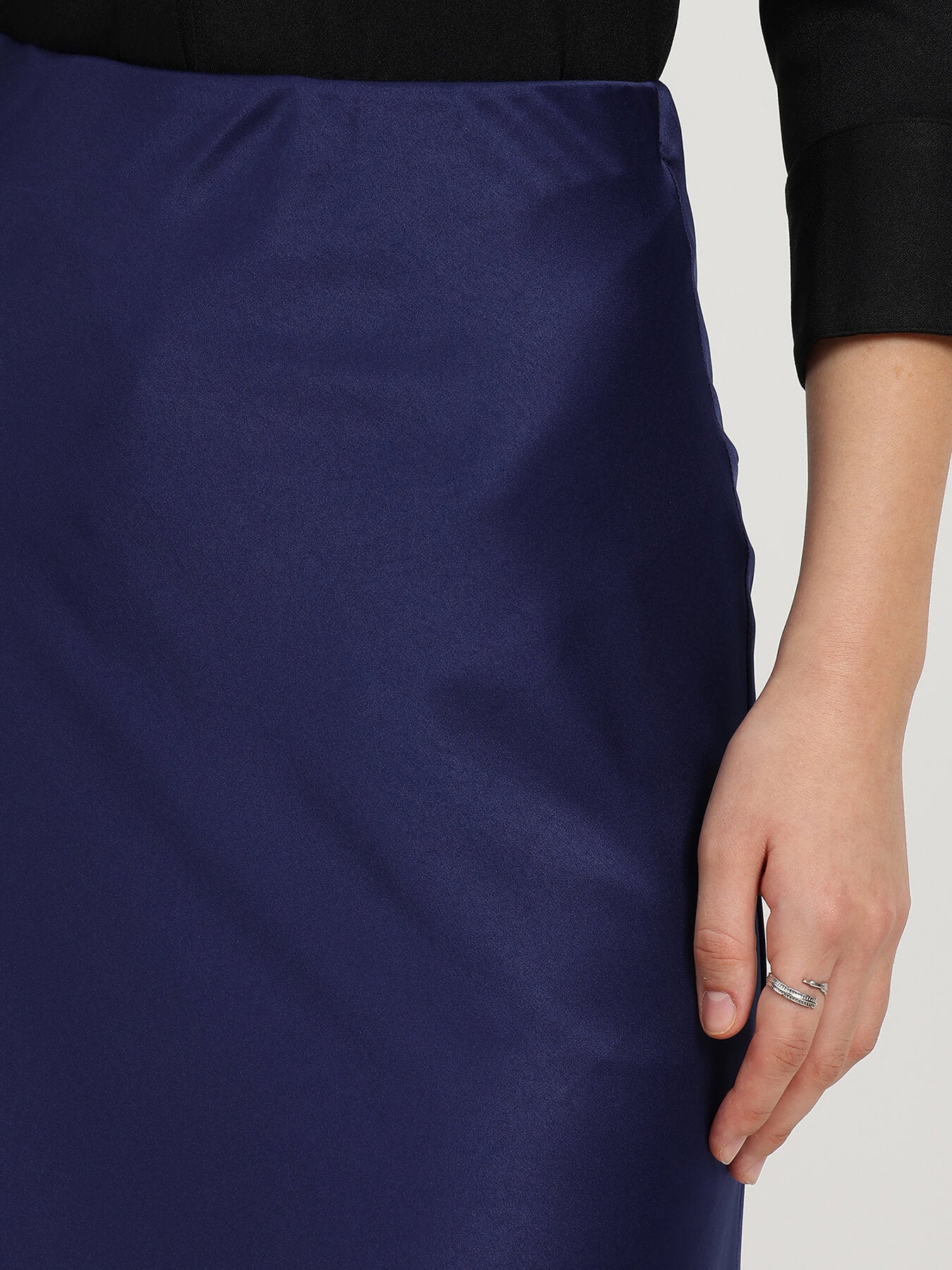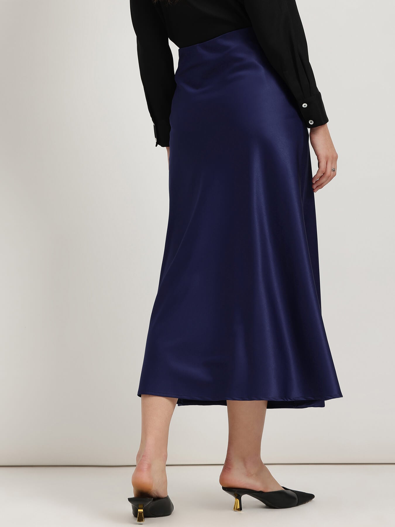 Satin A-Line Skirt - Navy Blue
